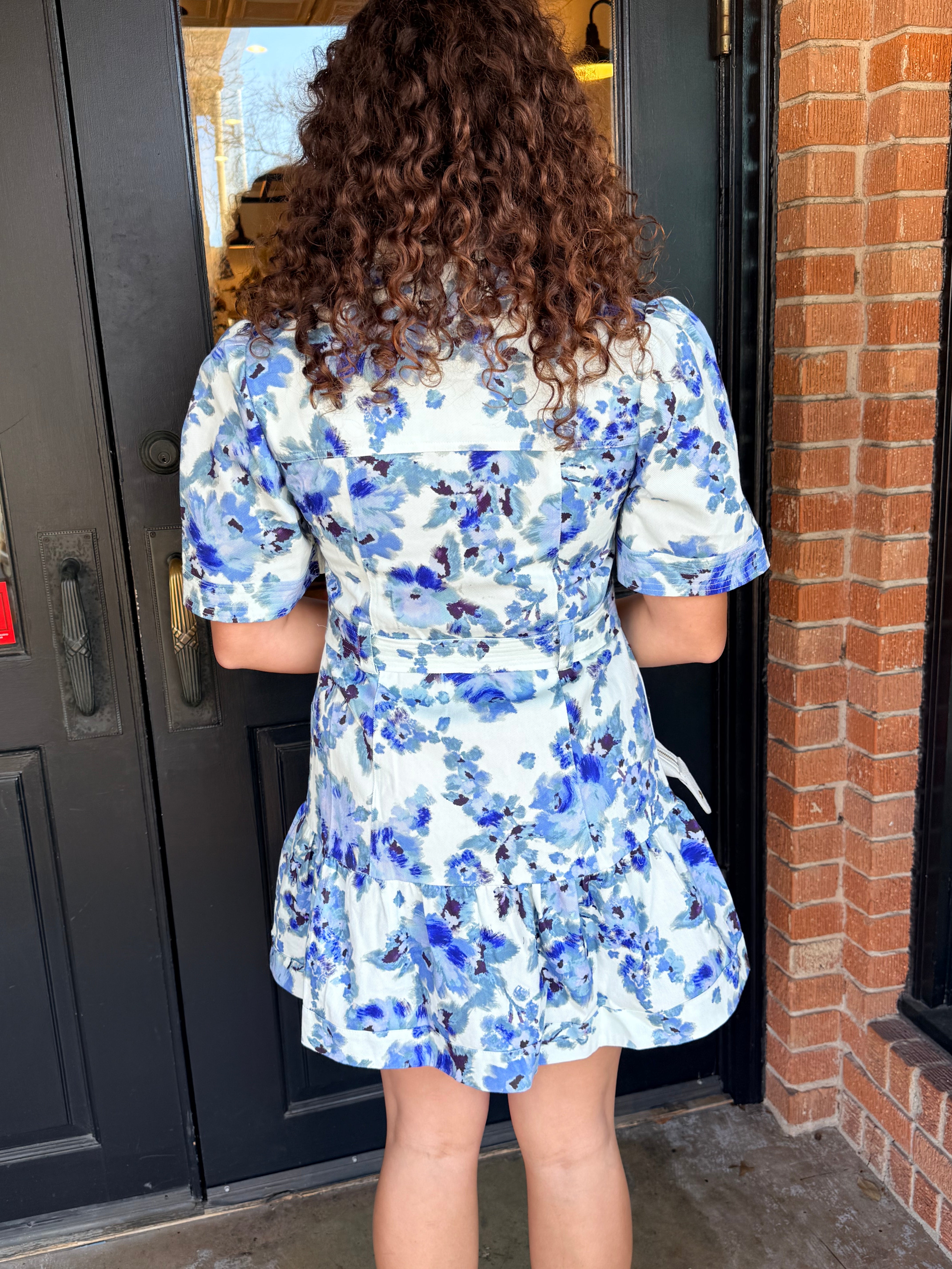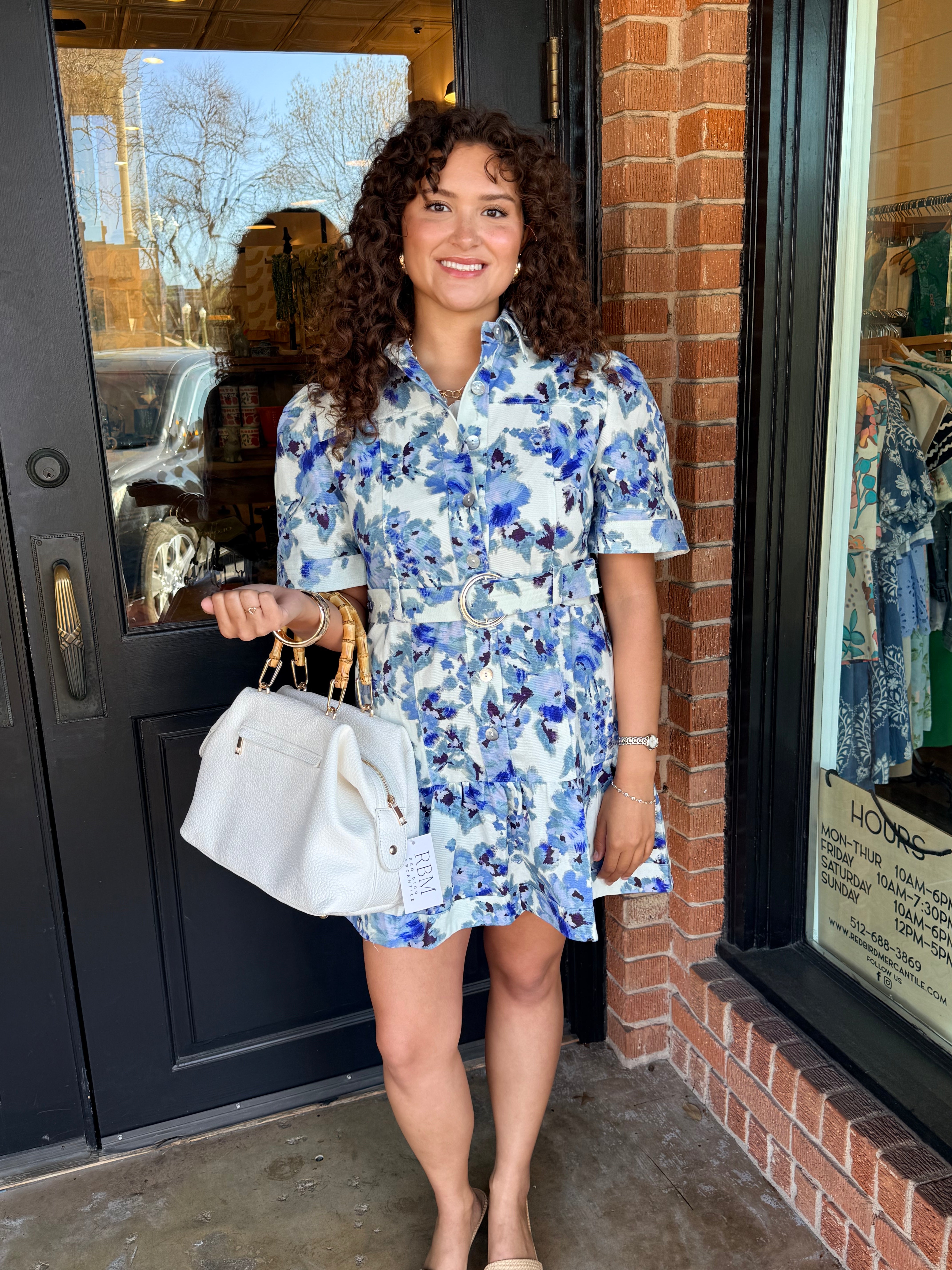 A classic shirt dress with feminine details that make it stand out. The Dakota Floral Shirt Dress features a timeless pointed collar, a full button-front design, and a flattering waist belt. Finished with a softly flared skirt and ruffled hem, it’s an easy dress to style for everyday wear or special plans.