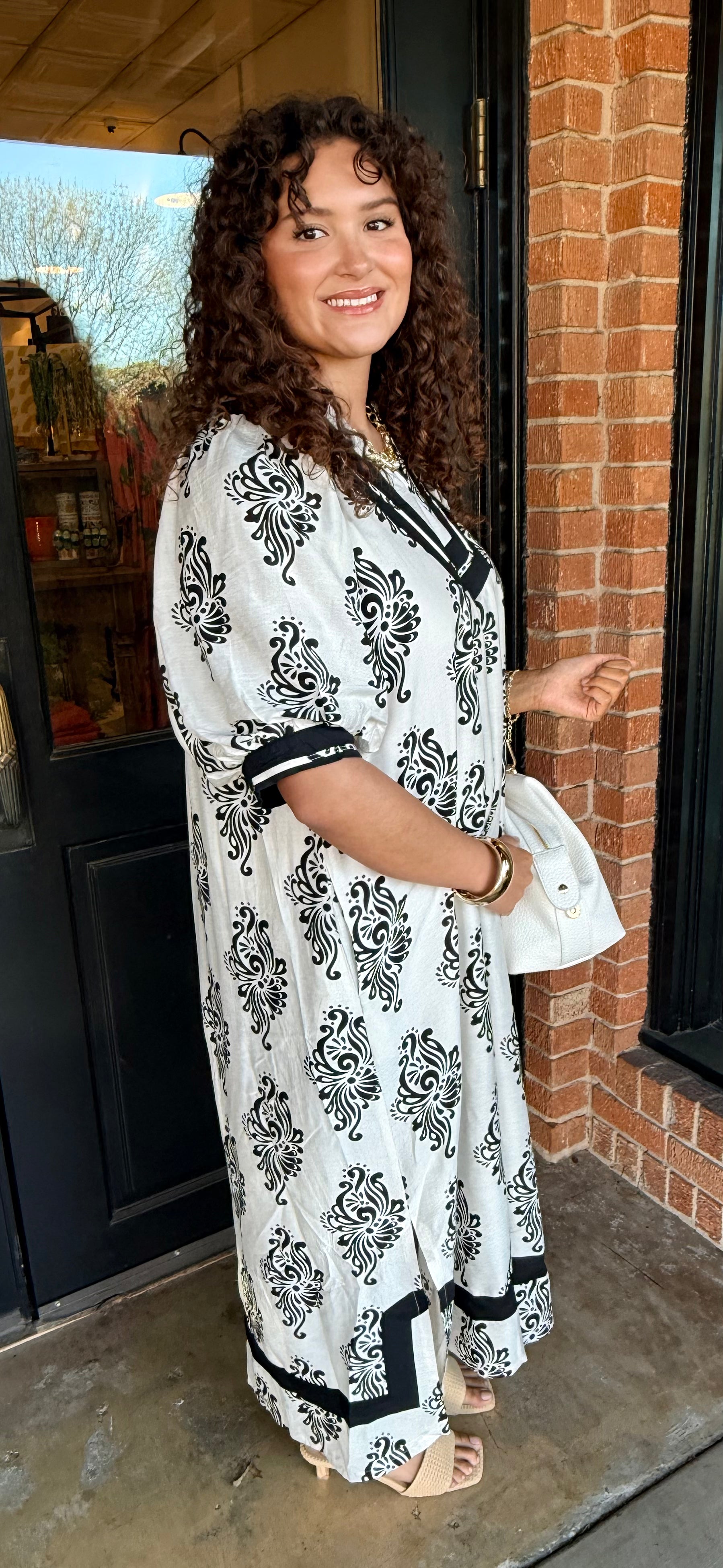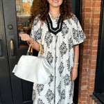 A standout dress with a modern, artistic feel. The Lori Abstract Midi Dress features a unique abstract print and an easy, flattering silhouette that makes it perfect for both everyday wear and special plans. Effortless and eye-catching, it’s a piece you’ll reach for all season.