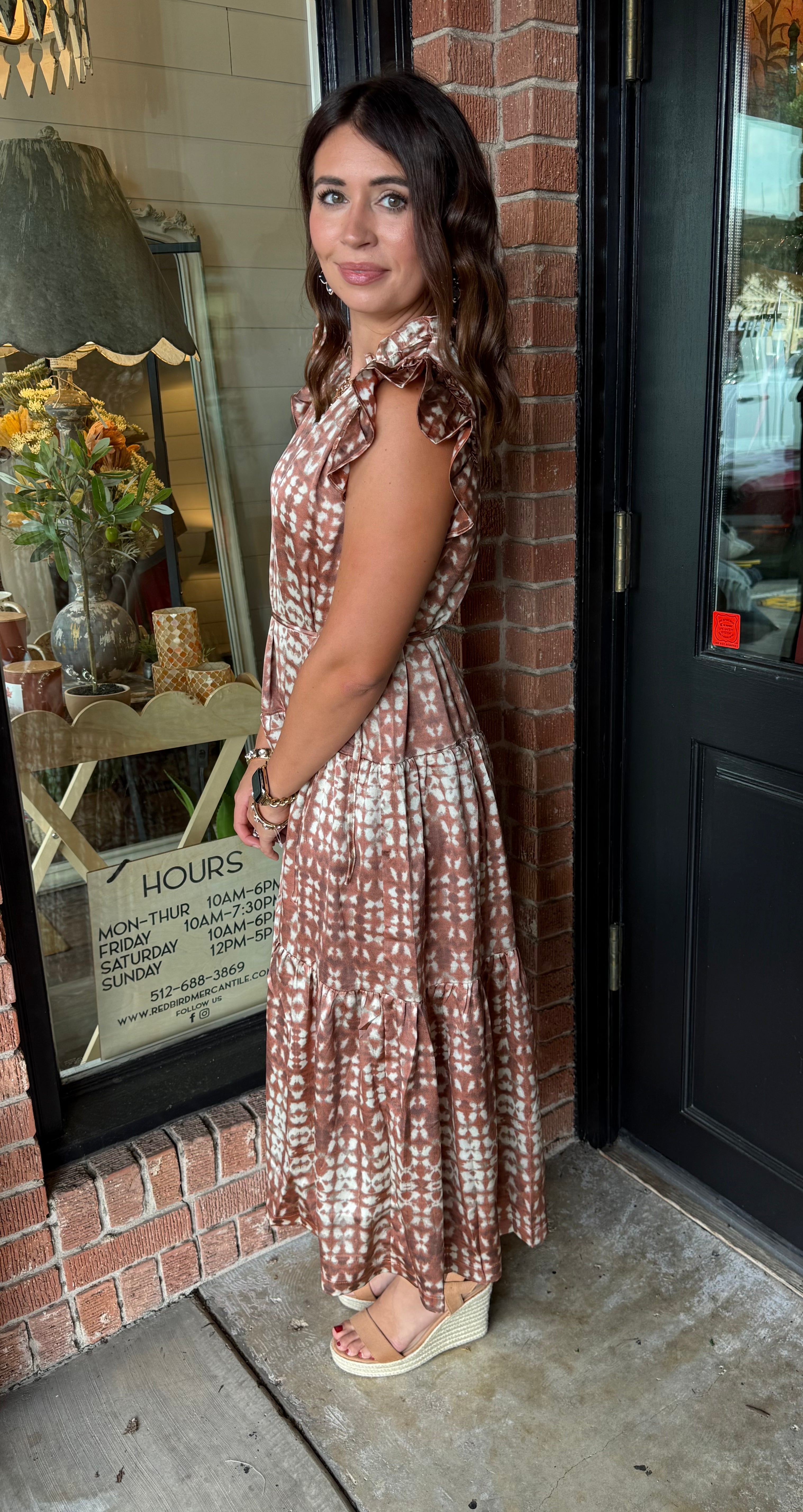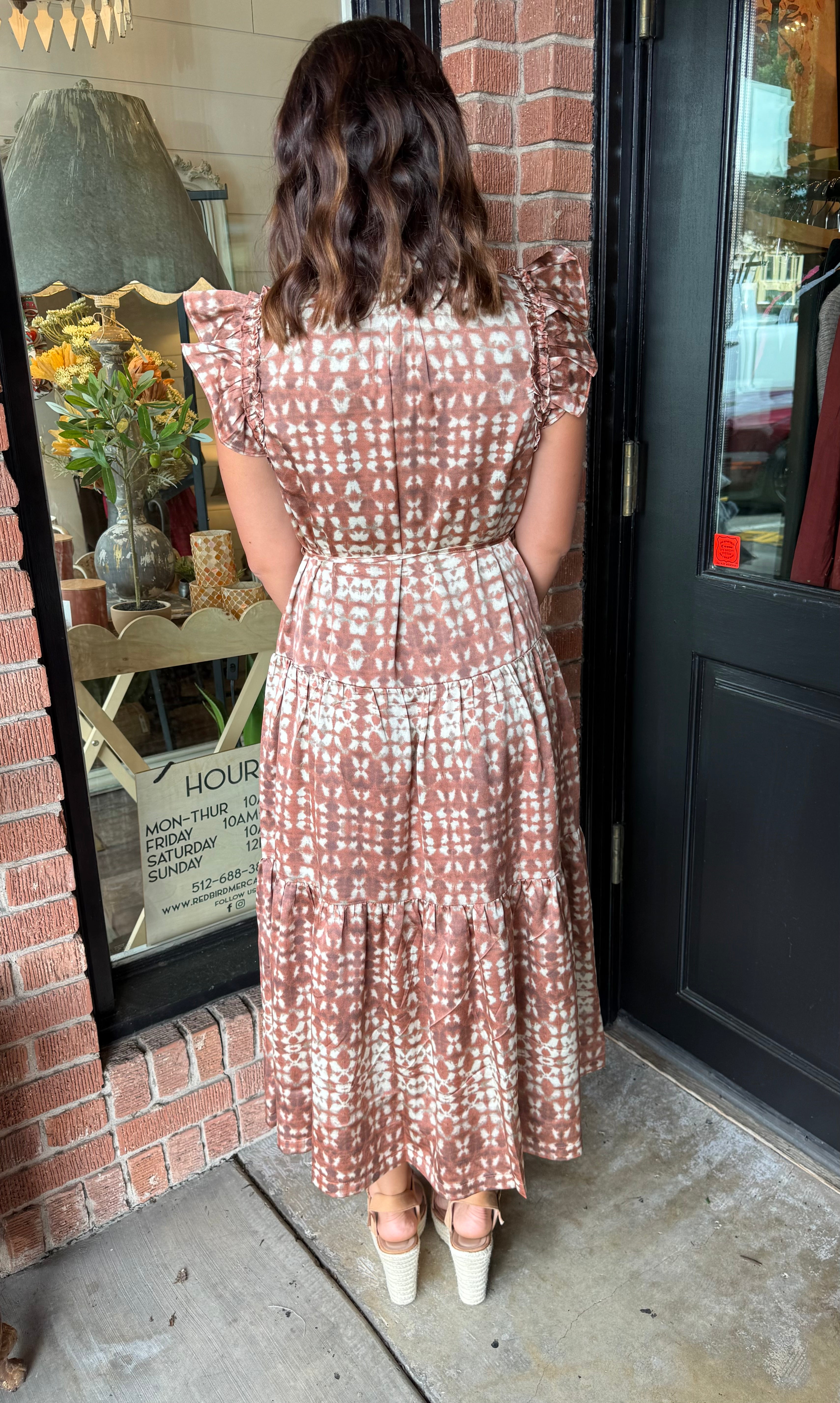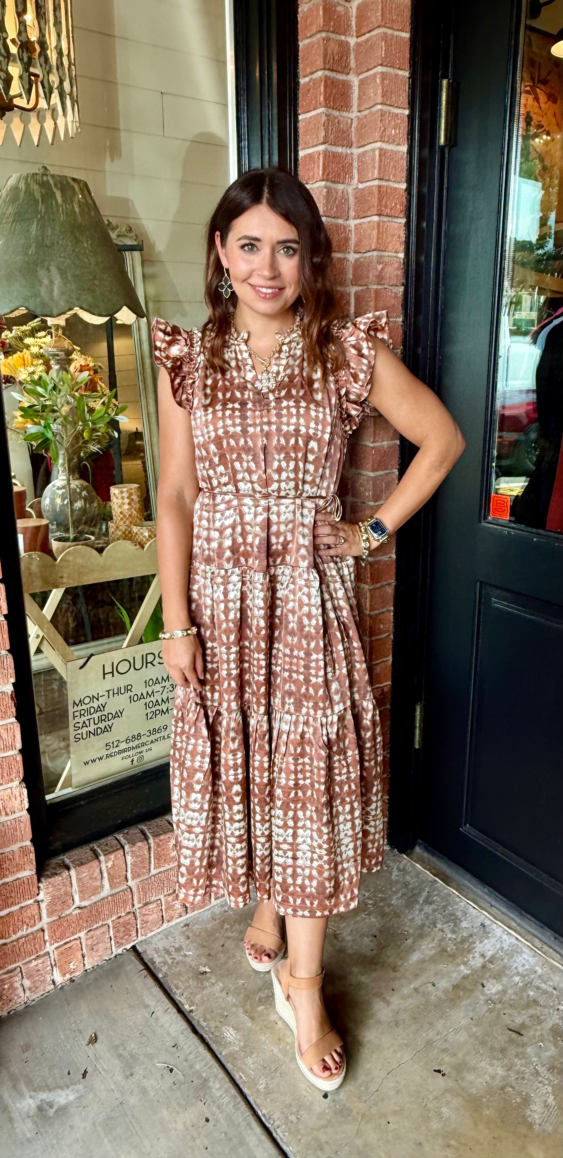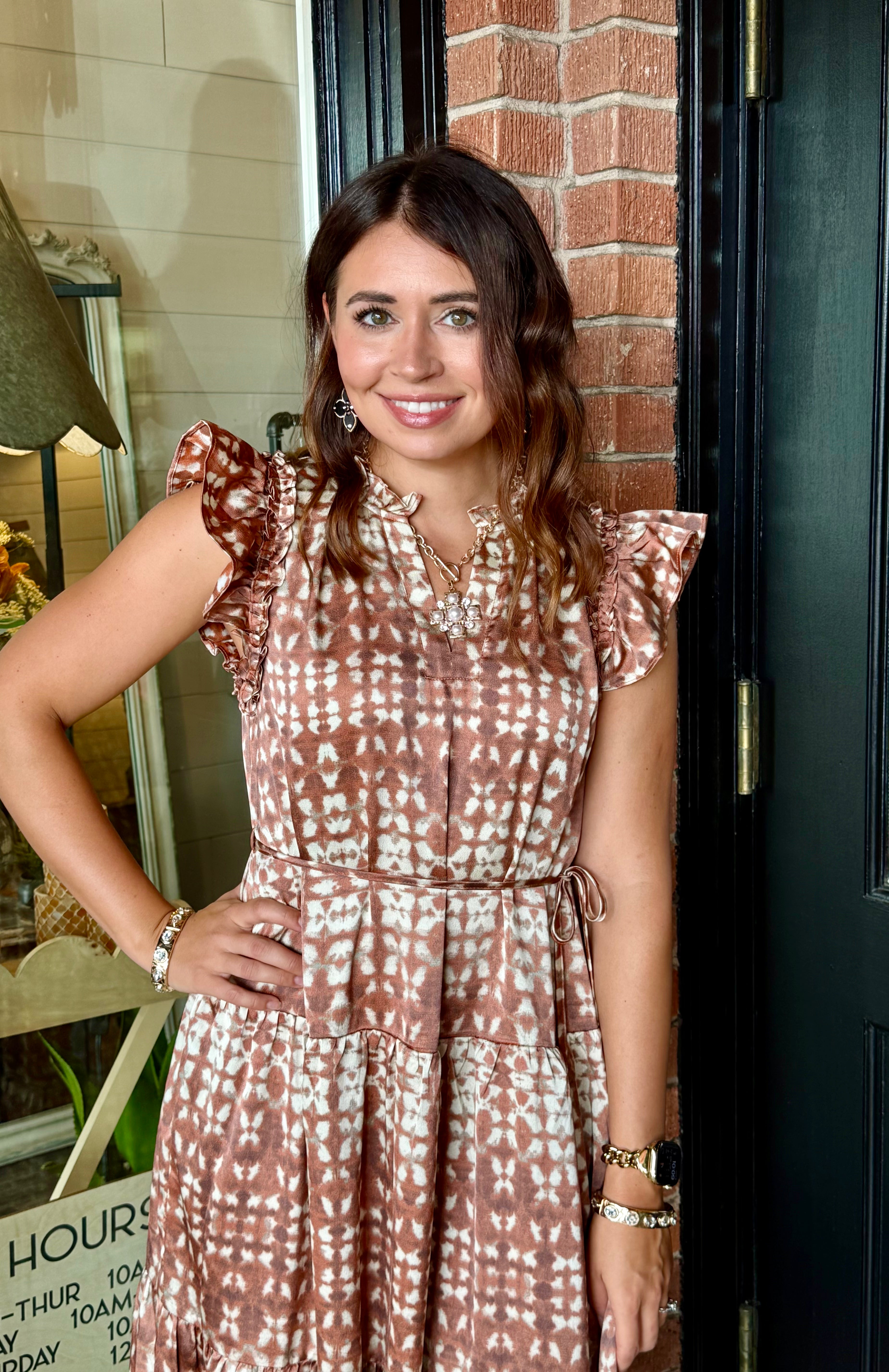 Graceful, feminine, and effortlessly chic, the Abigail Print Tiered Midi Dress is your go-to for special occasions or polished everyday looks. Featuring delicate ruffled details at the neckline and sleeves, this dress offers a soft romantic feel, balanced with a flattering self-tie waist that defines your shape.
