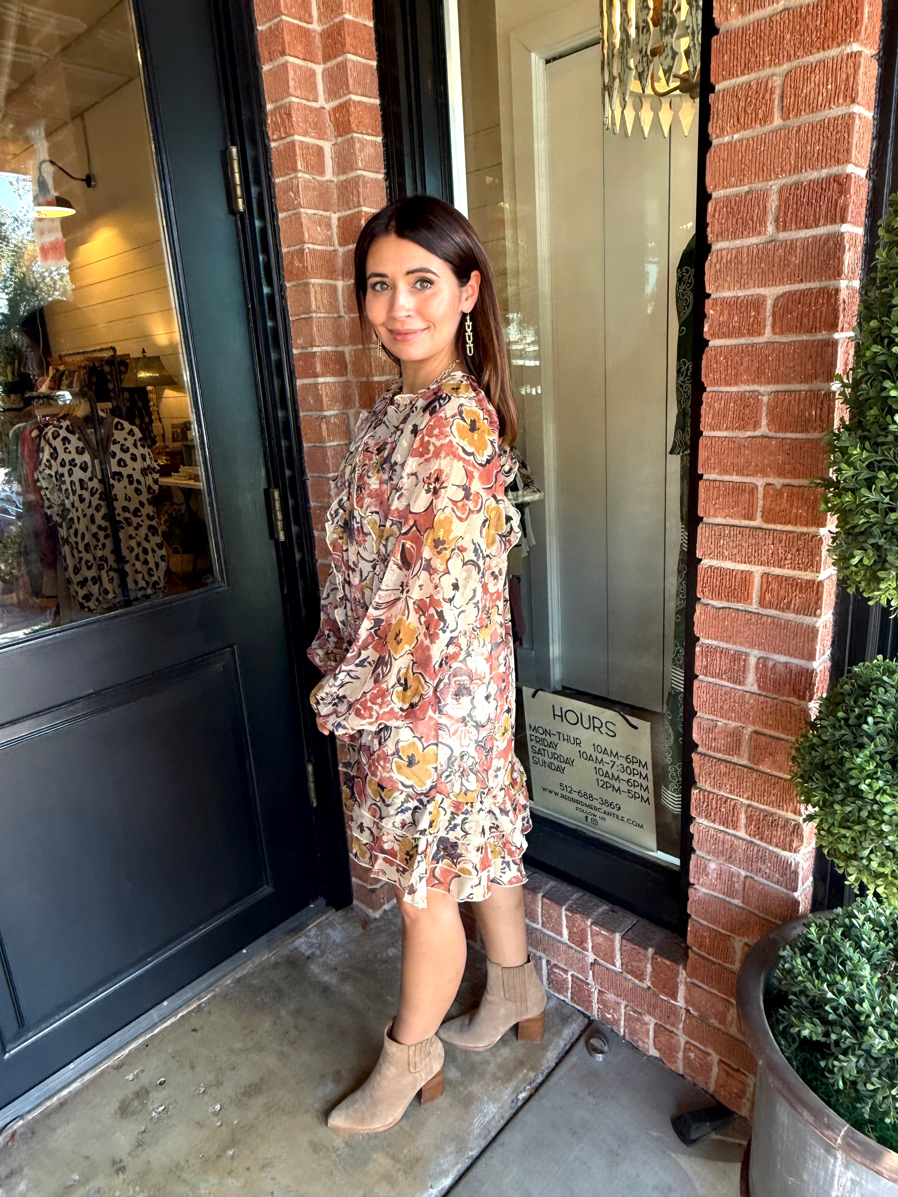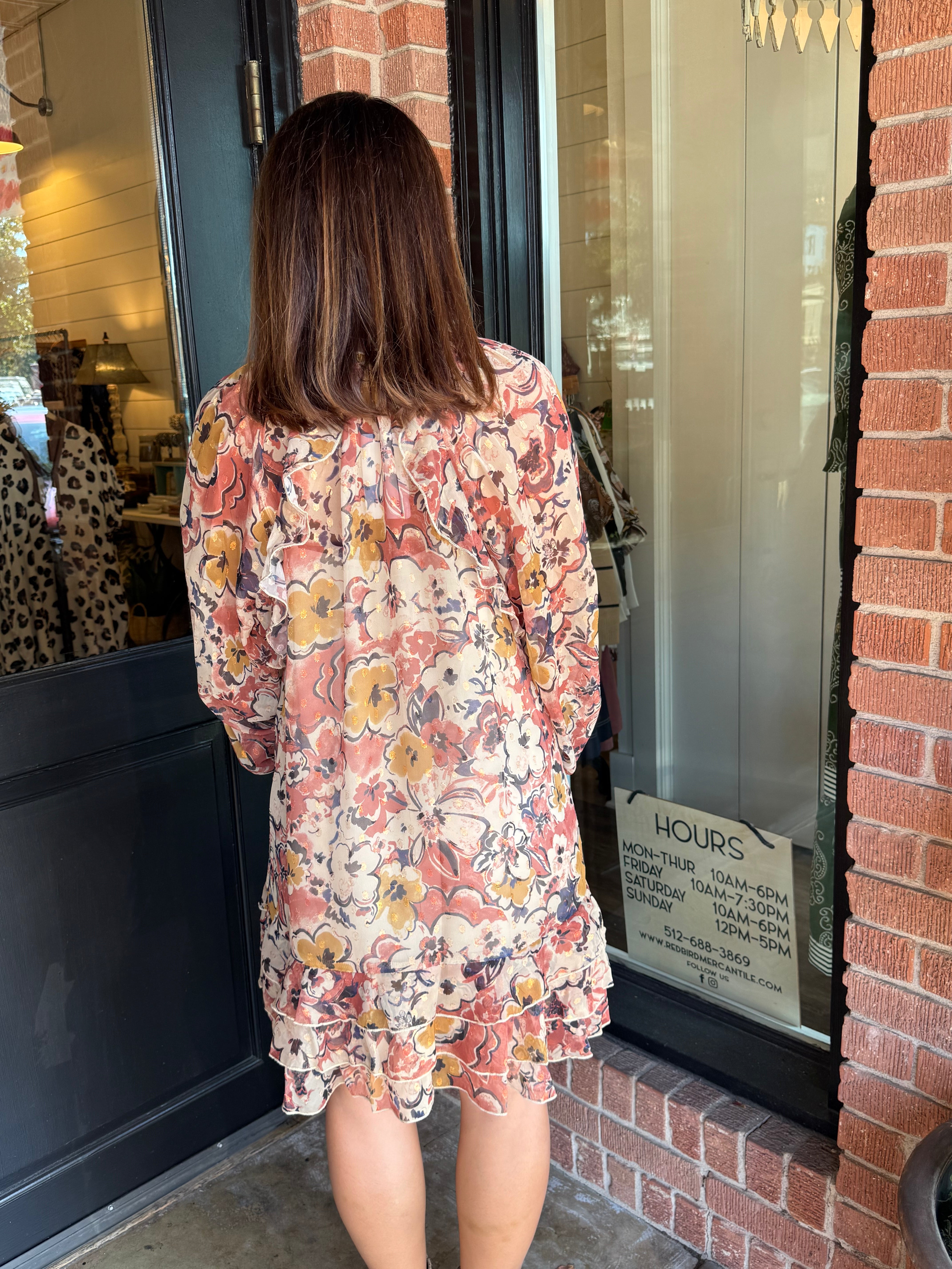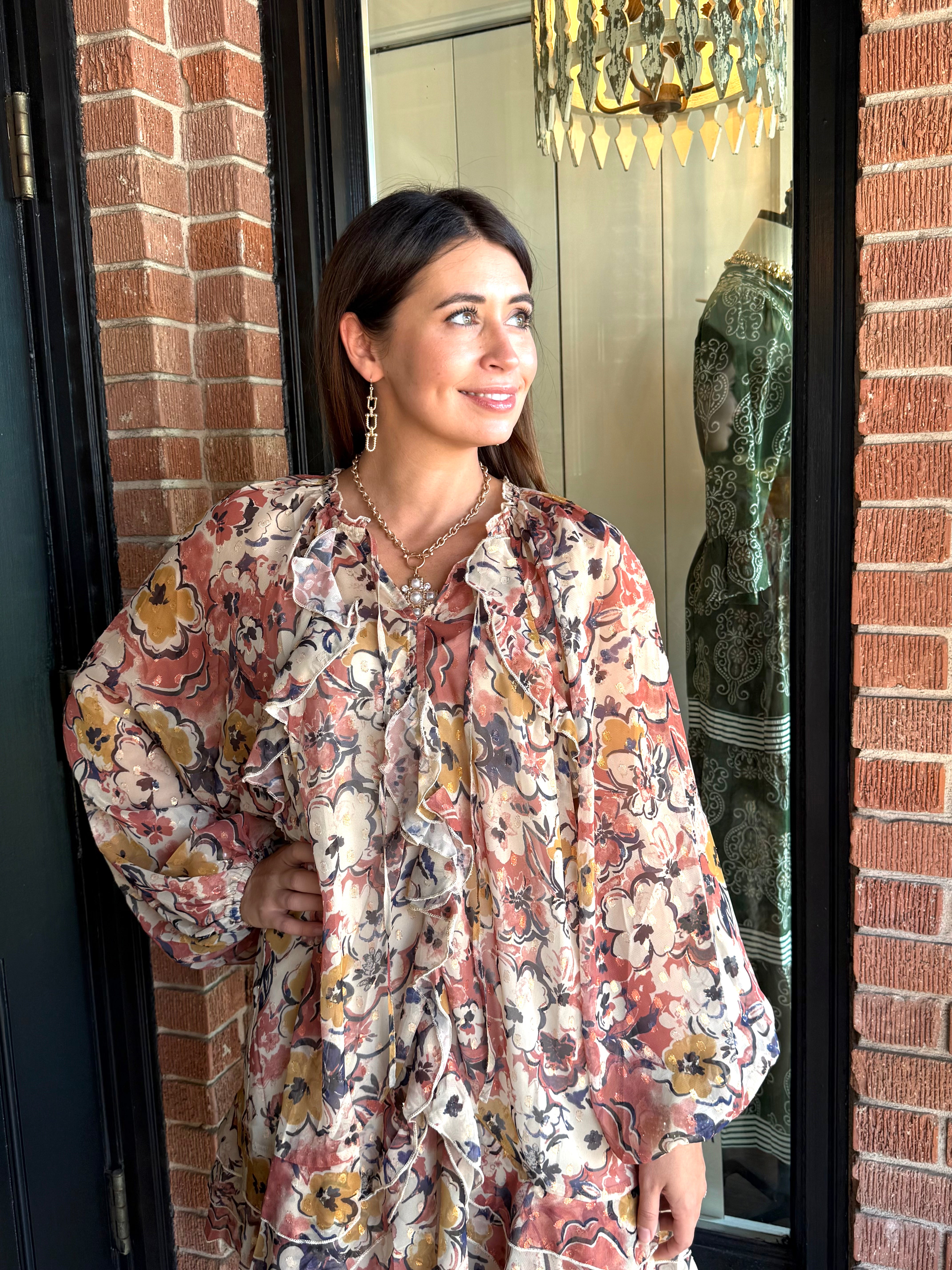 The Alice Dress is romantic and dreamy with just the right touch of sparkle. Crafted in lightweight chiffon with a floral print and subtle lurex threading, it features cascading ruffle details and a tiered silhouette for beautiful movement. Perfect for weddings, parties, or special occasions, this dress combines elegance and ease in one stunning piece.