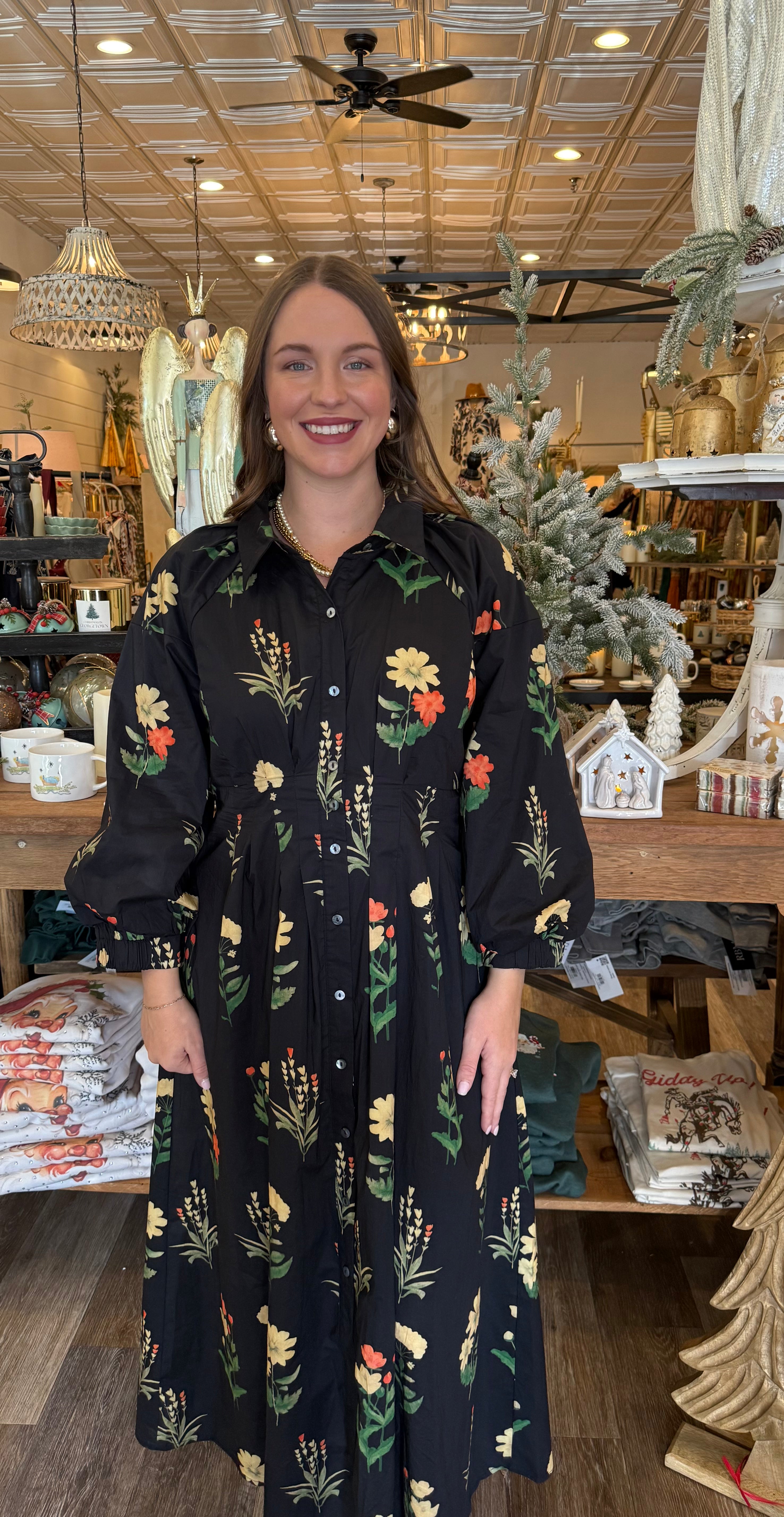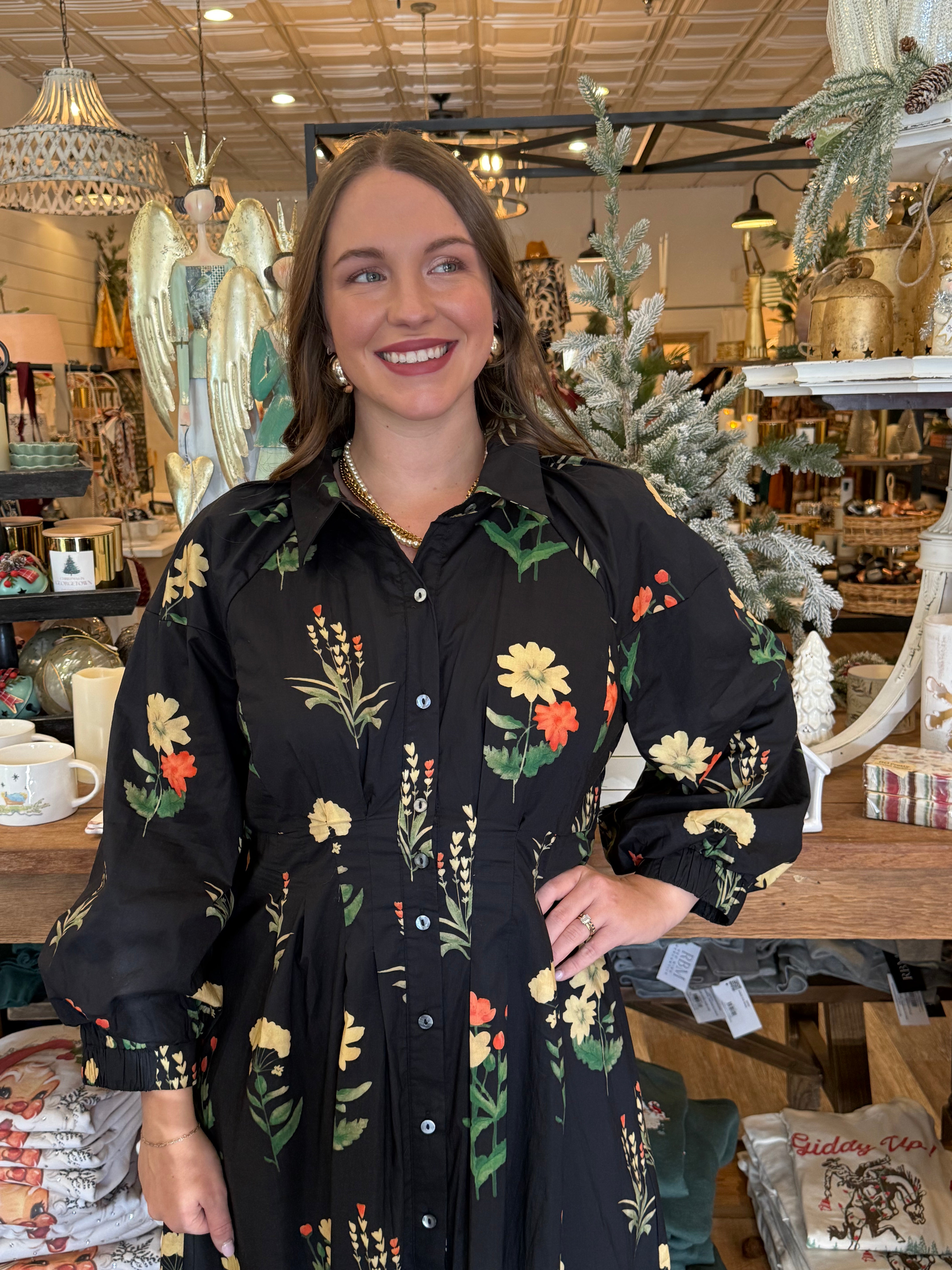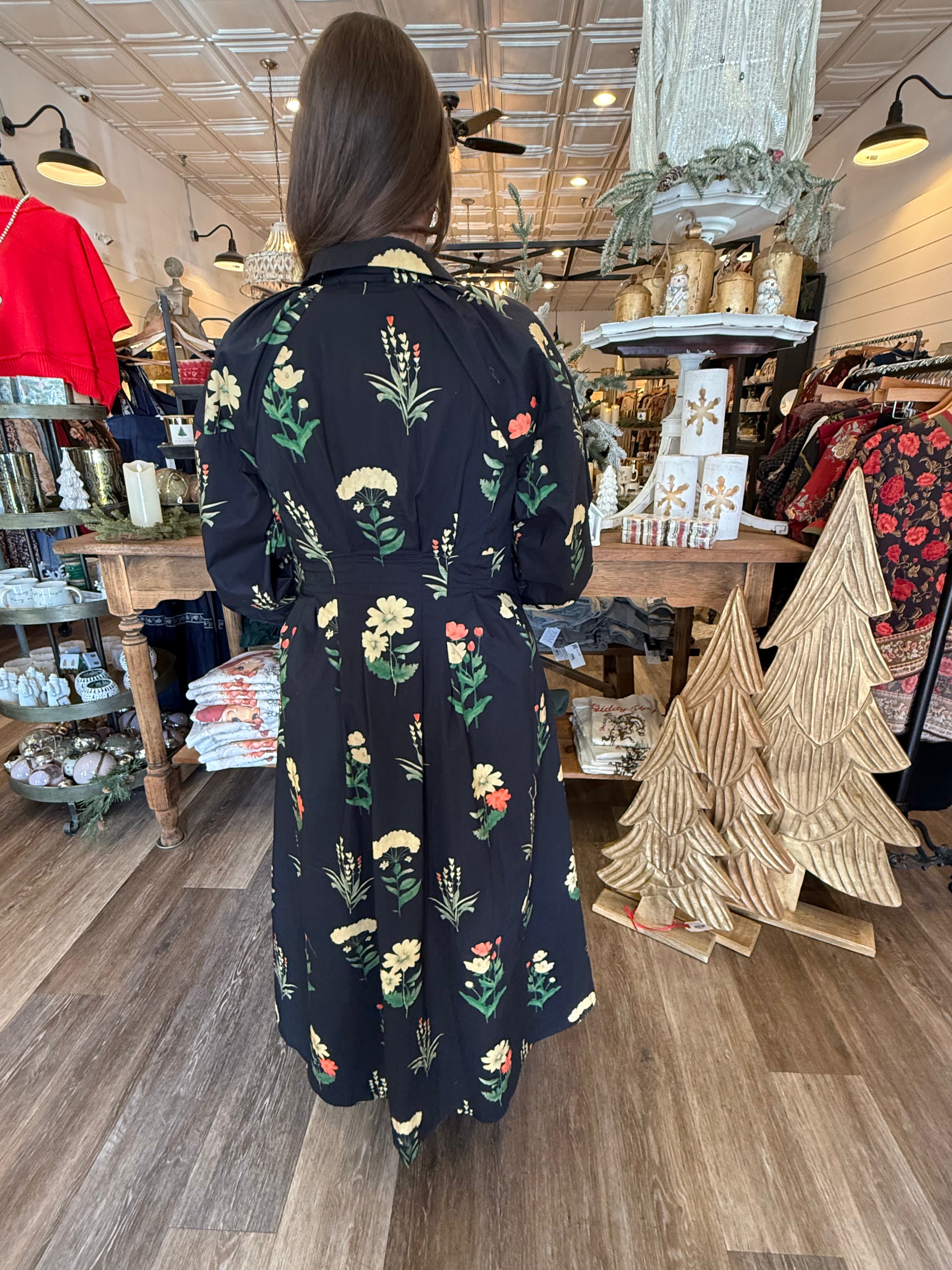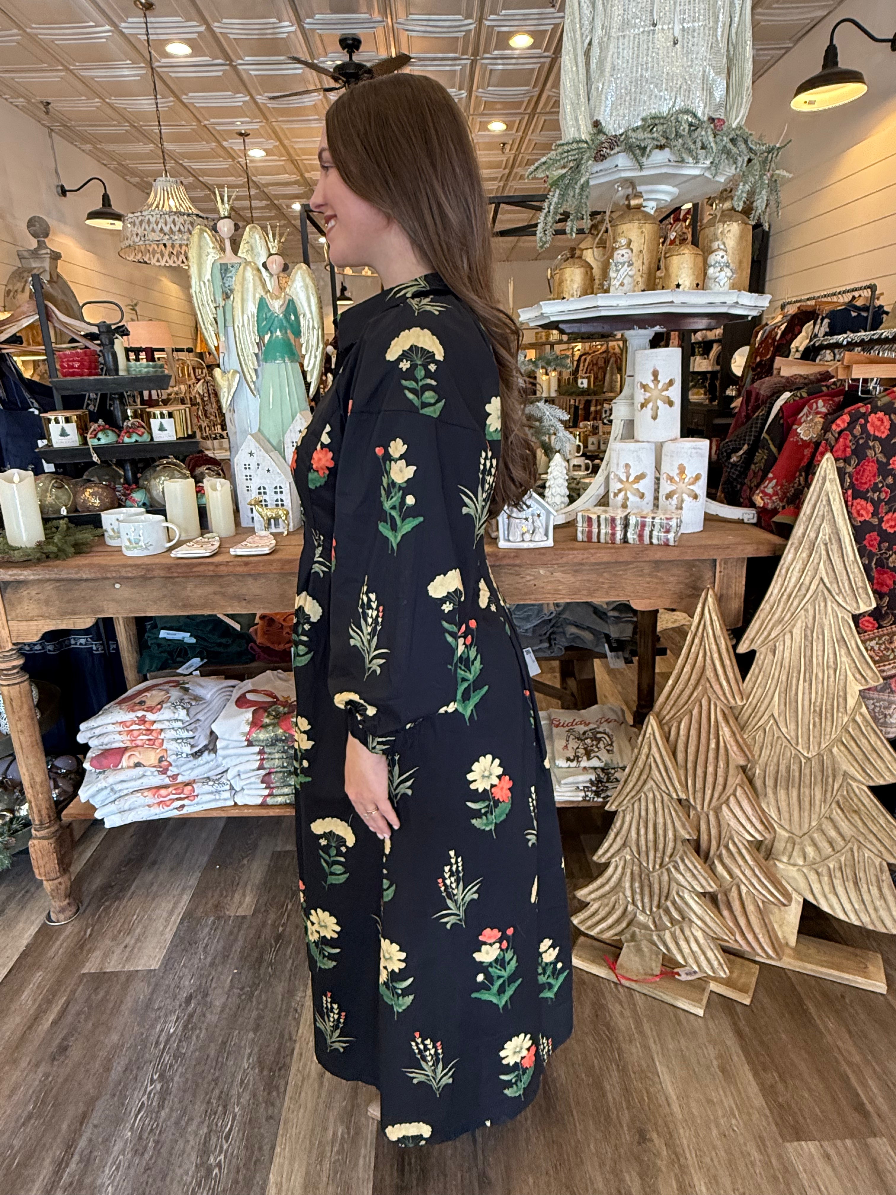 Timeless, romantic, and effortlessly elegant — the Aliya Floral Print Midi Dress is the definition of boutique beauty. Featuring a delicate floral print, pleated waist, and button-front closure, this dress flatters every figure with ease. The long sleeves, side pockets, and lightweight woven fabric make it as practical as it is pretty — perfect for any season or special occasion.