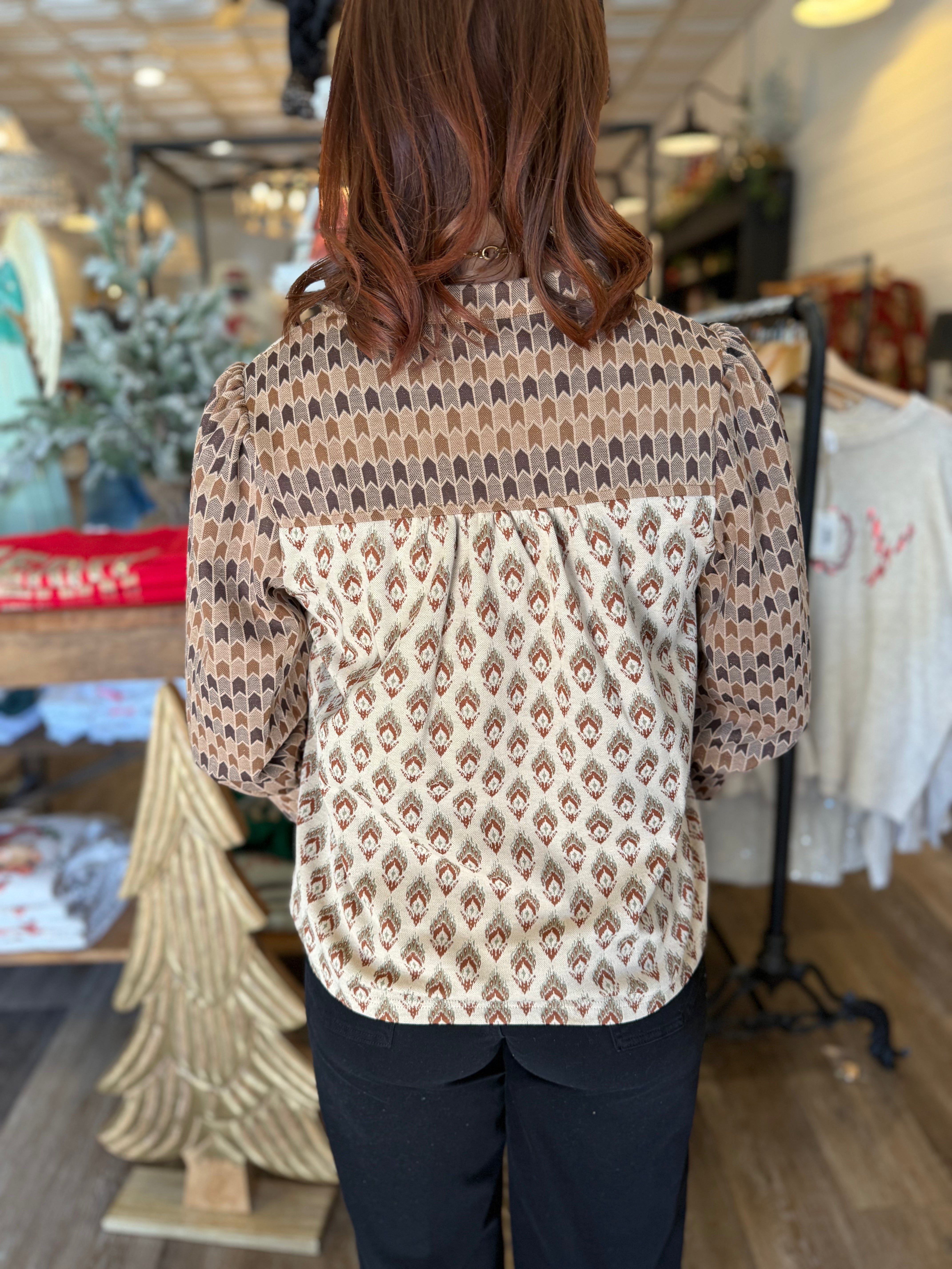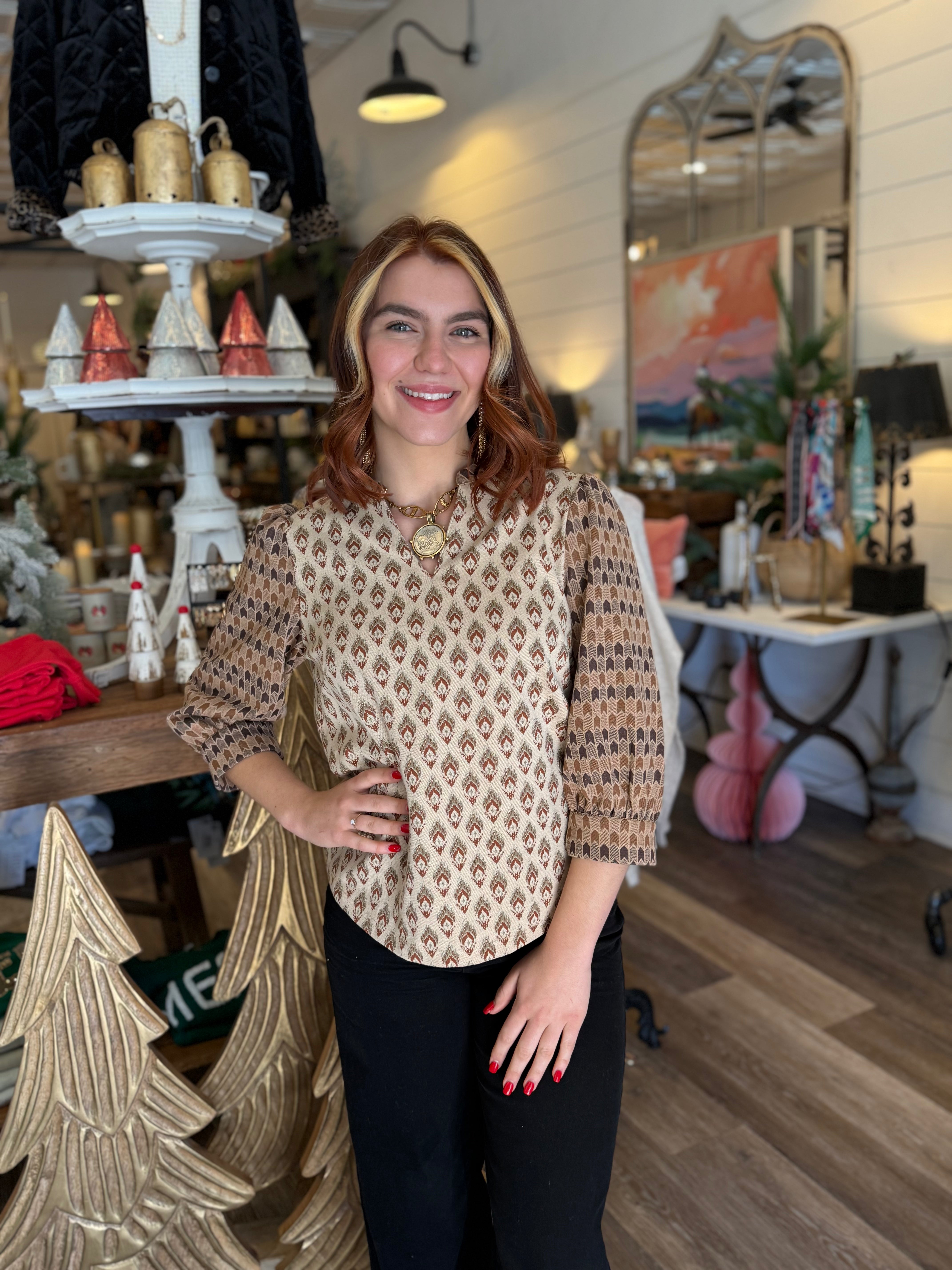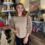 Fresh, modern, and effortlessly stylish — the Allana Contrast Sleeve V-Neck Top brings the perfect mix of comfort and detail. This top features a flattering V-neckline with a contrast band, giving it a clean, elevated finish. The half-length sleeves showcase a beautiful contrast print, complete with banded cuffs for a soft, polished shape. A contrast back yoke adds even more interest, making this piece stand out from every angle.