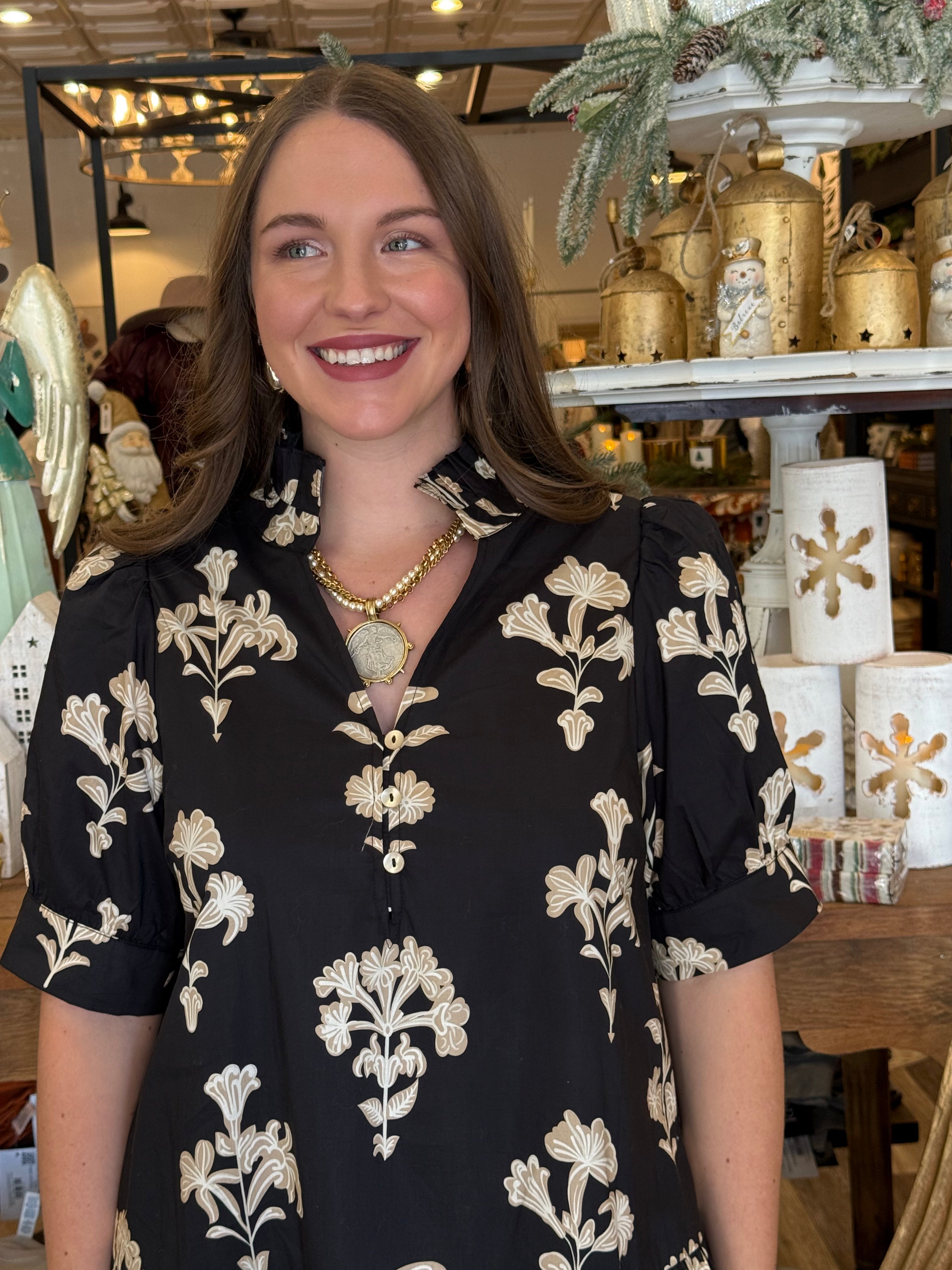 Soft, flowy, and feminine — the Allira Floral Dress captures effortless charm in every detail. Its tiered silhouette and delicate button accents make it the perfect day-to-night piece for any season.
