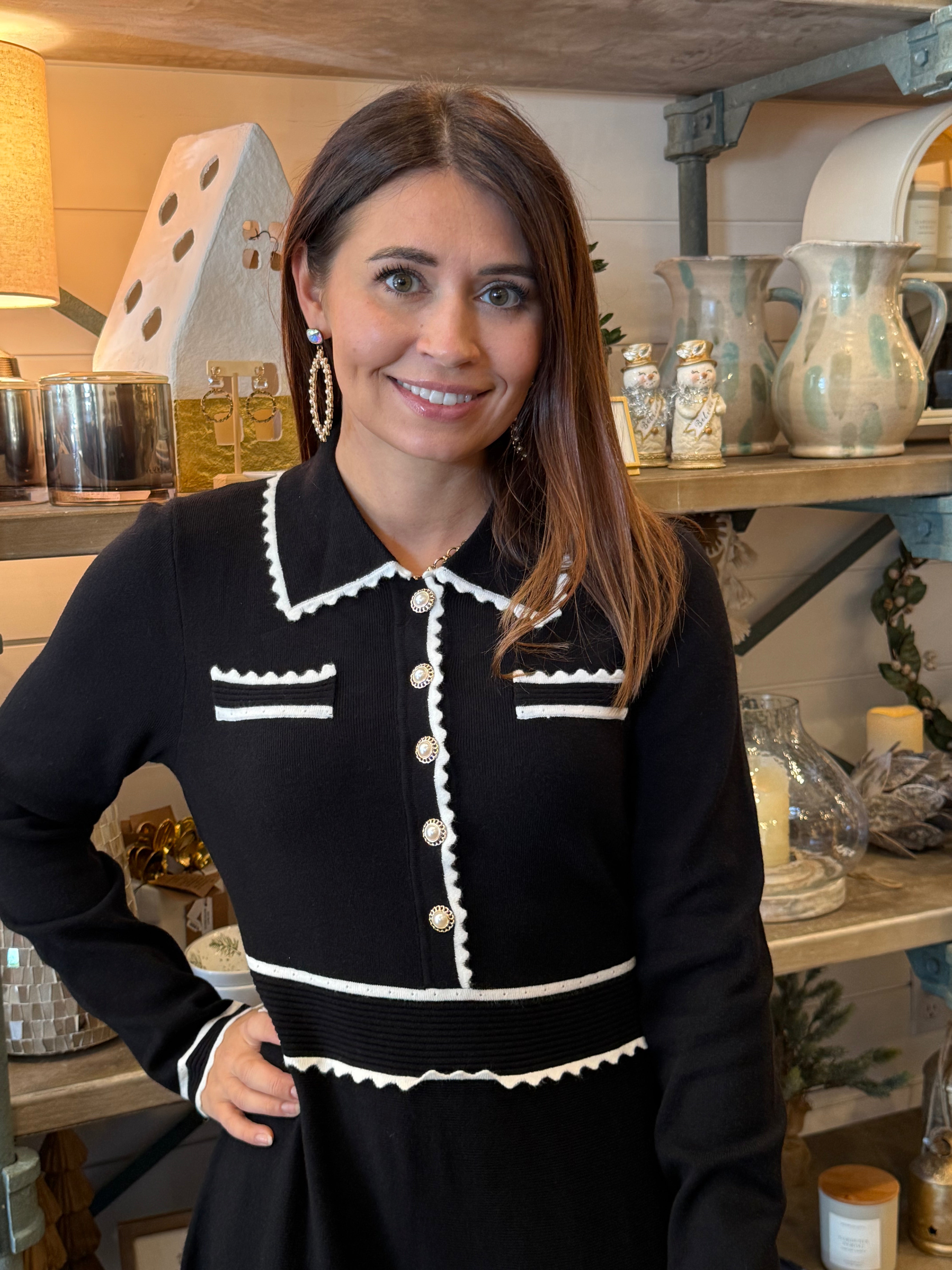 Elegant and classic with a modern twist — the Alyssa Knit Dress is the definition of refined style. Featuring pearl and gold button accents, a soft knit texture, and a flattering silhouette, it’s perfect for the office, dinner, or a day on the square.