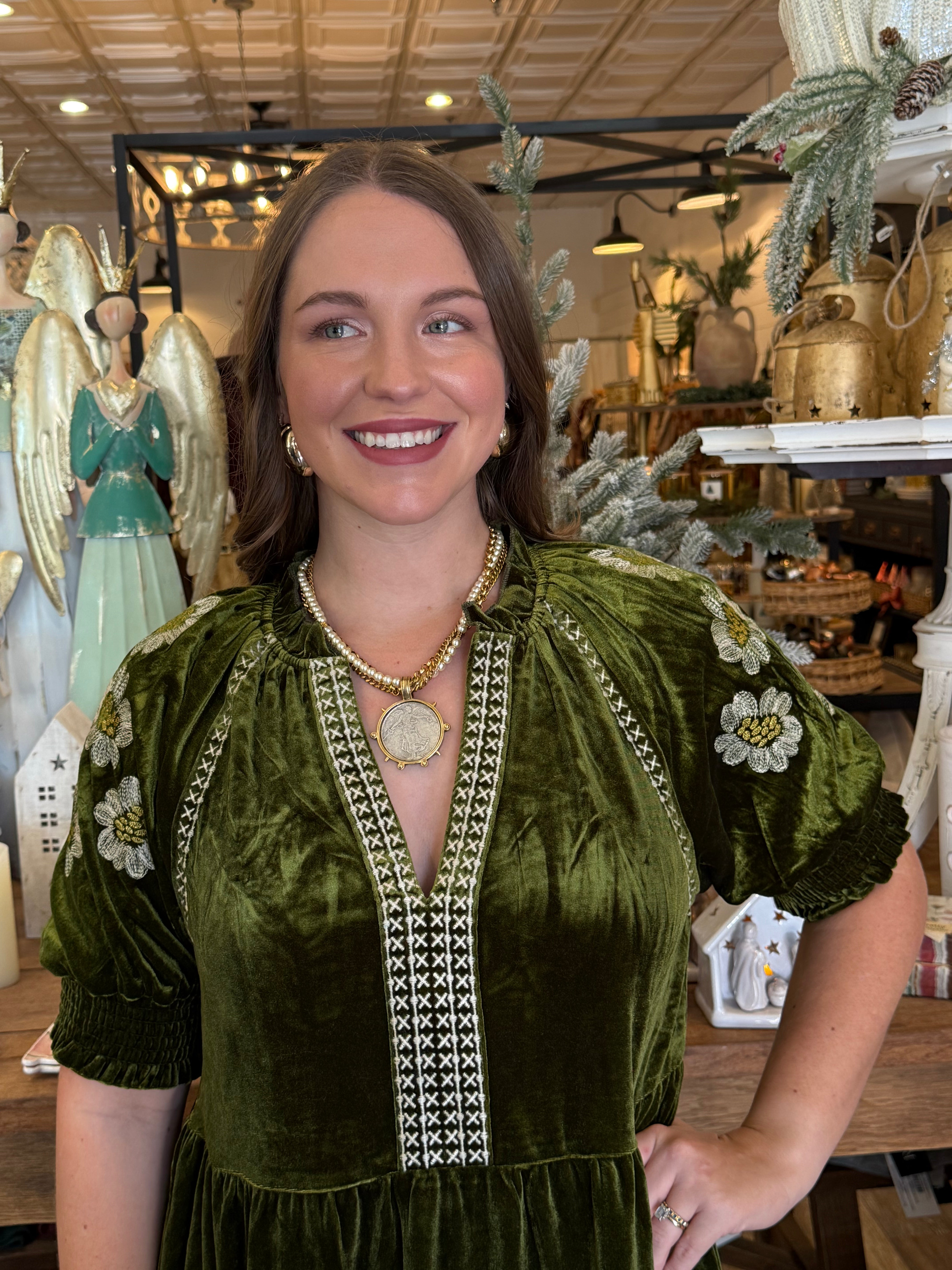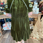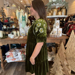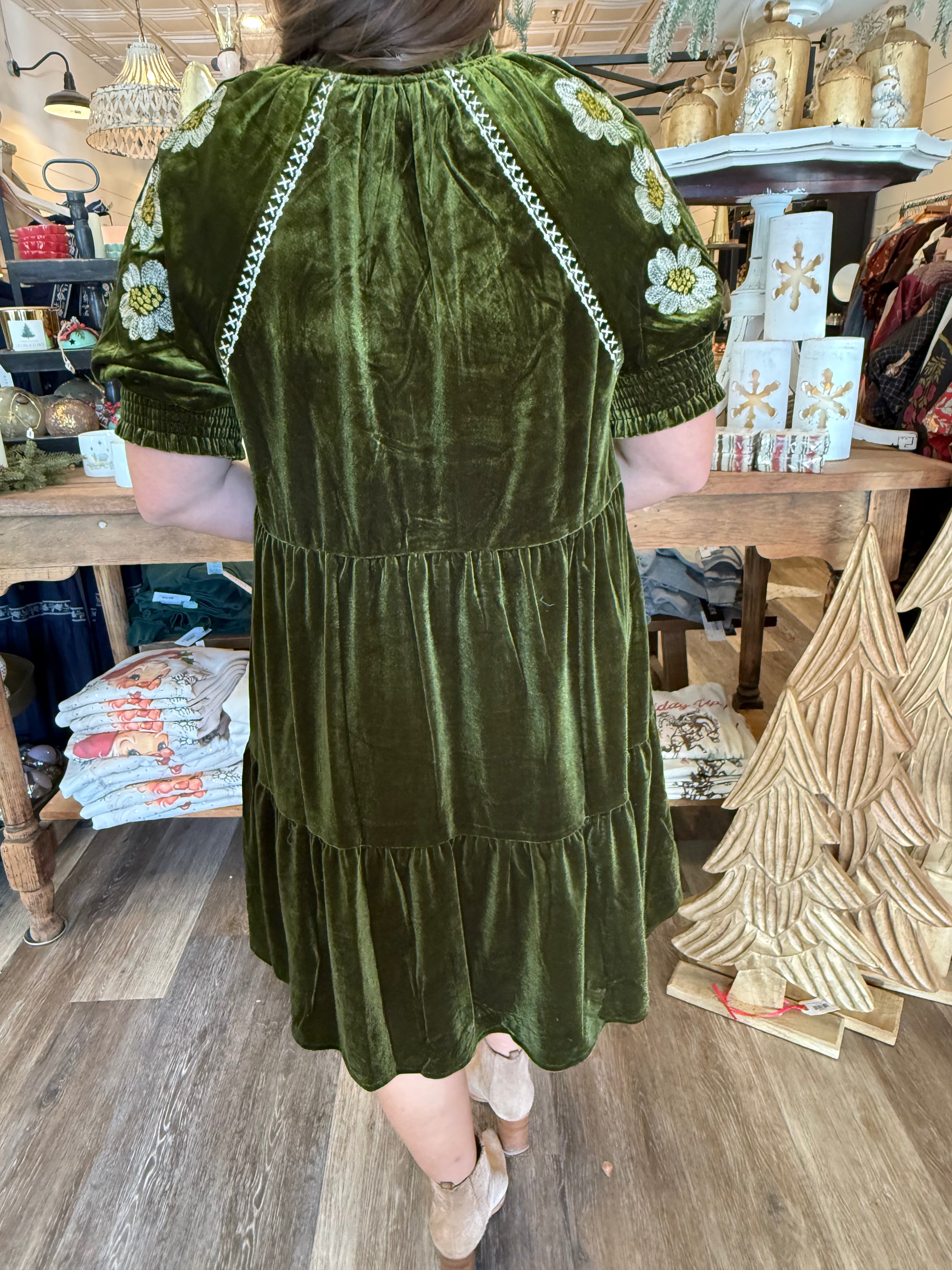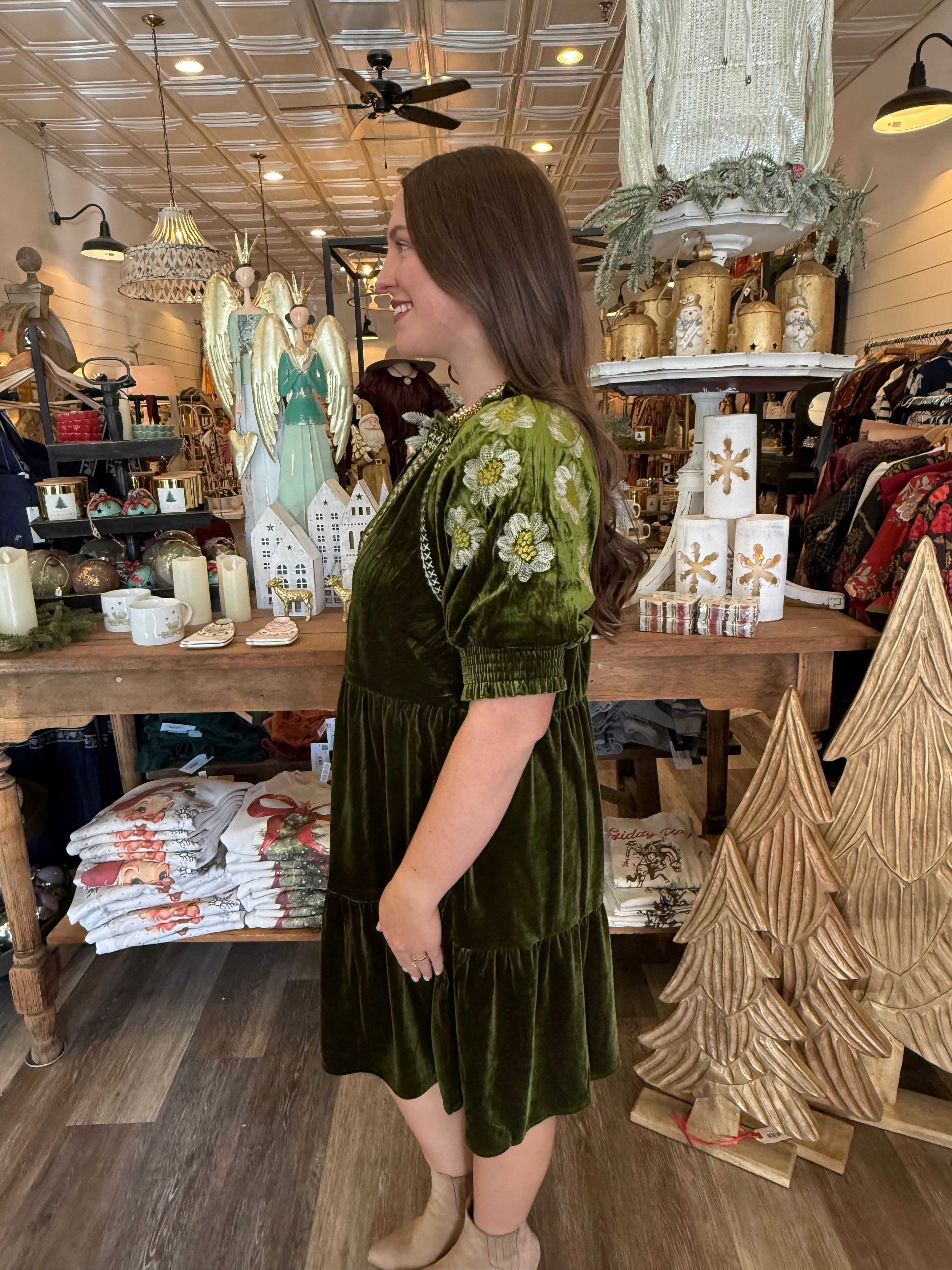 Crafted from soft velvet and finished with beautifully embroidered sleeves, this dress combines classic elegance with boutique detail. Perfect for holiday gatherings, winter weddings, or special evenings out, it’s a piece that feels as good as it looks.