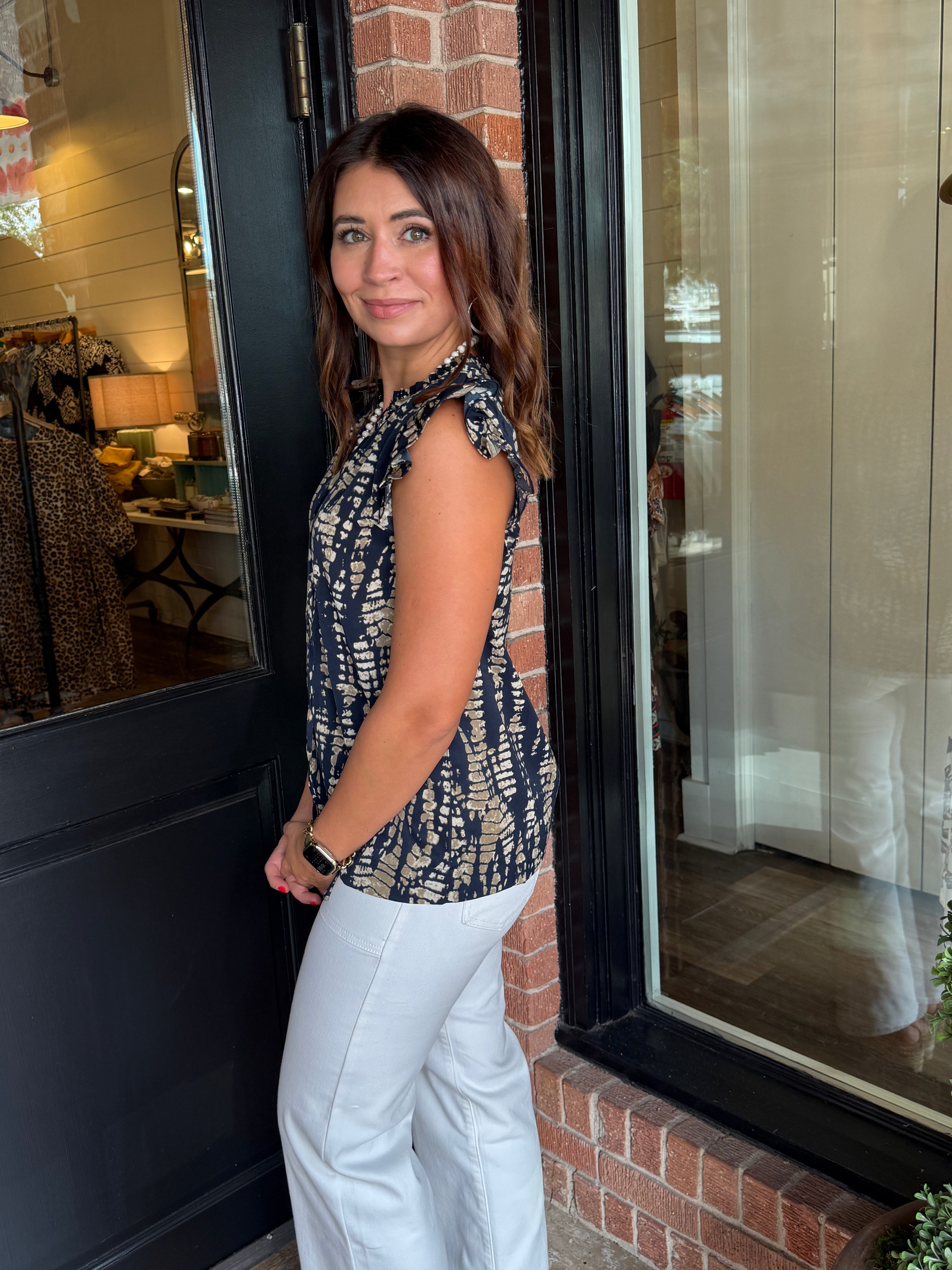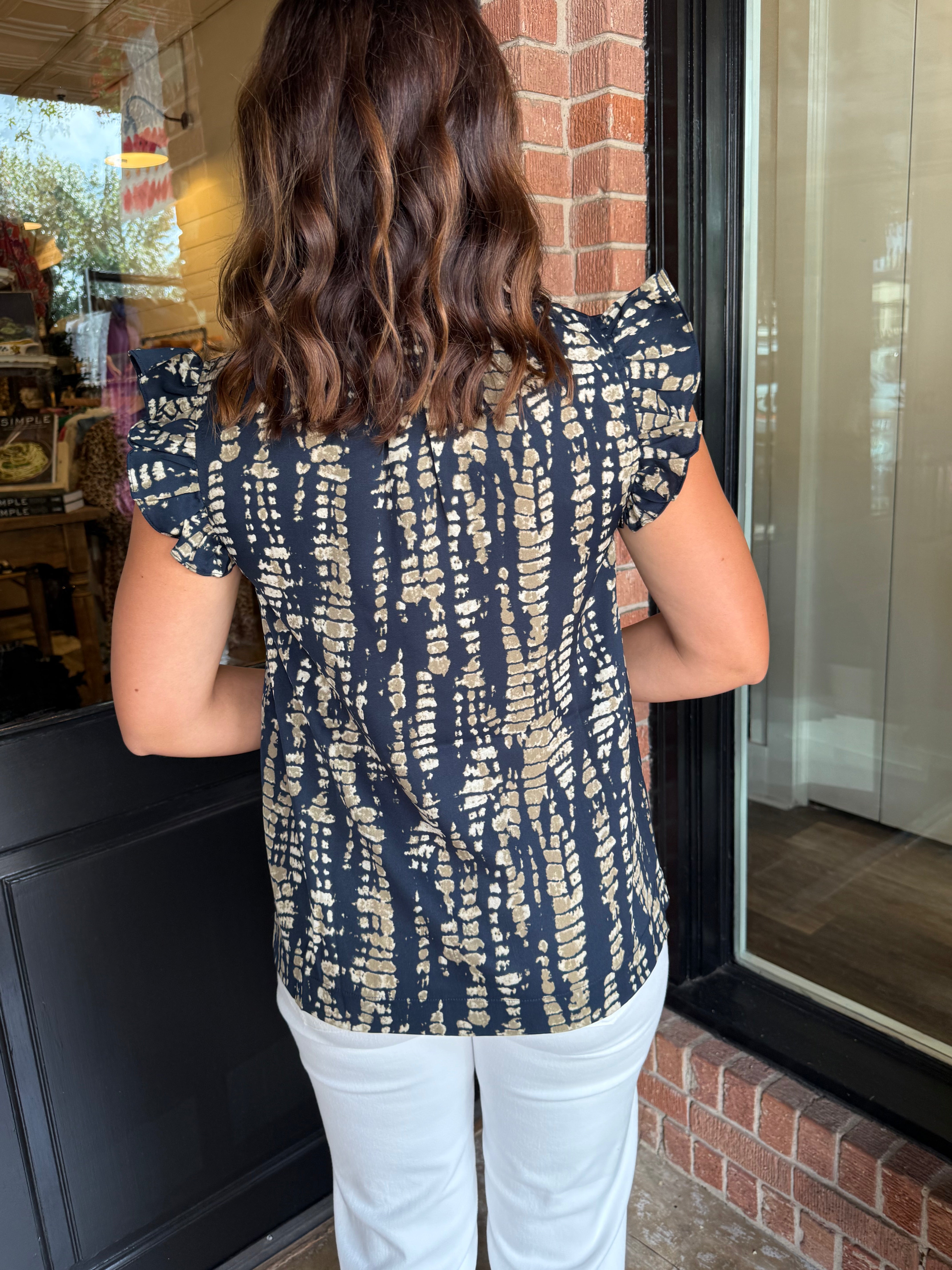 Soft, stylish, and effortlessly feminine—the Anna Print Ruffled Sleeve Blouse Top is the perfect piece to elevate your everyday wardrobe. Featuring charming ruffled sleeves and a flattering relaxed fit, this blouse pairs beautifully with everything from tailored pants to denim.