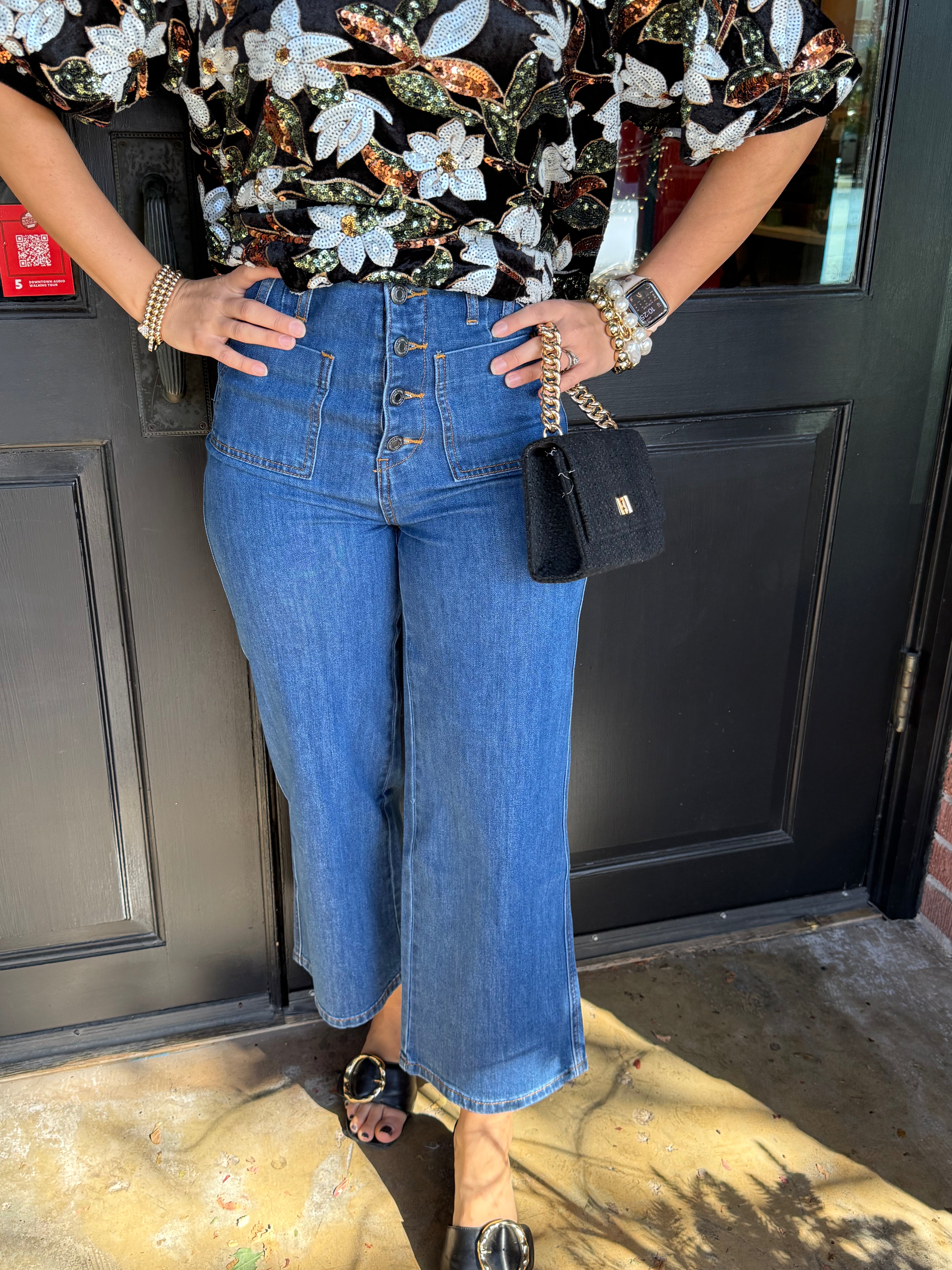 Modern, flattering, and oh-so-stylish — the Annie High Rise Wide Leg Denim is your new favorite pair of jeans. 💙 Made with soft stretch denim, this button-up style hugs you in all the right places while keeping its shape all day. The cropped wide leg gives it a trend-forward look that’s perfect for pairing with sweaters, blouses, or tucked-in tees.