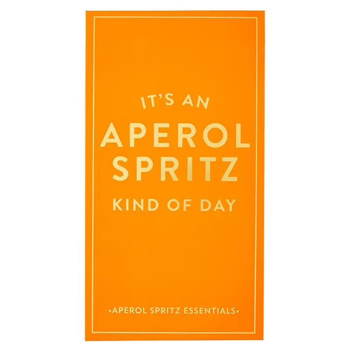 Everything you need for the perfect cocktail available in one book box! •Comes with spoon, citrus peeler and jigger •Inside lid of box features Aperol spritz recipe •Unique magnetic book box packaging featuring gold foil printing makes it perfect for gifting!