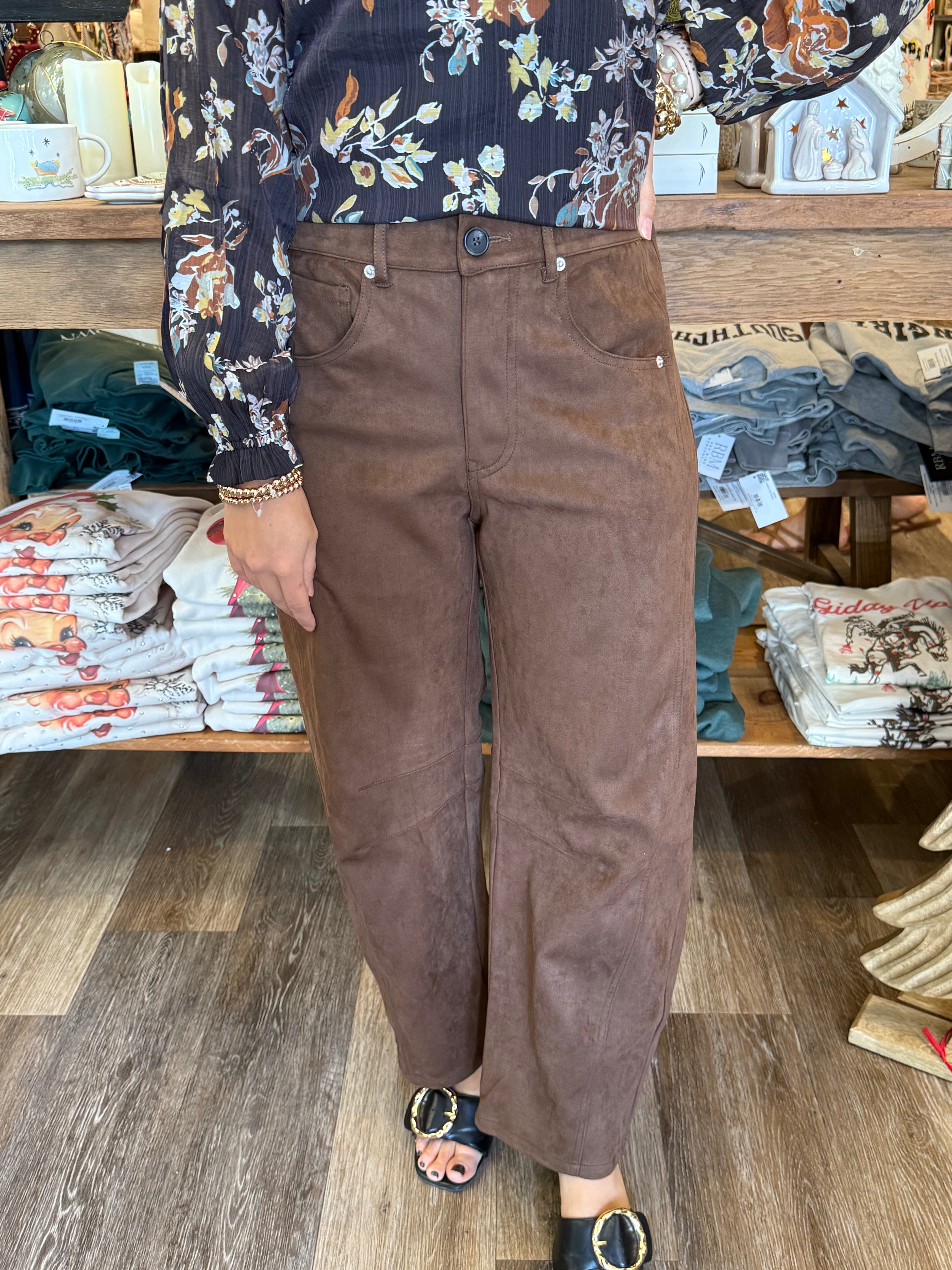 Soft, sleek, and oh-so-stylish — our Betsy Brown Suede Pants bring an elevated touch to any outfit. The rich suede texture and flattering fit make them a fall and holiday wardrobe favorite.