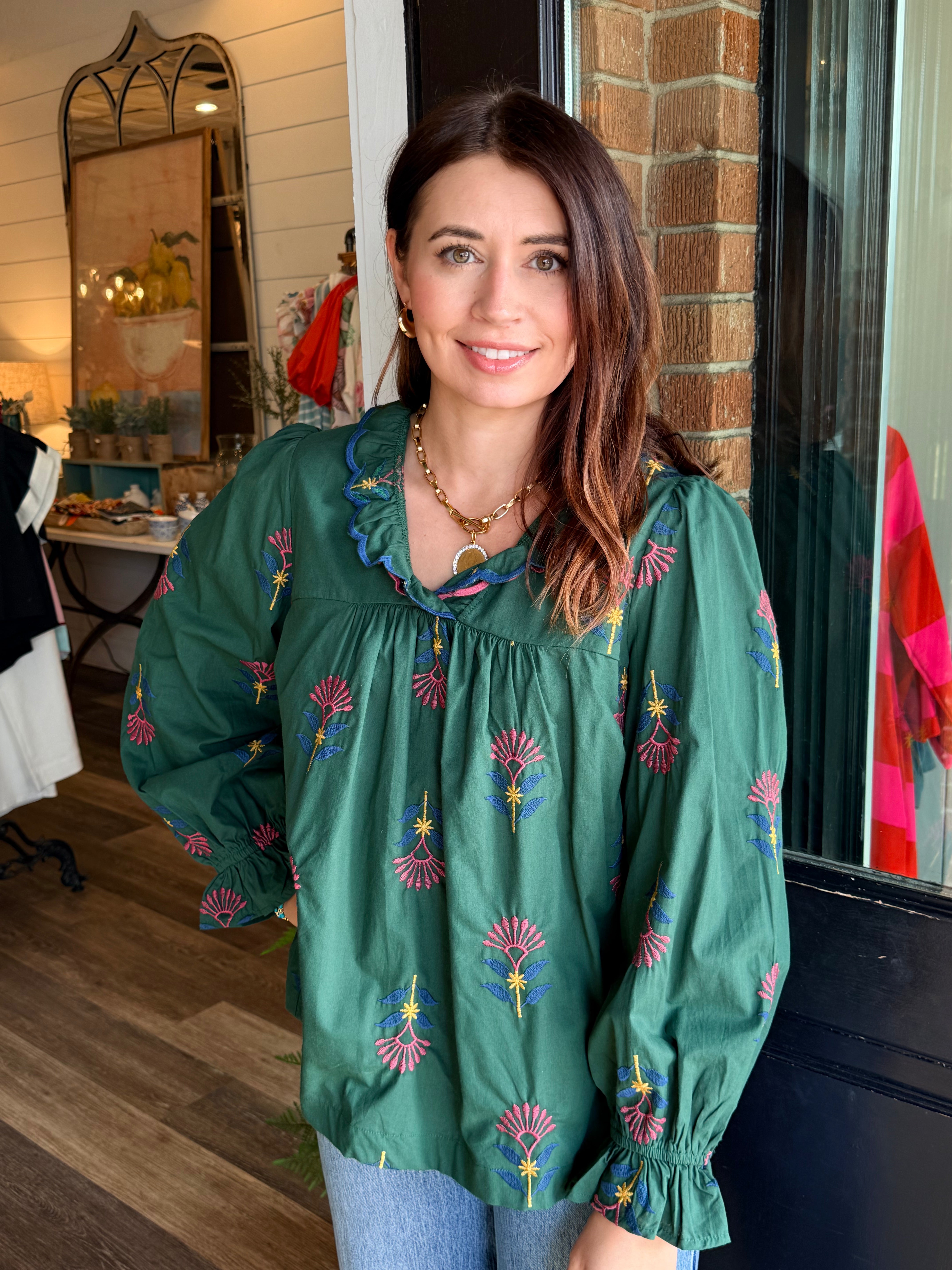 Fresh, feminine, and easy to wear, the Betsy Floral Top is a versatile piece you’ll reach for often. Designed with a flattering split neckline and long sleeves finished with elastic cuffs, this cotton top offers breathable comfort with a relaxed feel. Unlined for a lightweight, everyday fit.
