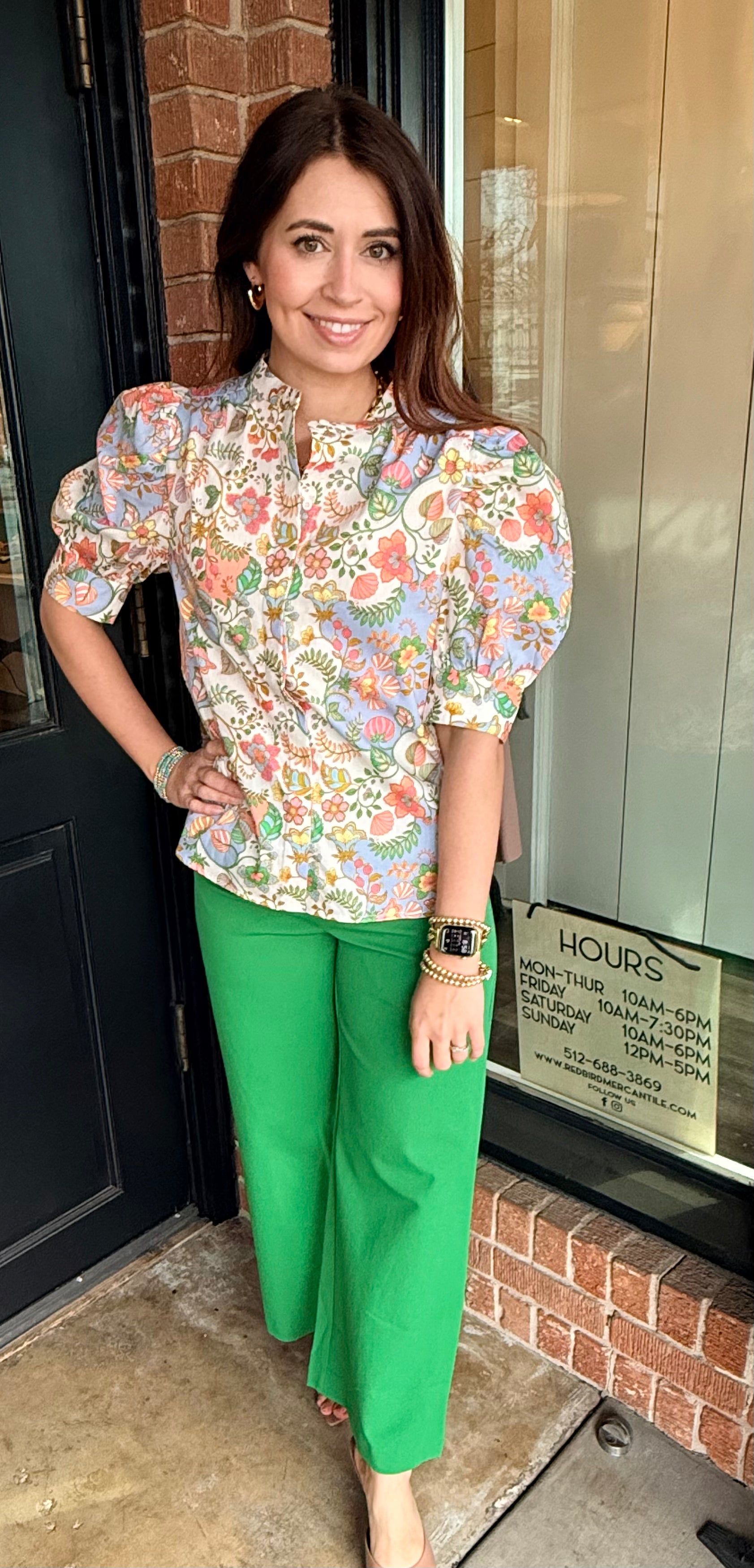 A cute top like this one will be admired by everyone. Designed with soft drape puff sleeves and a classic button-up front, it has that effortless, throw-on-and-go feel while still looking polished. The relaxed fit makes it easy to style with white denim, trousers, or your favorite everyday bottoms.