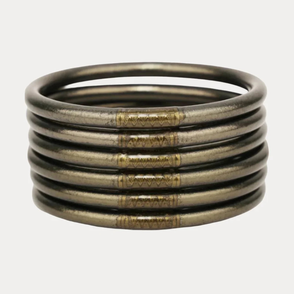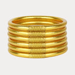 Celebrate in style with the AWB Bangles, featuring six orbs infused with custom-blended gold leaf for a radiant shimmer. Inspired by the sparkle of celebration, these bangles add a touch of elegance to any wristscape. Lightweight, flexible, and perfect for stacking, they’re a must-have for effortless glamour.