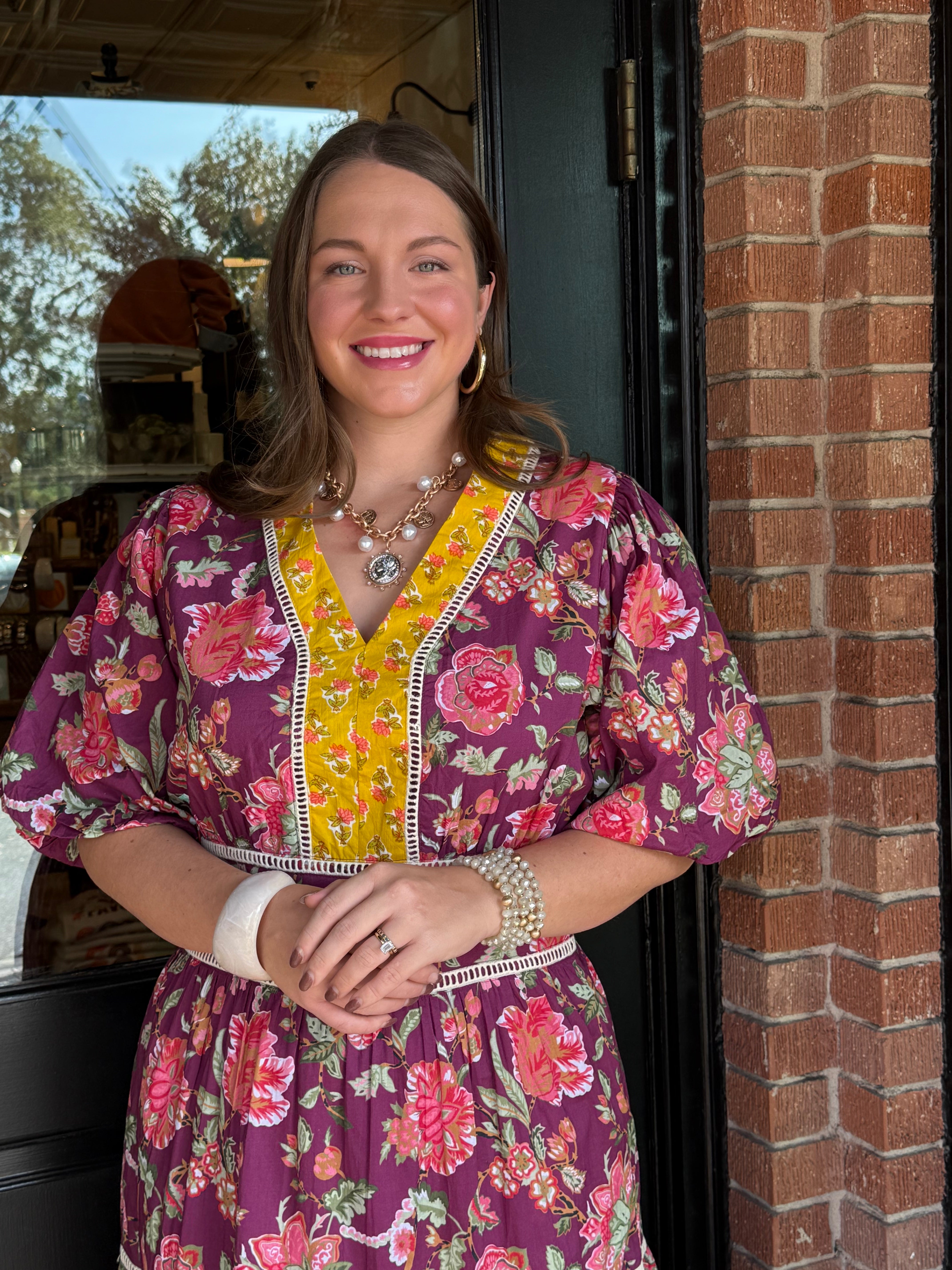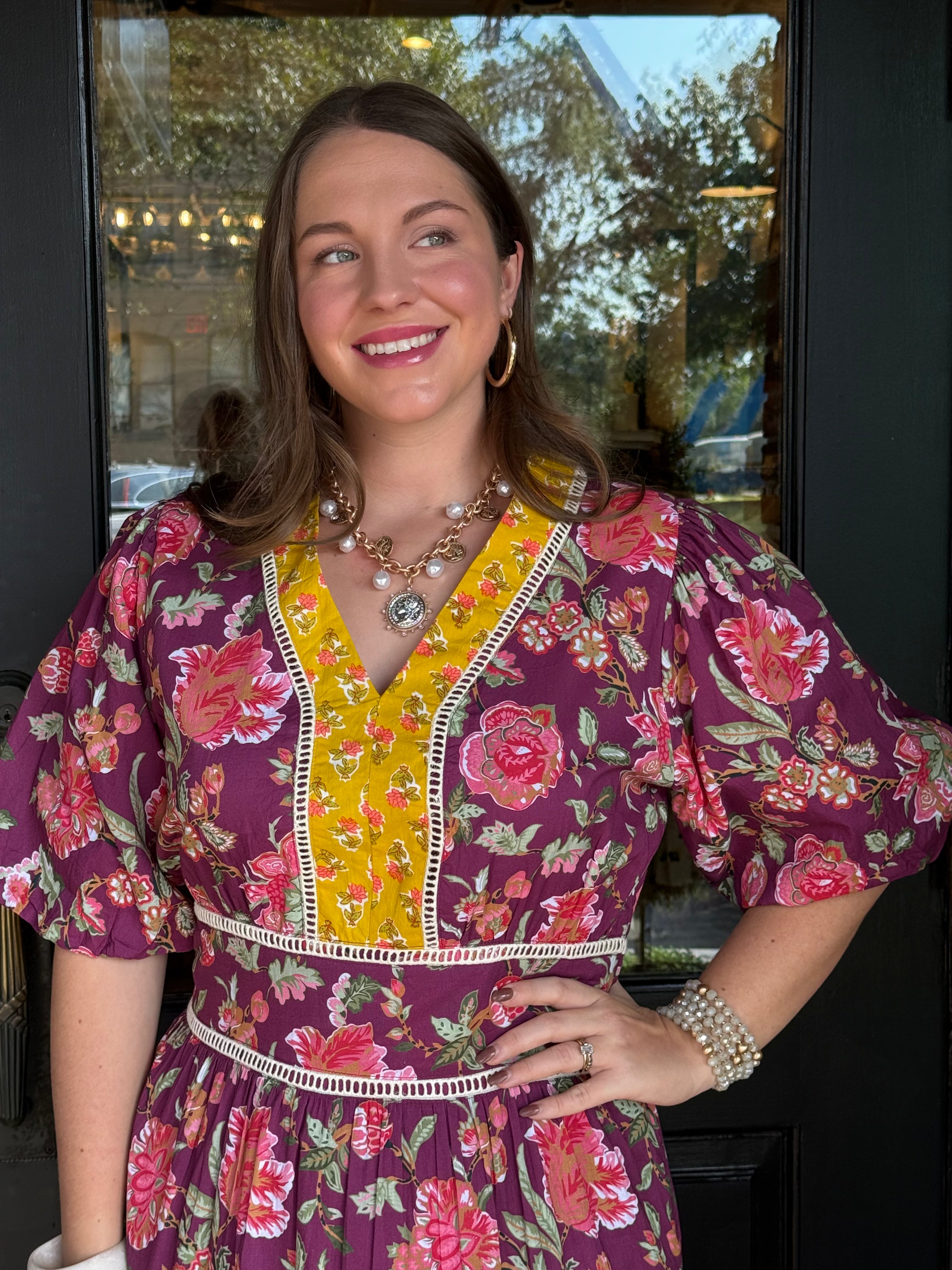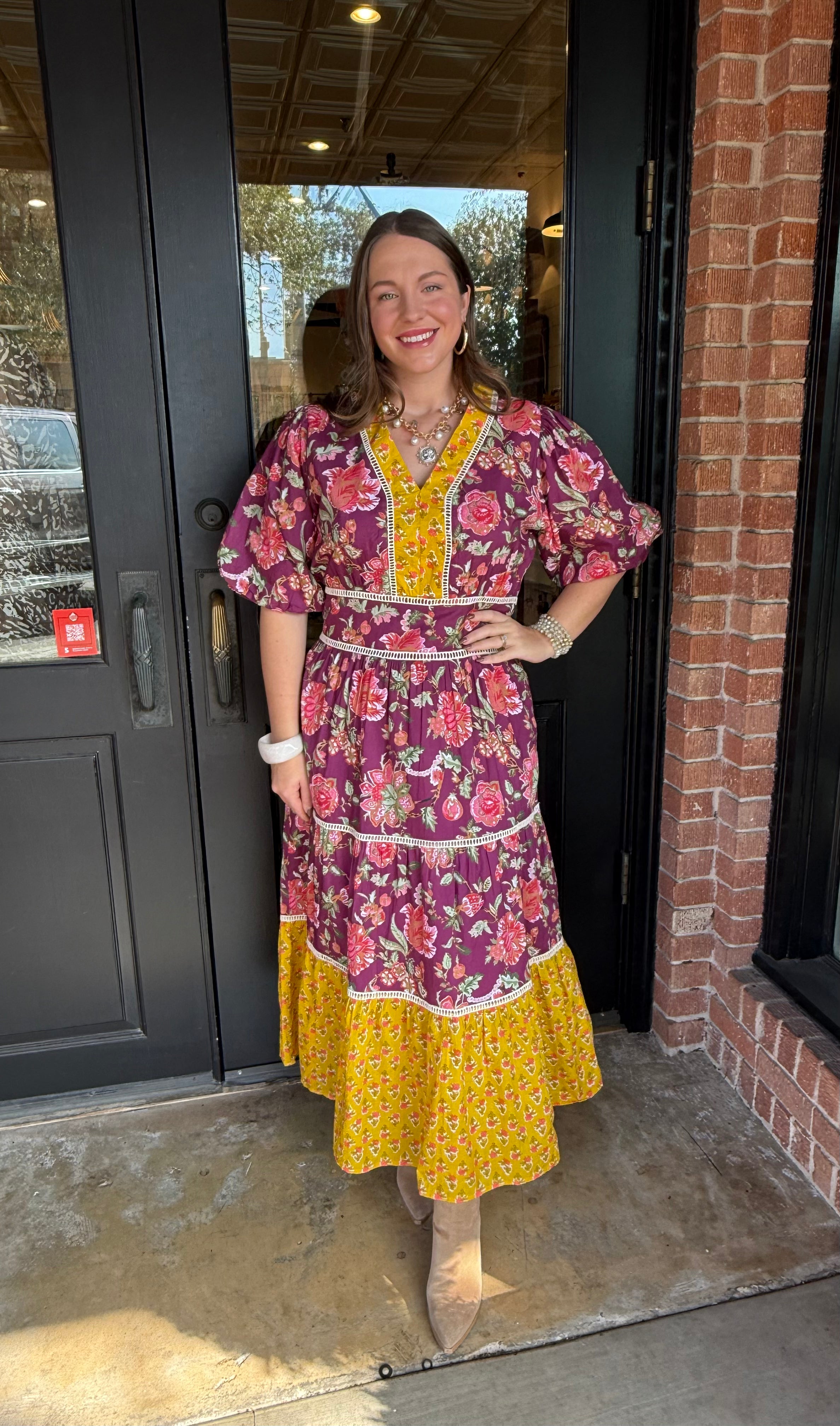 Romantic and timeless, the Carol Puff Sleeve Dress features a soft floral pattern and flowy tiered silhouette that’s perfect for any occasion. Crafted from breathable cotton, this maxi dress offers both comfort and charm with its flattering v-neckline and feminine puff sleeves.