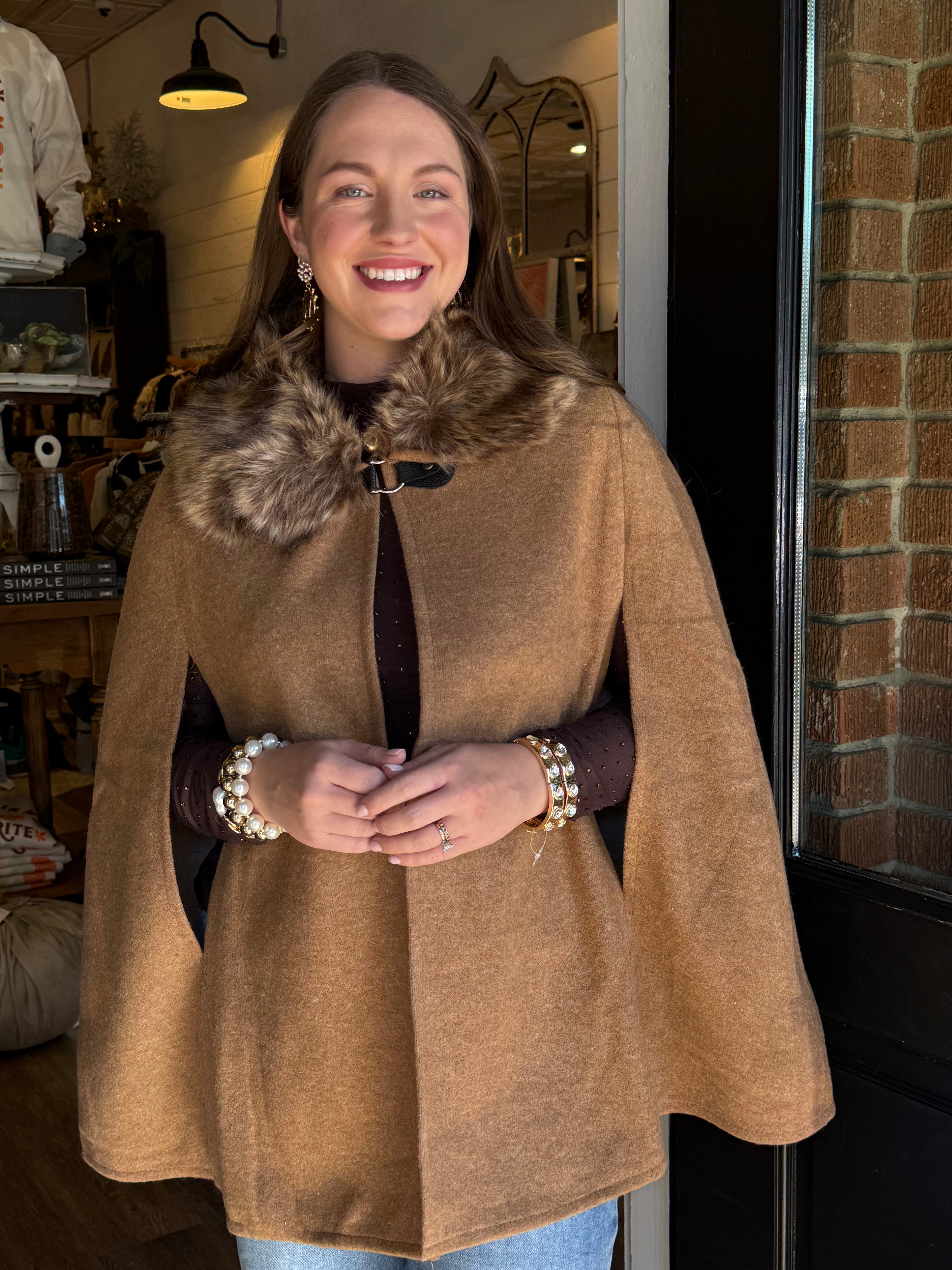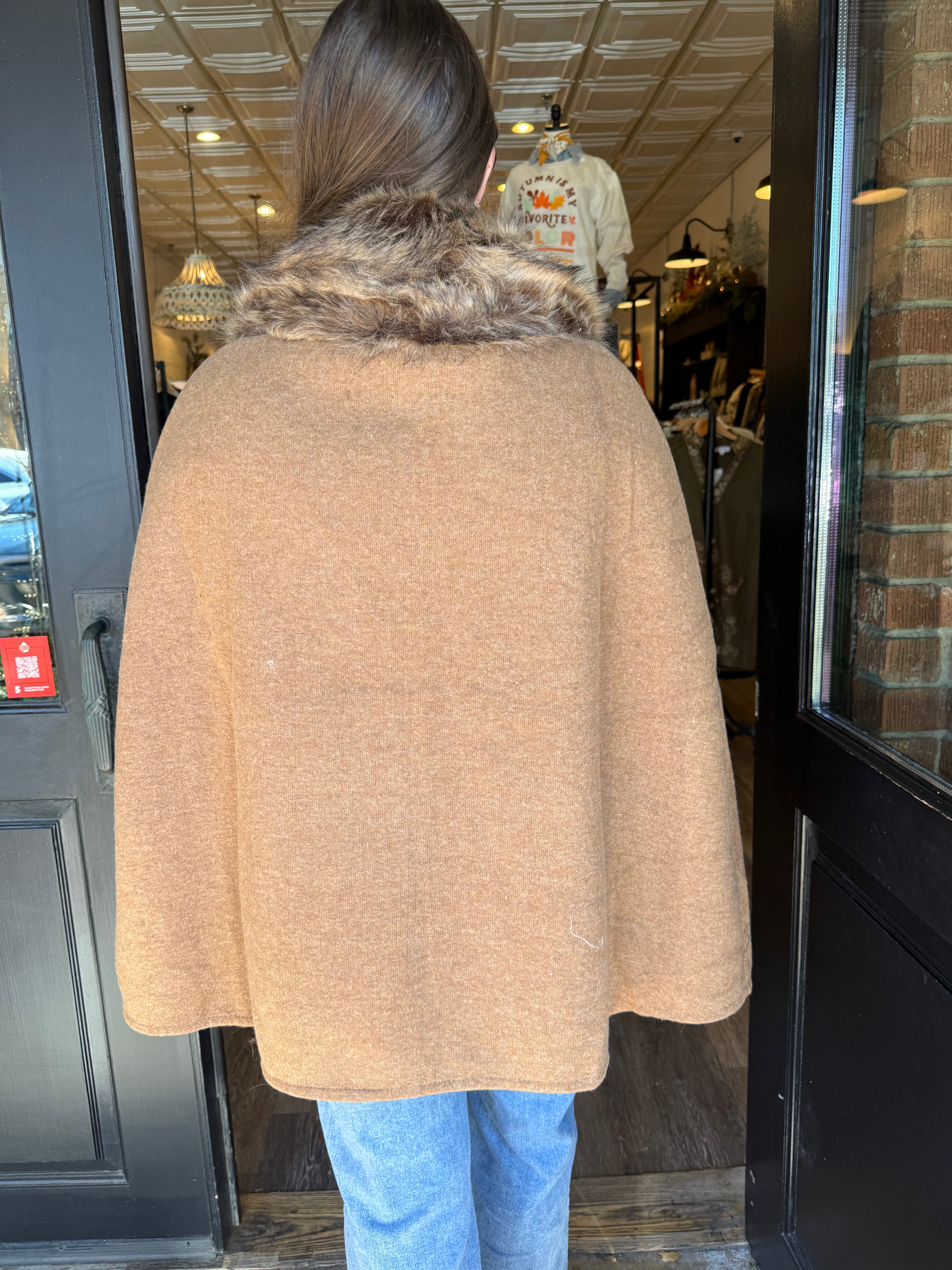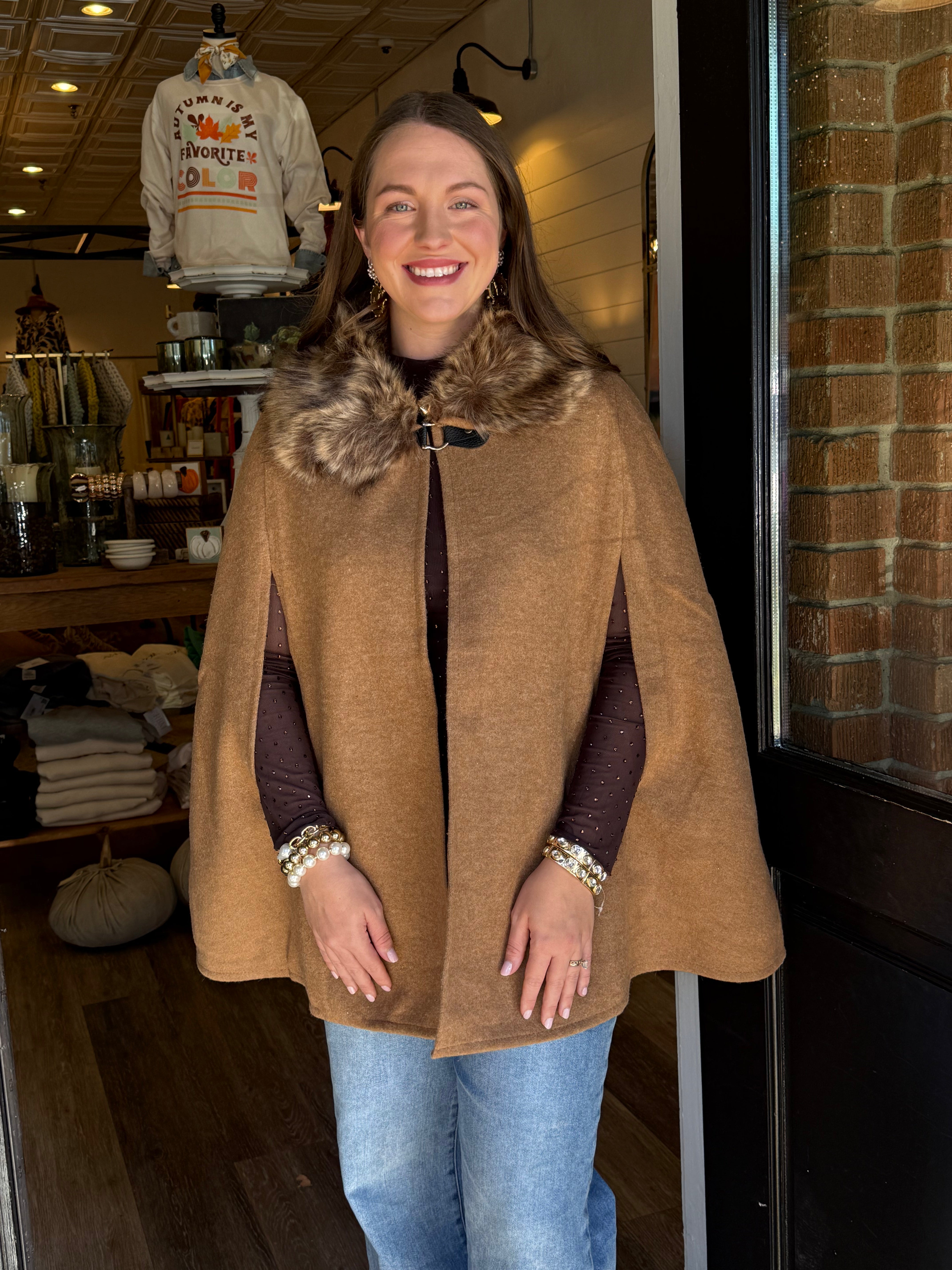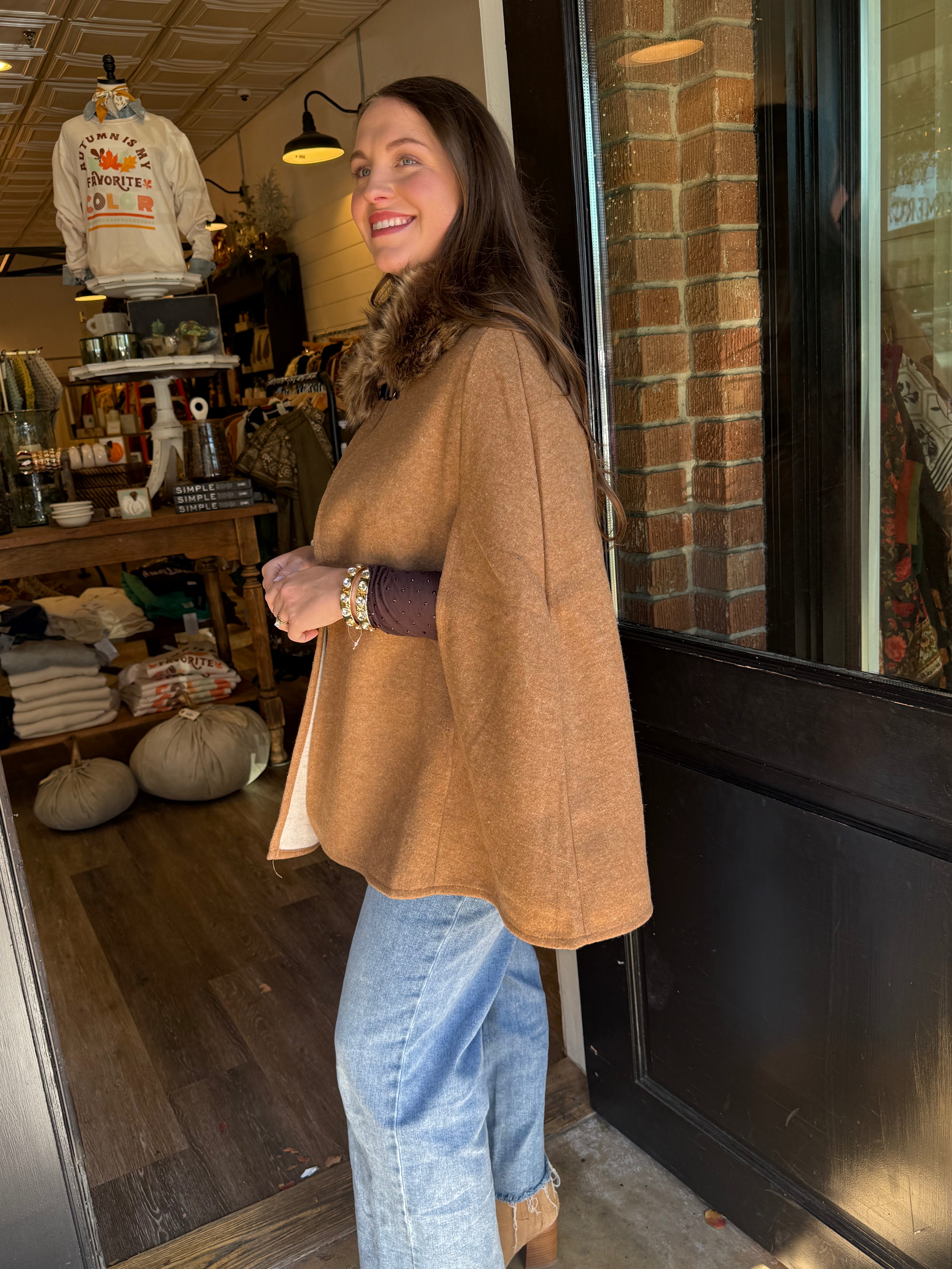 Elegant and cozy, the Cassie Knit Poncho is the ultimate statement layer for cool-weather days. Featuring a soft knit body with a luxurious faux fur–trimmed neckline and vegan leather tab closure accented by a pewter ring detail, this poncho blends classic sophistication with modern texture. Perfect for layering over sweaters or dresses for a polished, comfortable look.