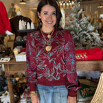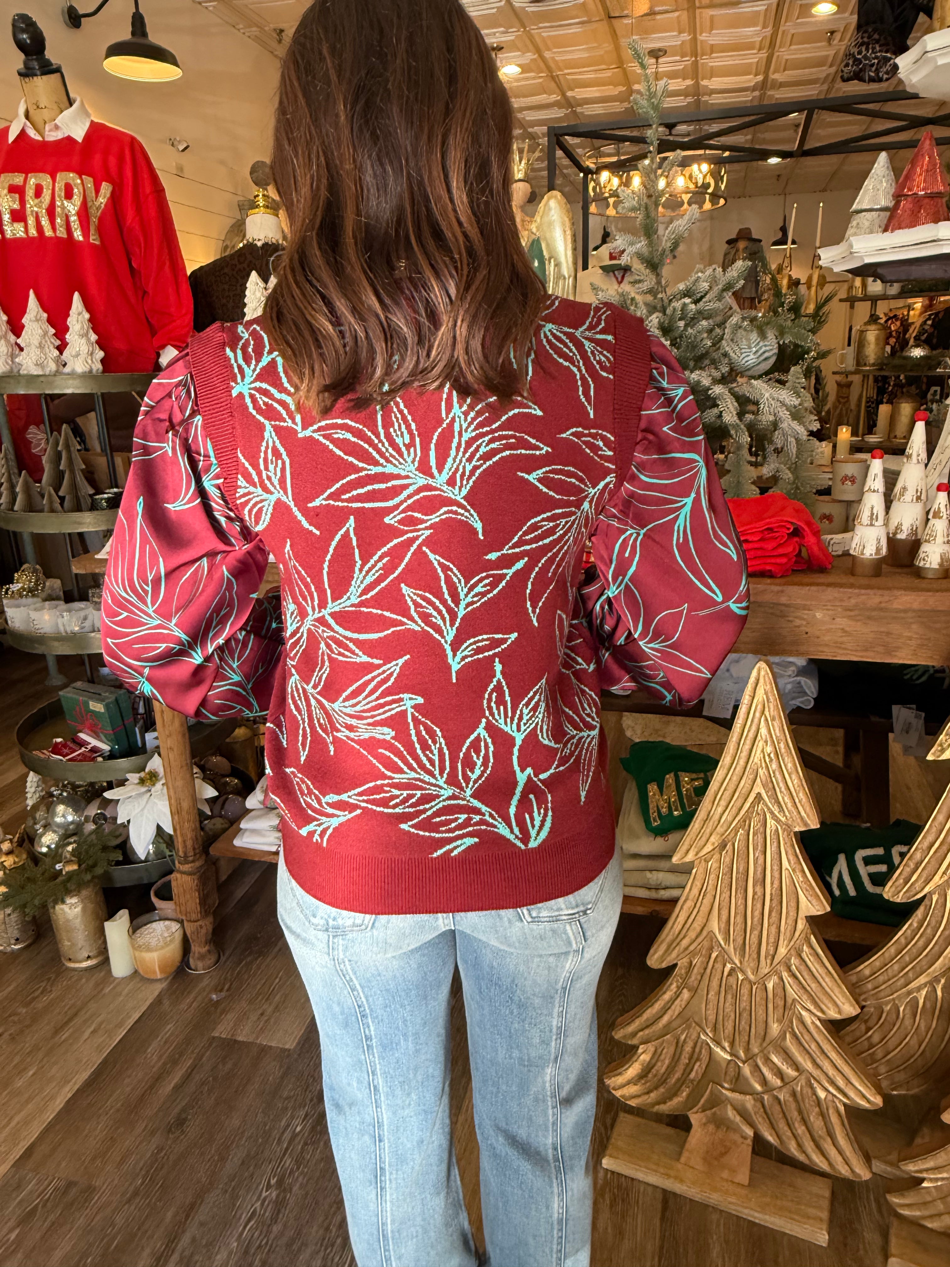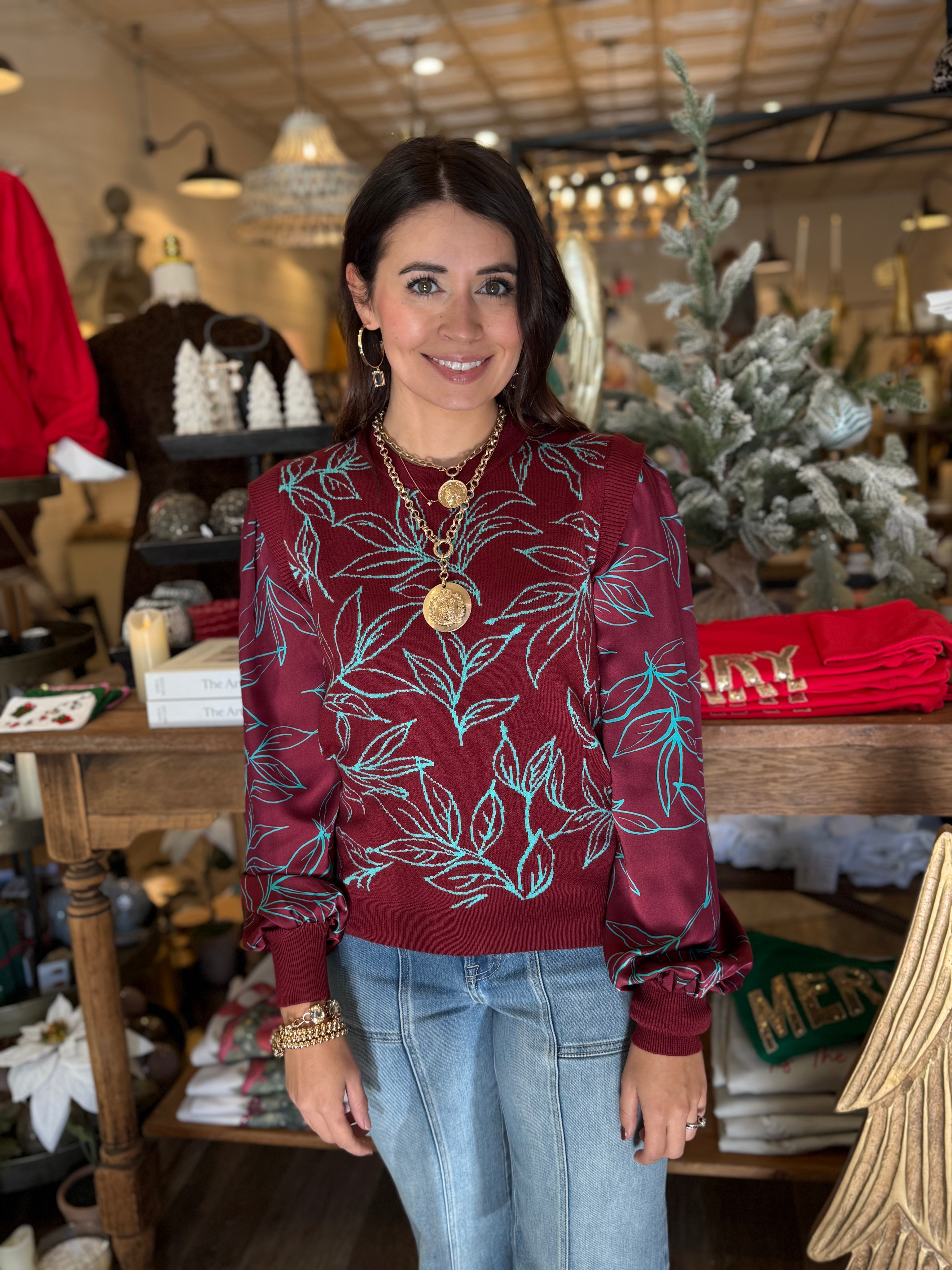 Cozy meets feminine charm in the Catherine Sweater Top, designed with the prettiest mix of textures and prints. The soft sweater knit bodice features a subtle leaf pattern, while the long woven puff sleeves showcase an exclusive leaf print for a beautifully coordinated look. Finished with ribbed neckline, cuffs, shoulders, and hem, this top offers comfort, structure, and standout style all in one.
