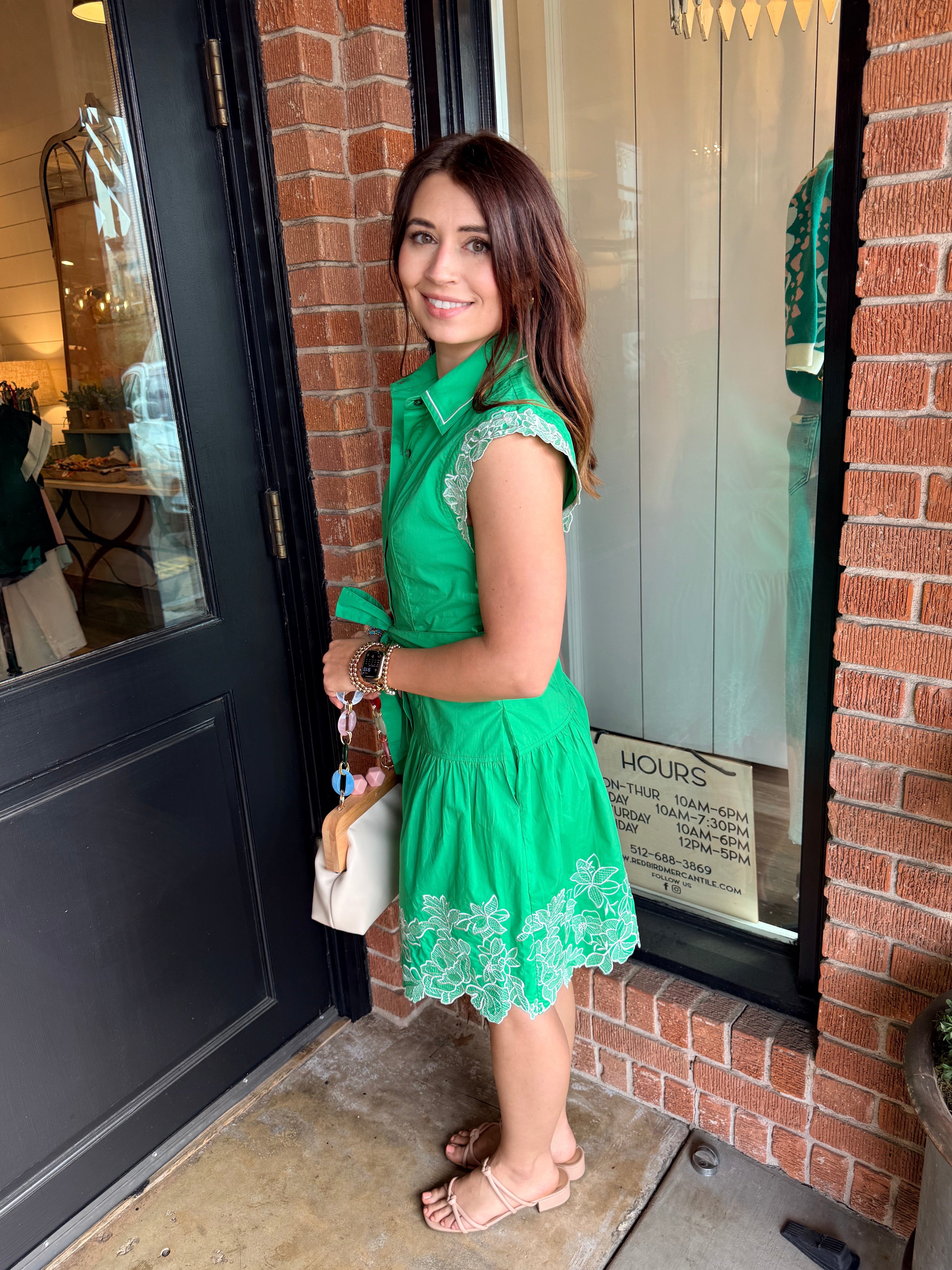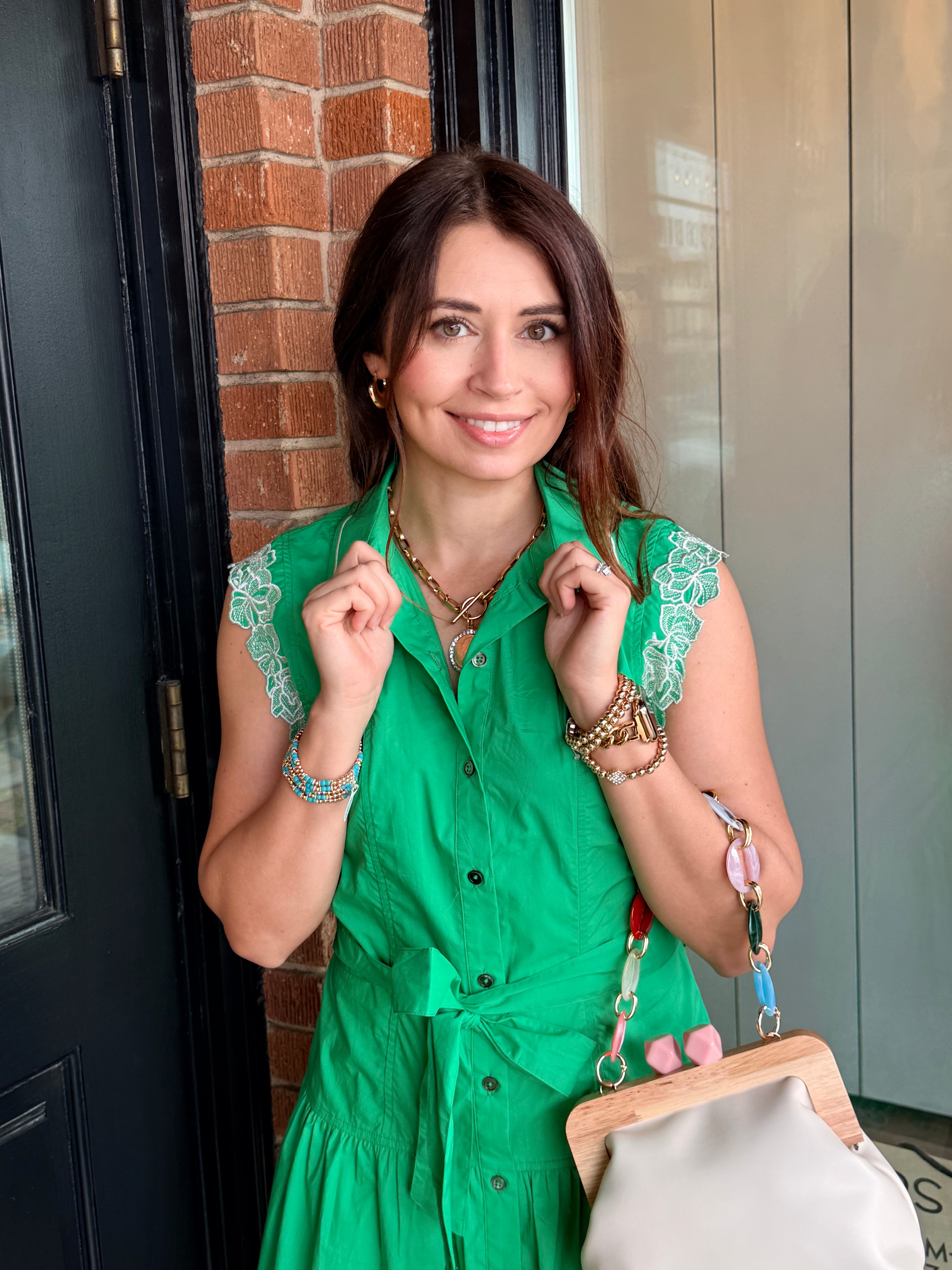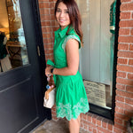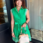 Sweet, feminine, and effortlessly flattering — the Clover Dress is the perfect mini for warm days and special moments. Designed with a collared neckline and button-down front, this dress features delicate lace trim along the cap sleevesfor a soft, romantic touch.