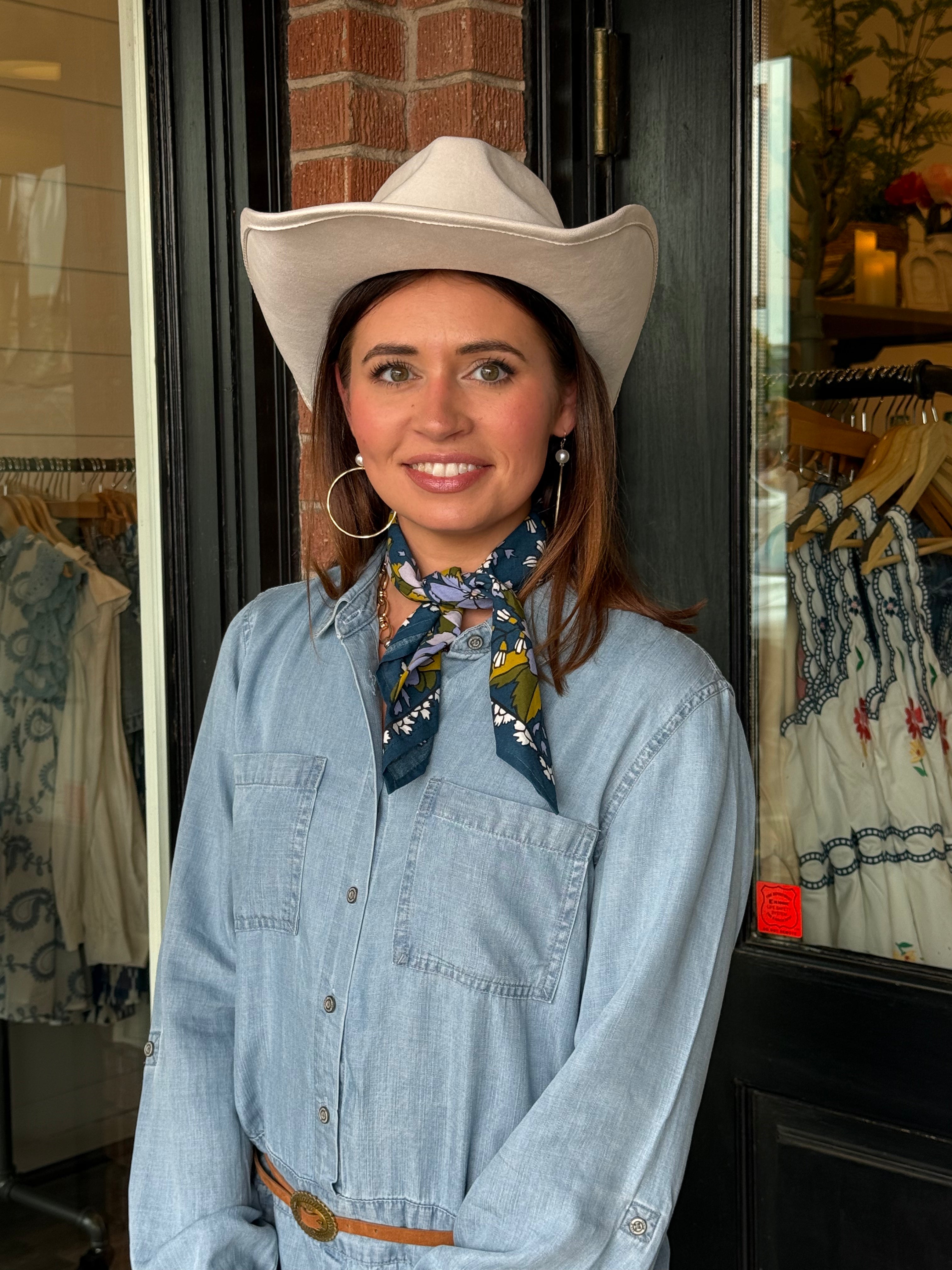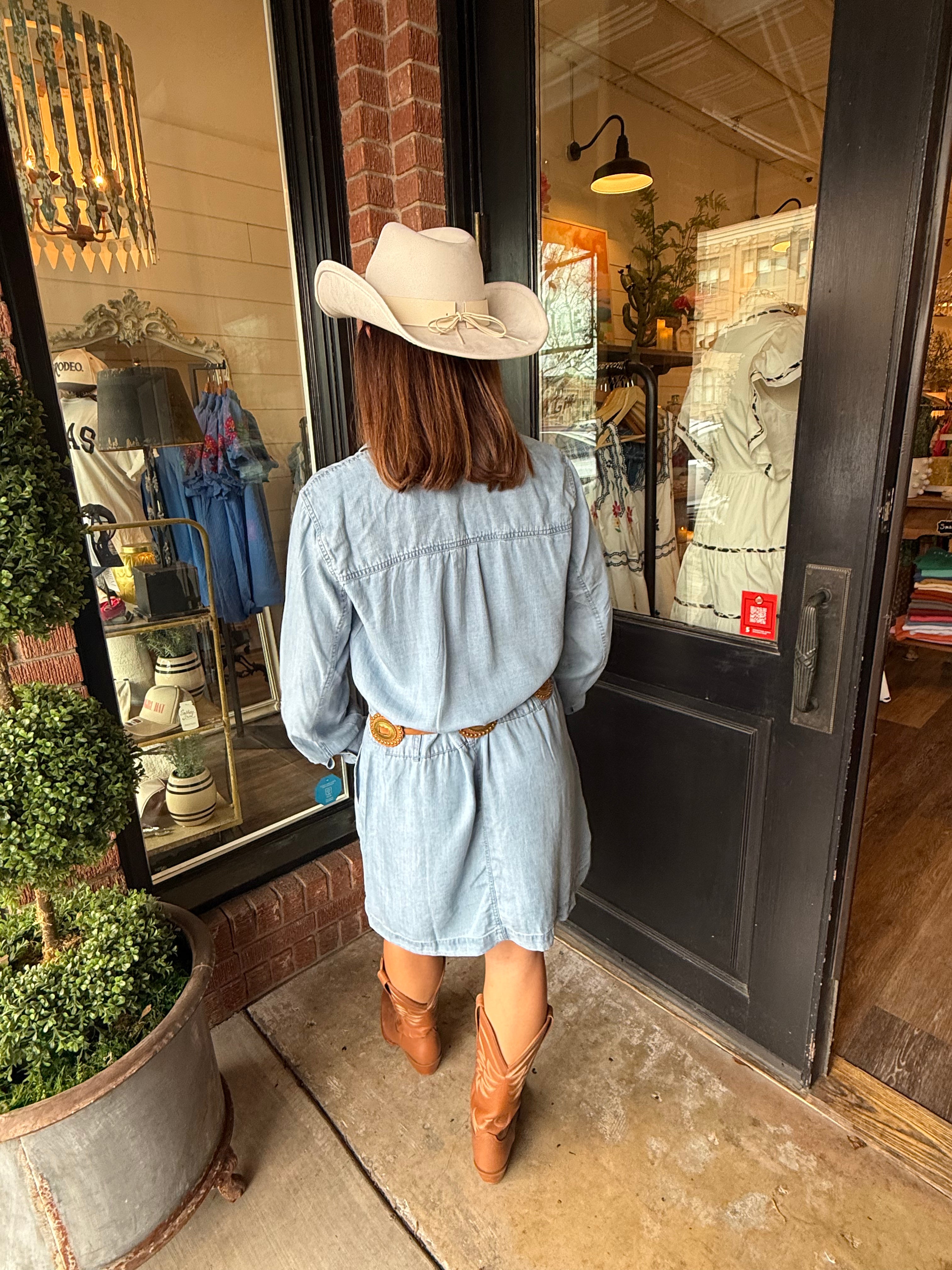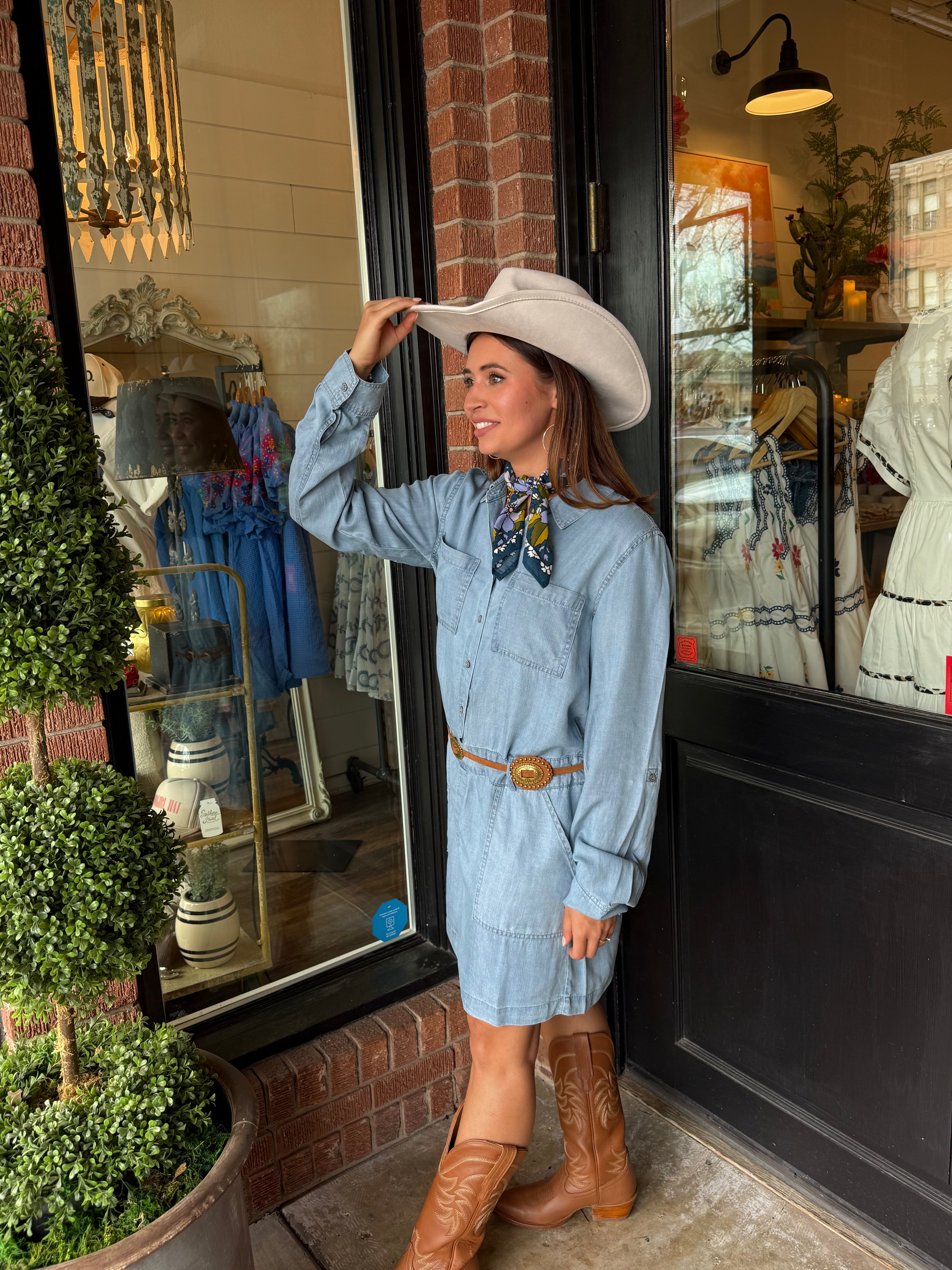 Effortlessly stylish and endlessly versatile, the Daisy Dress is a must-have for any wardrobe. Crafted from soft, lightweight Tencel with a chic denim look, this button-up dress offers both comfort and sophistication. Designed with belt loop accents at the waist for a flattering fit, chest pockets for added charm, and roll-up sleeve details for a relaxed touch, it’s perfect for any occasion. Dress it up with heels or keep it casual with sneakers—either way, you’ll love the way it looks and feels!