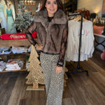 Chic, cozy, and irresistibly soft — the Daphne Faux Fur Cropped Vest is the perfect statement layer for the season. 🤍 Featuring a plush faux fur texture, fold-down collar, and hidden hook-and-ring closures, this vest adds instant polish and warmth to any outfit. The velvet-lined pockets and cropped silhouette make it both luxurious and wearable — a true boutique favorite.