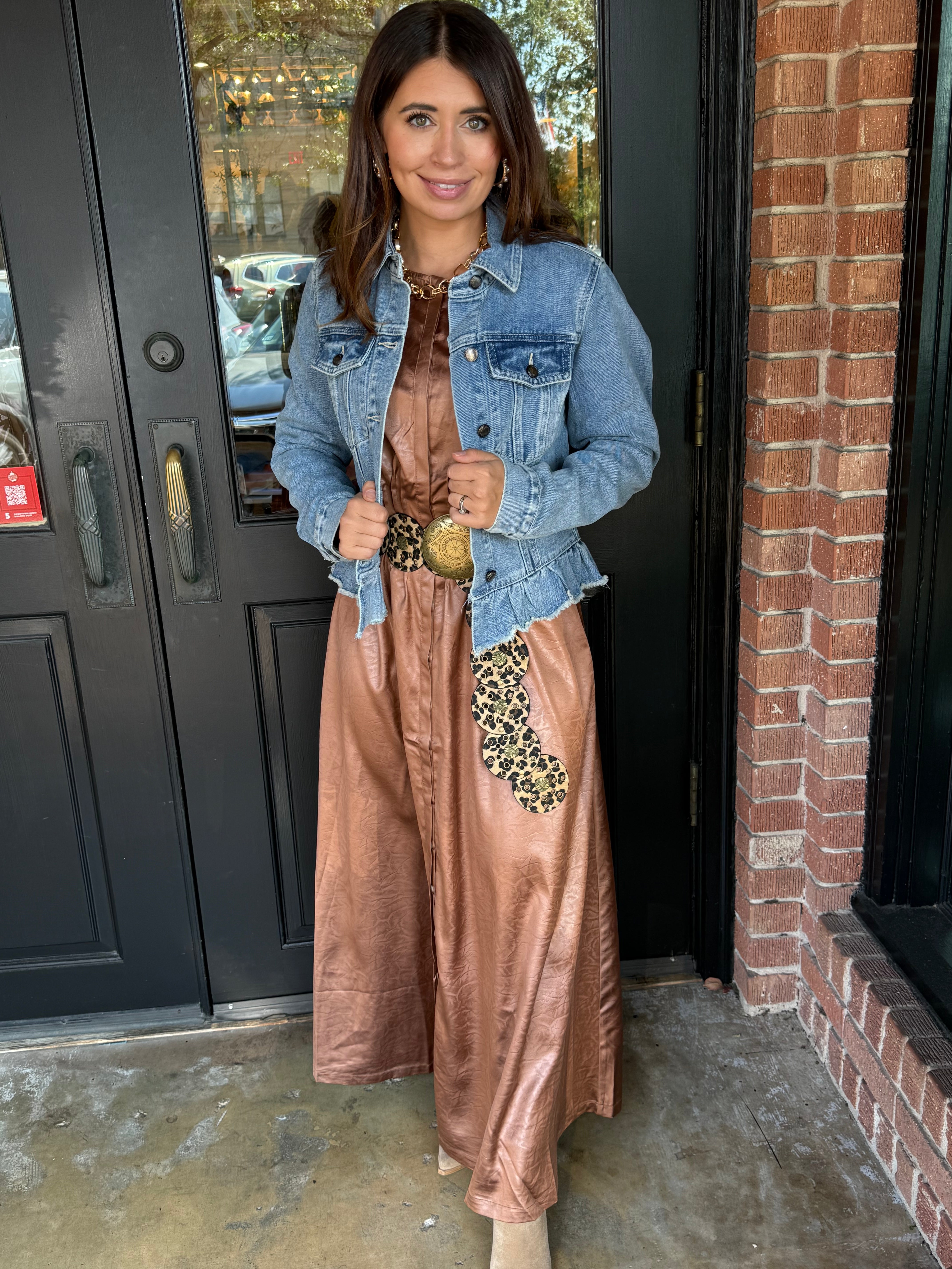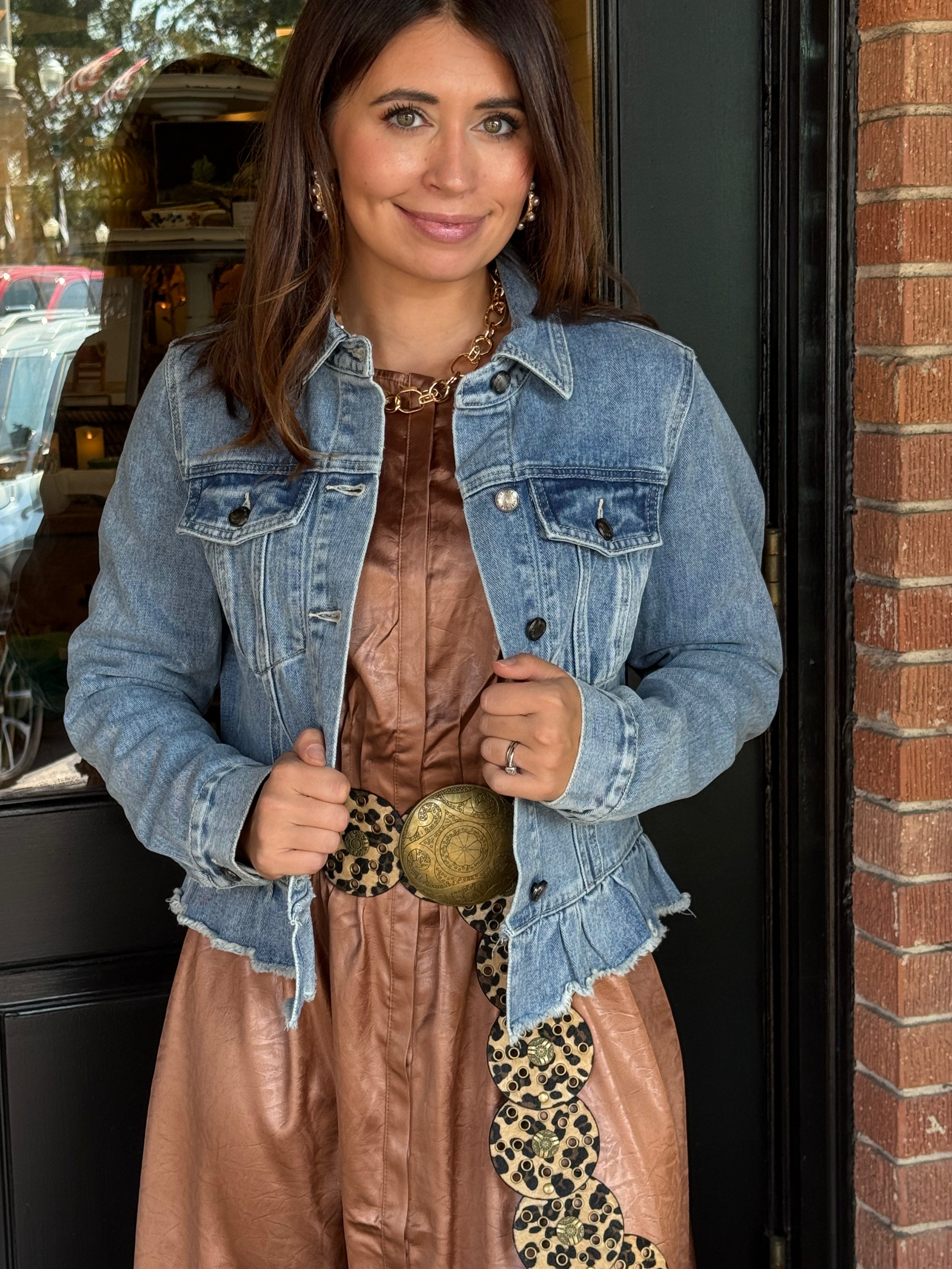 Paired with Jenny Ruffle Hem Denim Jacket.