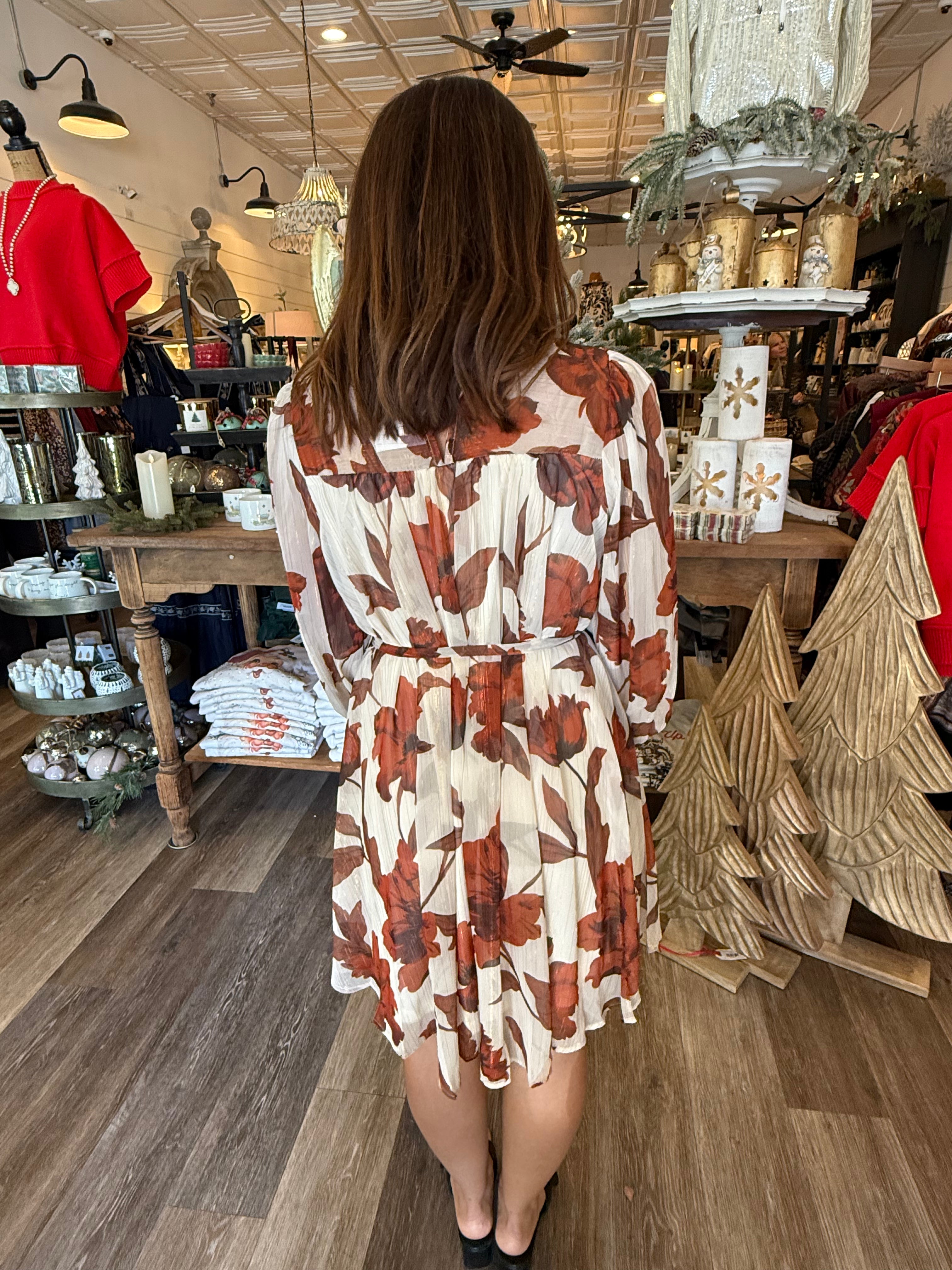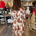 A feminine favorite with playful charm — the Ellie Printed Mini Dress features a high ruffled neckline and long sleeves with button cuffs for an effortlessly polished look. The tie waist adds a flattering shape, while the lightweight fabric and full lining make it comfortable for all-day wear. Perfect for holiday gatherings or everyday chic style!