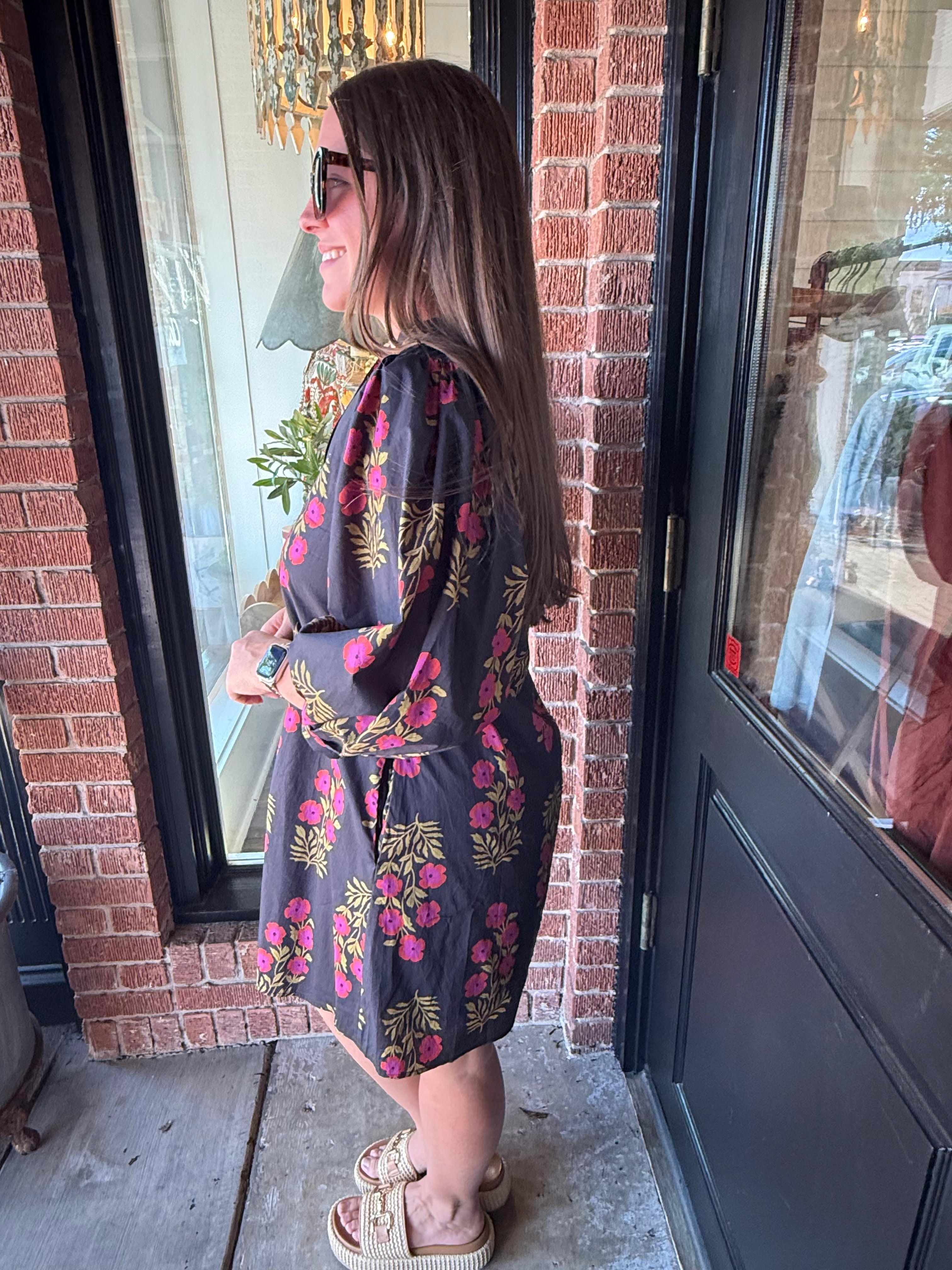 The Eloise Floral Dress is an effortless style with feminine charm. Designed with a delicate floral print, this midi dress features 3/4 length sleeves and a flattering split neckline for an easy, relaxed look. Fully lined and crafted from 100% cotton, it’s breathable and comfortable for all-day wear. Perfect for fall gatherings, casual dinners, or everyday outings when you want a polished yet comfortable dress.