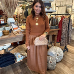 Stay warm and stylish with the Ember Ribbed Turtle Neck Knit Maxi Dress. The classic ribbed turtleneck adds a cozy touch, while long sleeves provide full coverage for cooler days. Designed with a seam at the natural waist, this dress creates a flattering silhouette, and the flowy, gathered maxi skirt moves elegantly with every step. Perfect for casual outings, work, or a stylish evening look, the Ember dress blends comfort and sophistication effortlessly.