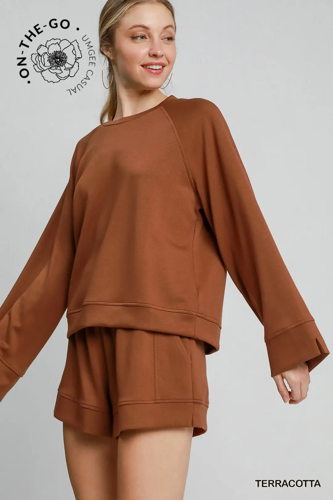 Elevate your everyday essentials with the Emmilene LuxeKnit Raglan Sleeve Top. Designed in a soft, stretchy luxe knit fabric, this top delivers both comfort and style. The raglan sleeve design creates a relaxed, easy fit that’s perfect for layering or pairing with your favorite shorts, denim, or lounge pants. With just the right amount of stretch, it’s an effortless piece you’ll reach for again and again.