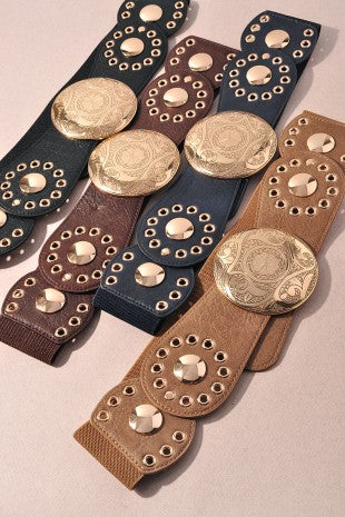 Add a little western charm to your look with the Engraved Western Buckle Elastic Belt. Designed with a beautifully engraved round buckle and a comfortable elastic band, this belt blends statement style with easy wear. It’s perfect for cinching dresses, styling with skirts, or adding a western-inspired touch to denim.