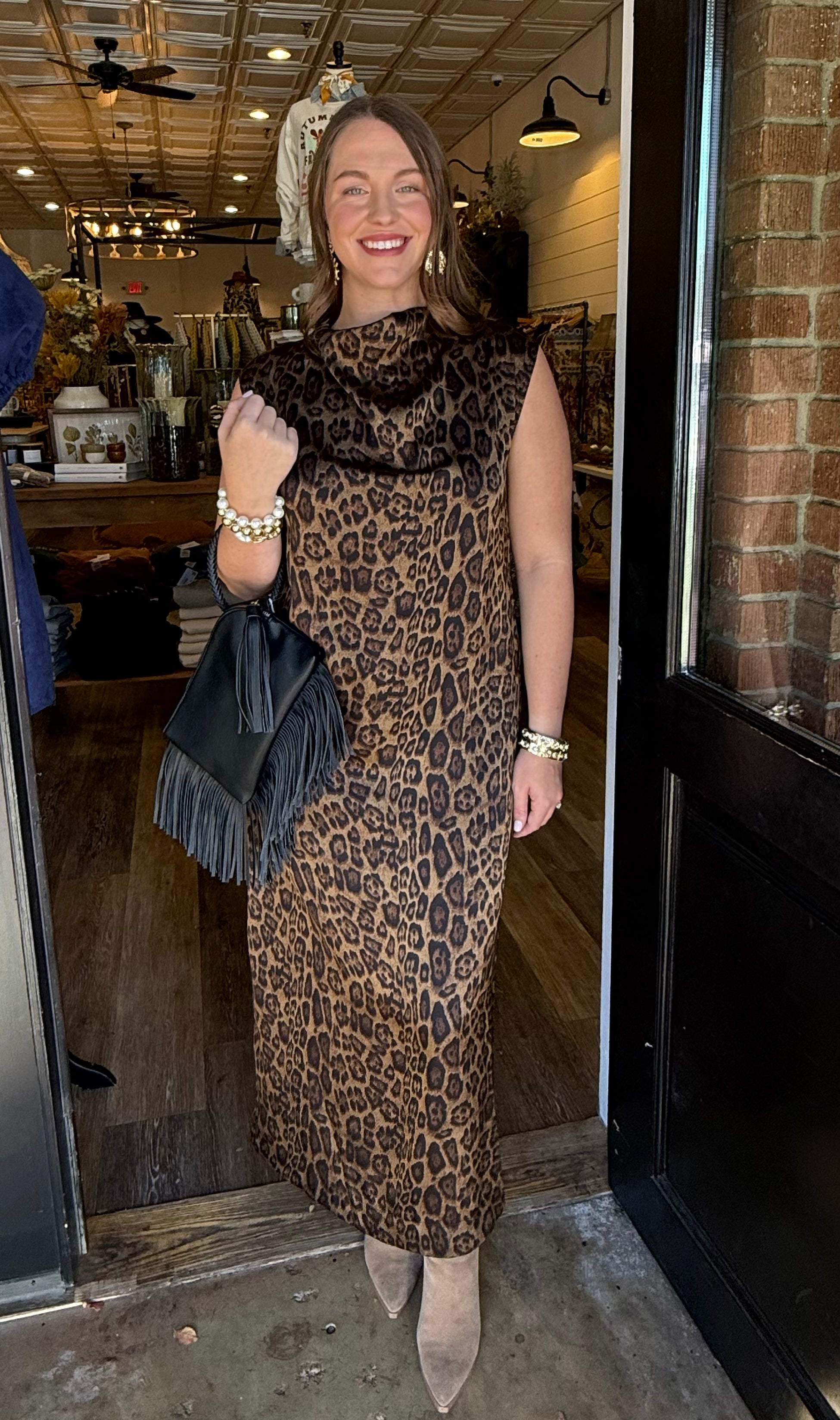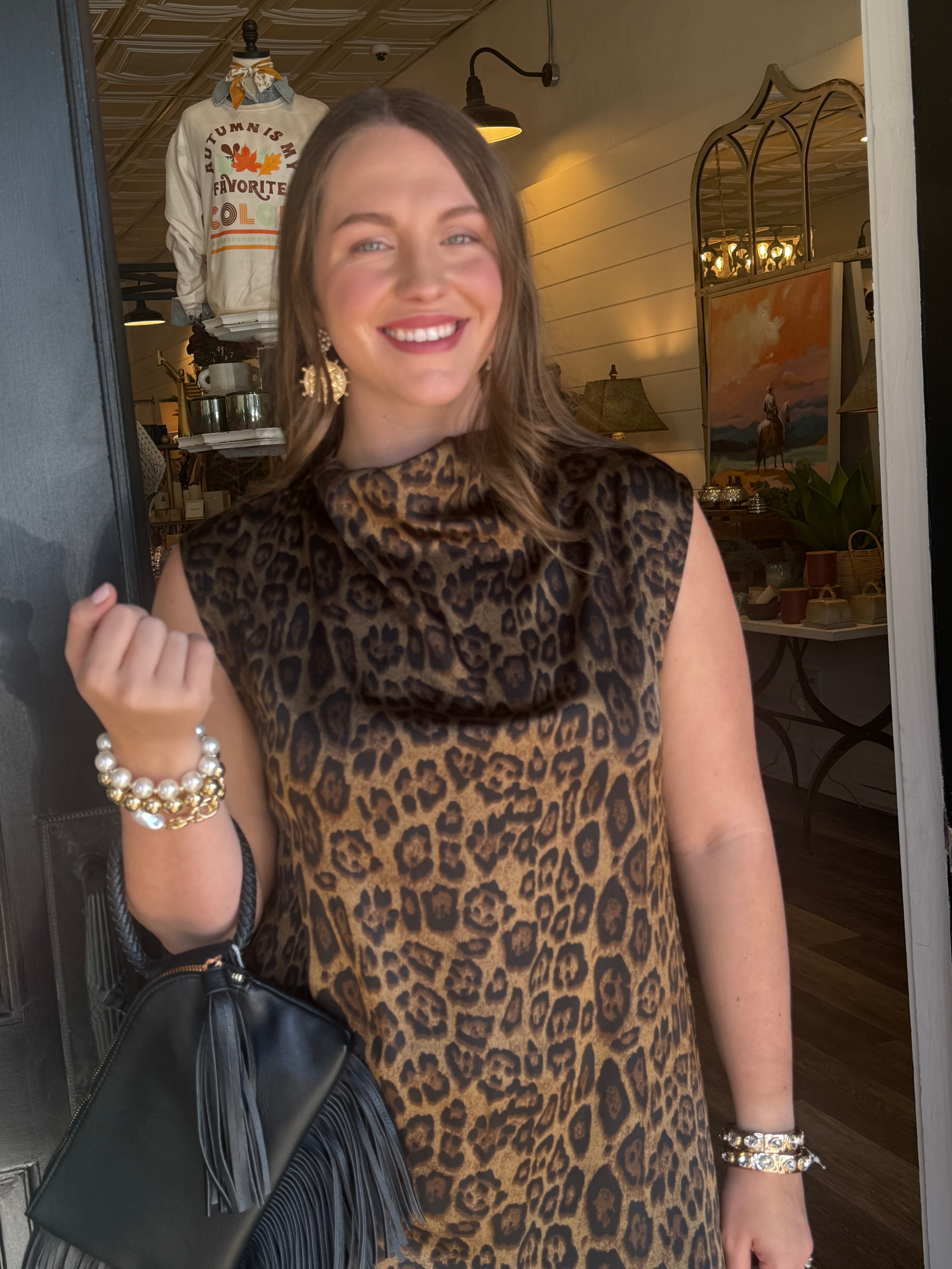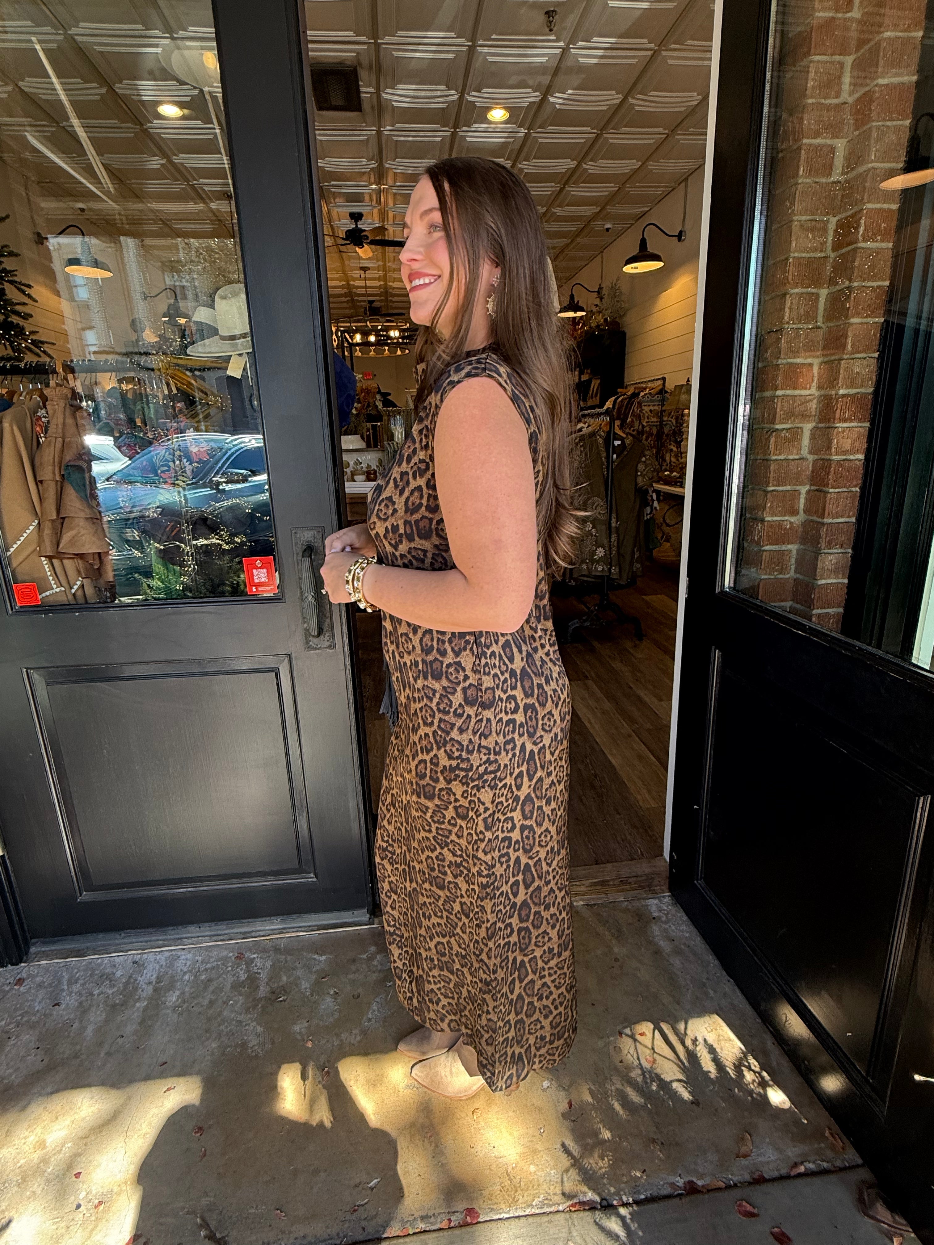 Sophisticated and bold, the Eva Leopard Mock Neck Maxi Dress brings effortless elegance with a hint of edge. Featuring a chic mock neckline, soft flowing silhouette, and allover leopard print, this dress is perfect for everything from dinner dates to special occasions. The maxi length adds drama, while the comfortable fit keeps it easy to wear all day or night.