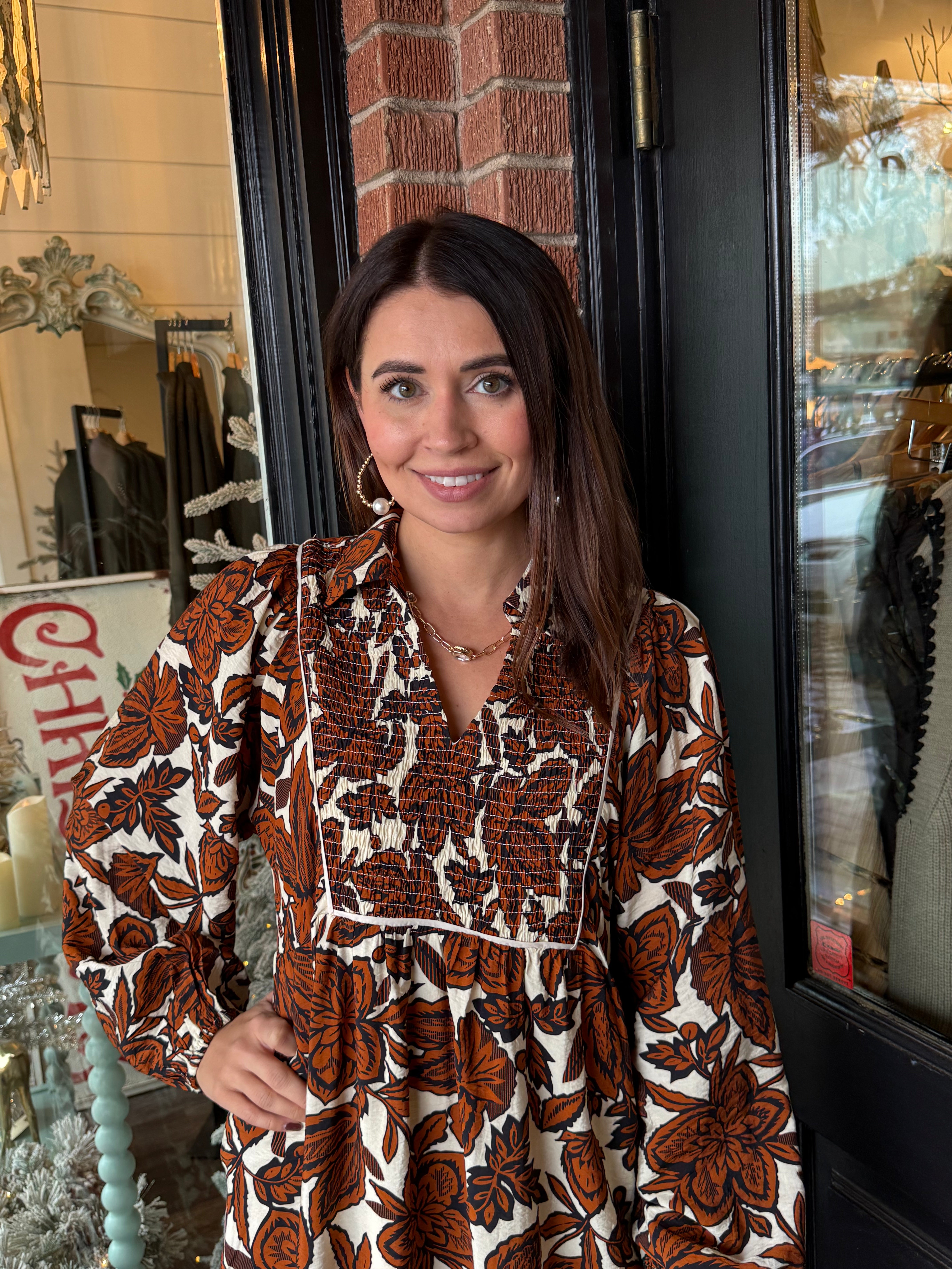 Romantic, feminine, and effortlessly elegant — the Faith Floral Midi Dress is the perfect piece for days you want to feel beautifully put together. Designed with a soft smocked neckline that creates gentle texture and shape, this dress features long sleeves for a graceful silhouette and an allover floral print that feels timeless yet fresh.