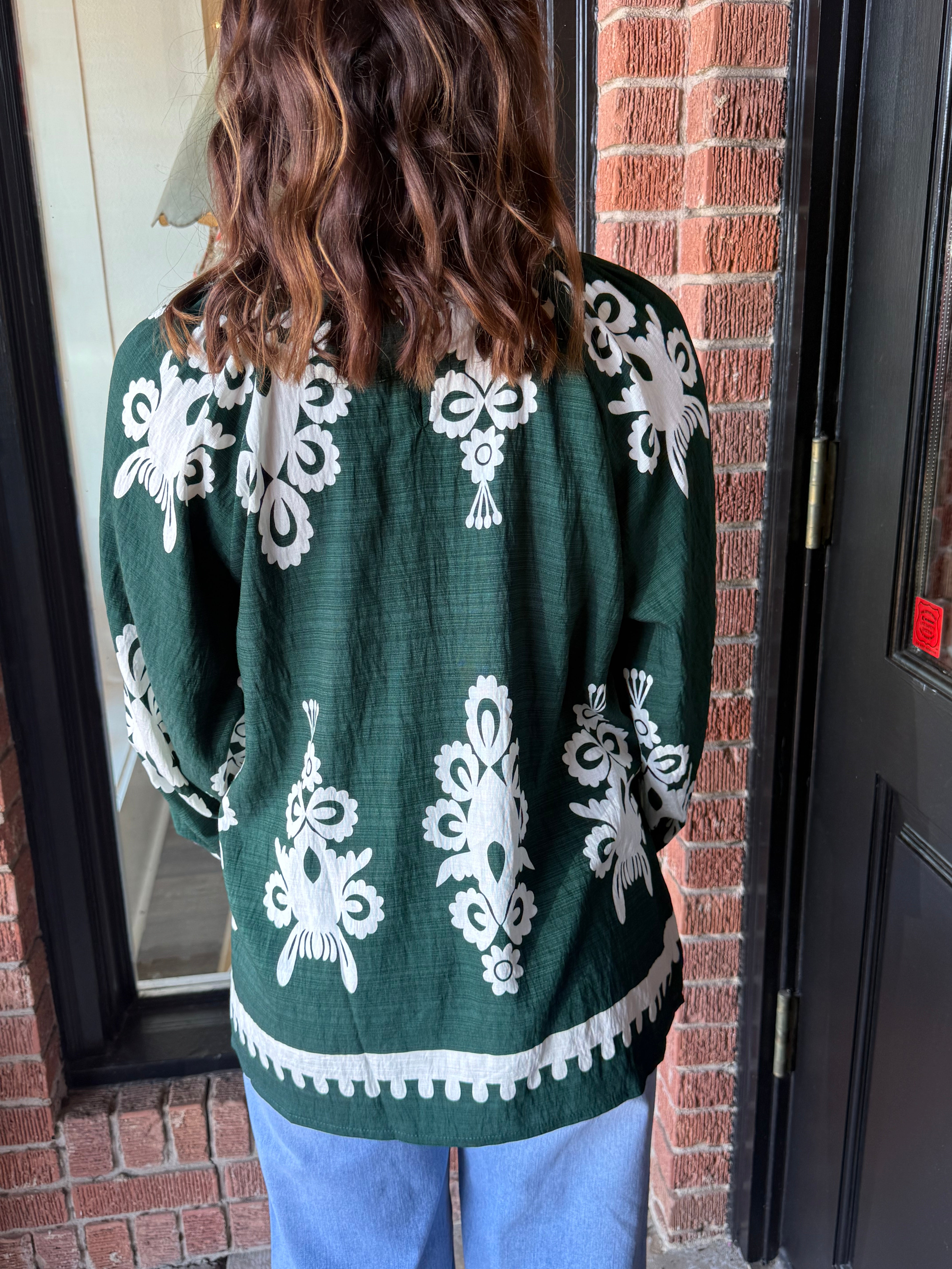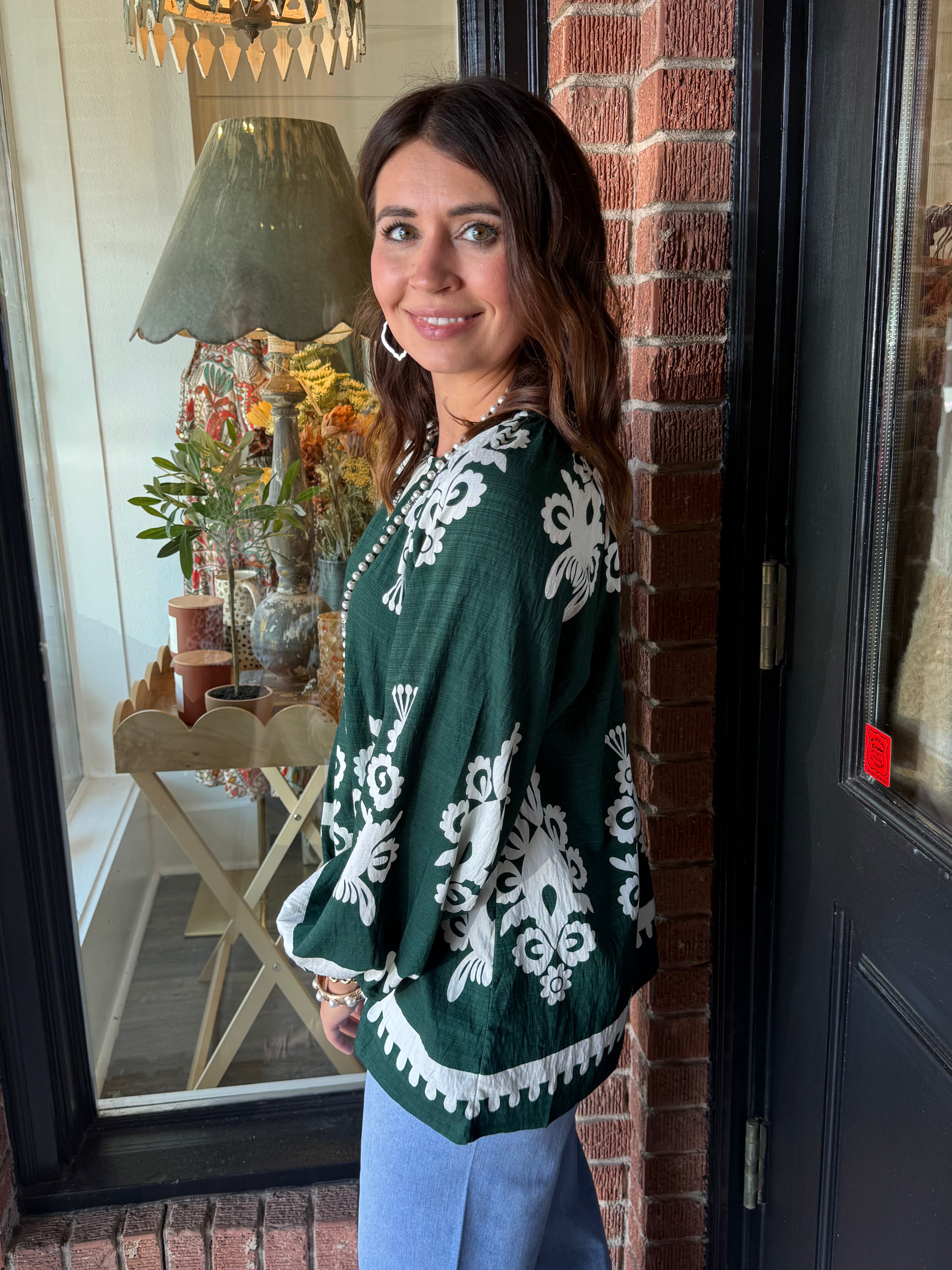 Add a pop of pattern to your wardrobe with the Genevieve Two Tone Border Print Top. Featuring a relaxed, flowy silhouette, this top is effortlessly chic and perfect for everyday wear. The round neckline and 3/4-length balloon sleeves create a flattering, feminine shape, while the straight hem keeps the look clean and versatile. Pair with your favorite jeans, skirts, or tailored pants for a polished, put-together outfit.