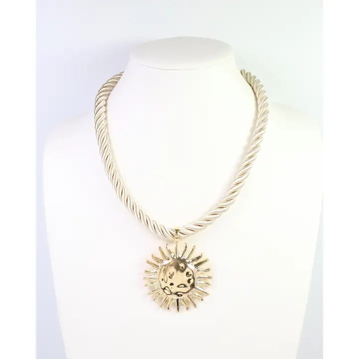 Sun Cord Necklace in gold radiates warmth and positivity. A medium-sized sun charm hangs gracefully from a sleek cord, creating a cheerful focal point that works beautifully on its own or layered with other pieces. This versatile accessory brings sunshine-inspired style to any outfit. ππ’π¦ππ§π¬π’π¨π§π¬: β’ 17" Length