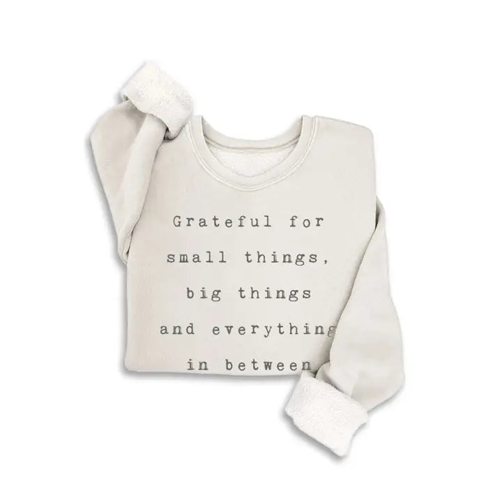 Celebrate life's little joys with our Grateful For Small Things Sweatshirt. From the smallest moments to the biggest milestones, this cozy sweatshirt reminds you to appreciate it all. Stay comfy and grateful in this fun, playful design.