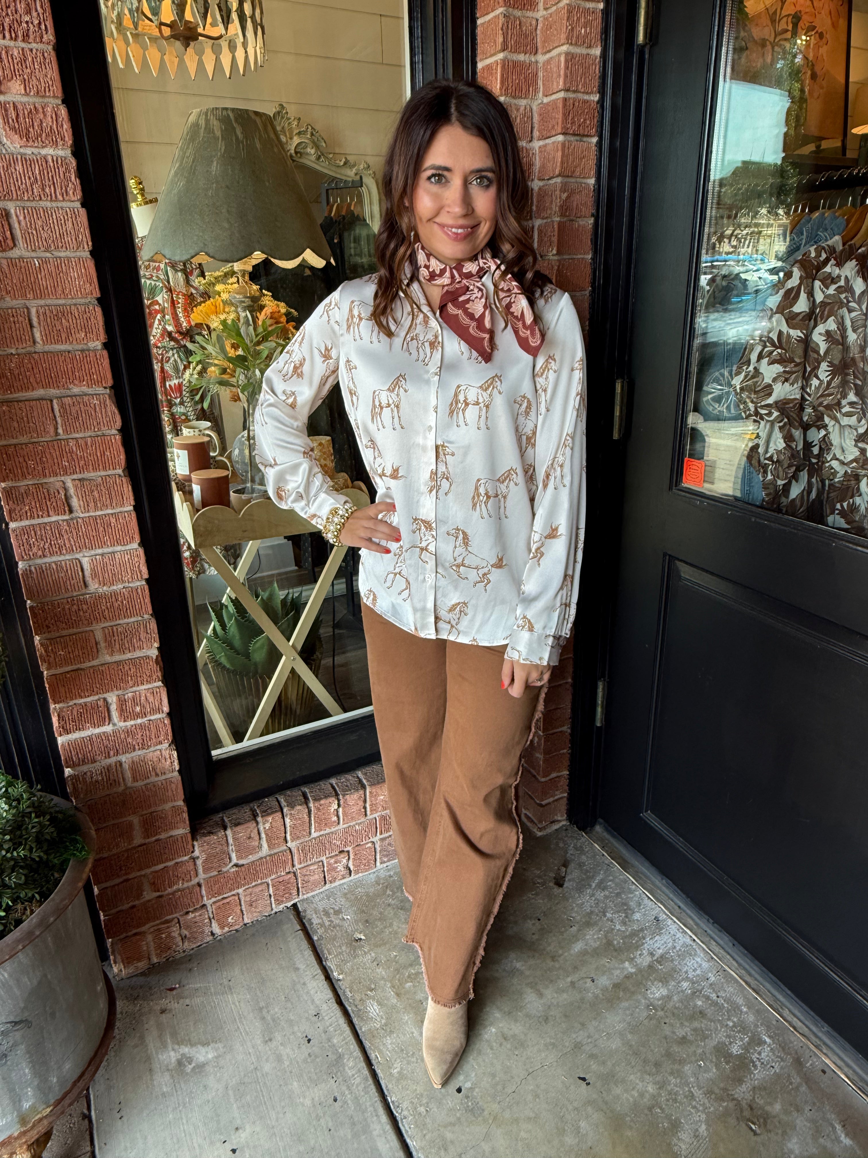 Hailey Horse Button-Down Top