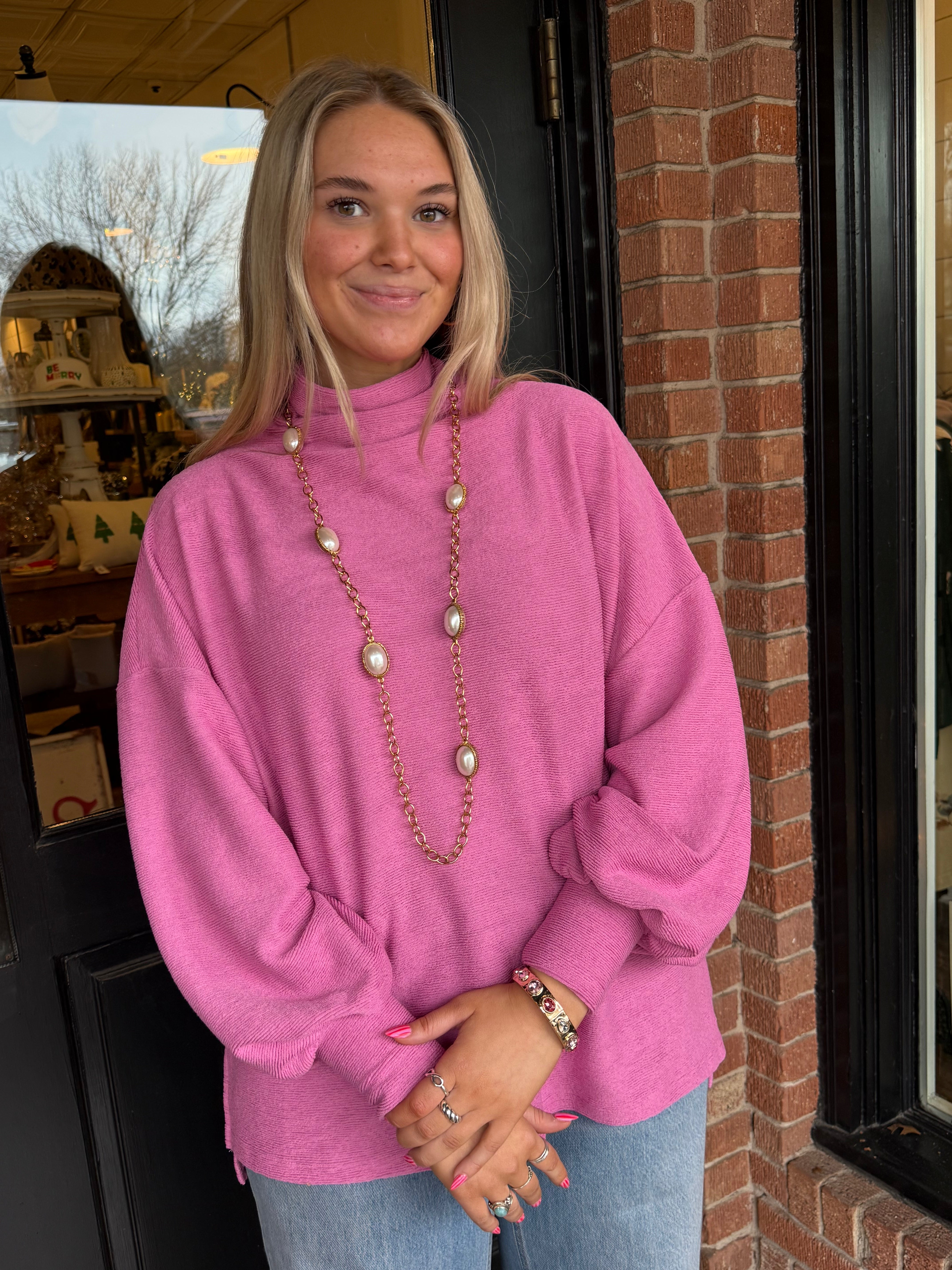Hanna Mock Neck Balloon Sleeve Knit Top