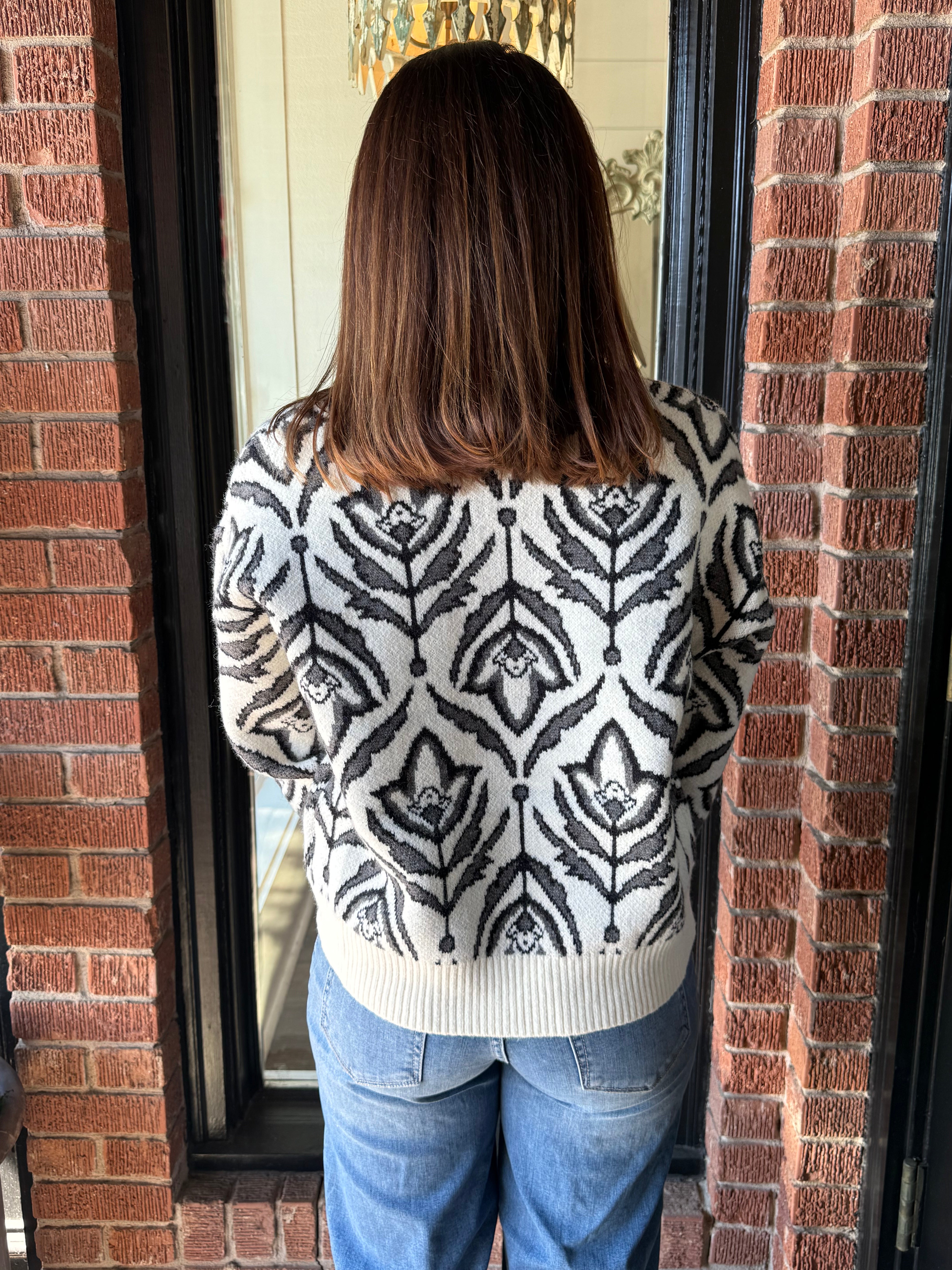 Freshen up your fall wardrobe with the Harper Floral Knit Sweater. This relaxed-fit pullover features an all-over floral knit pattern, adding a subtle pop of texture and style. The drop shoulder long sleeves and ribbed trim at the neckline, cuffs, and hem make it effortlessly cozy and chic—perfect for pairing with jeans, skirts, or layered under a vest.