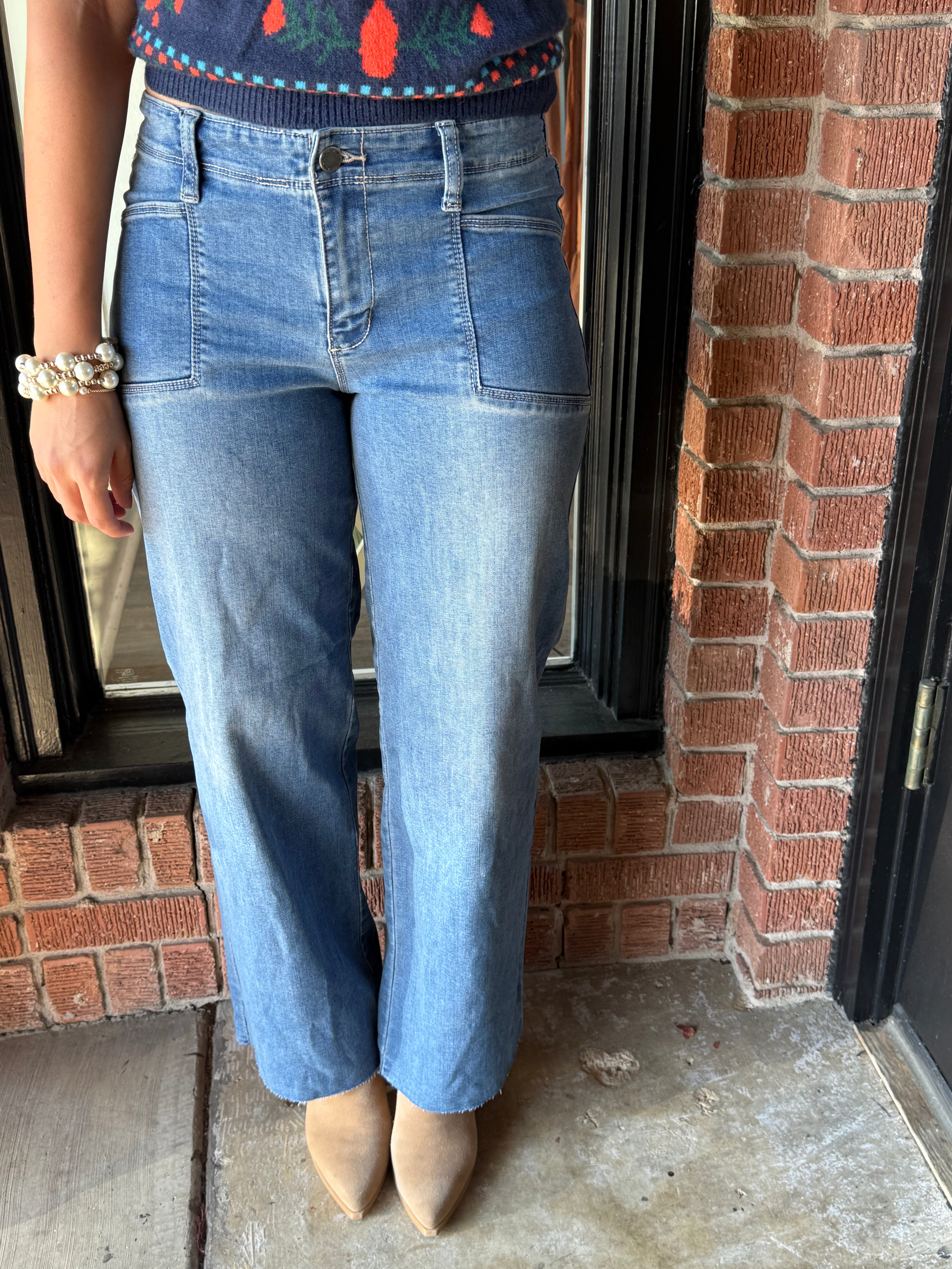 Classic denim with a modern twist. The Heidi Wide Leg Jeans feature a flattering high-rise fit, front pockets, and soft stretch denim that keeps its shape while offering all-day comfort. A versatile wardrobe staple that pairs perfectly with sweaters, blouses, or graphic tees.