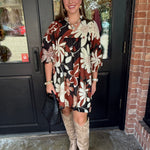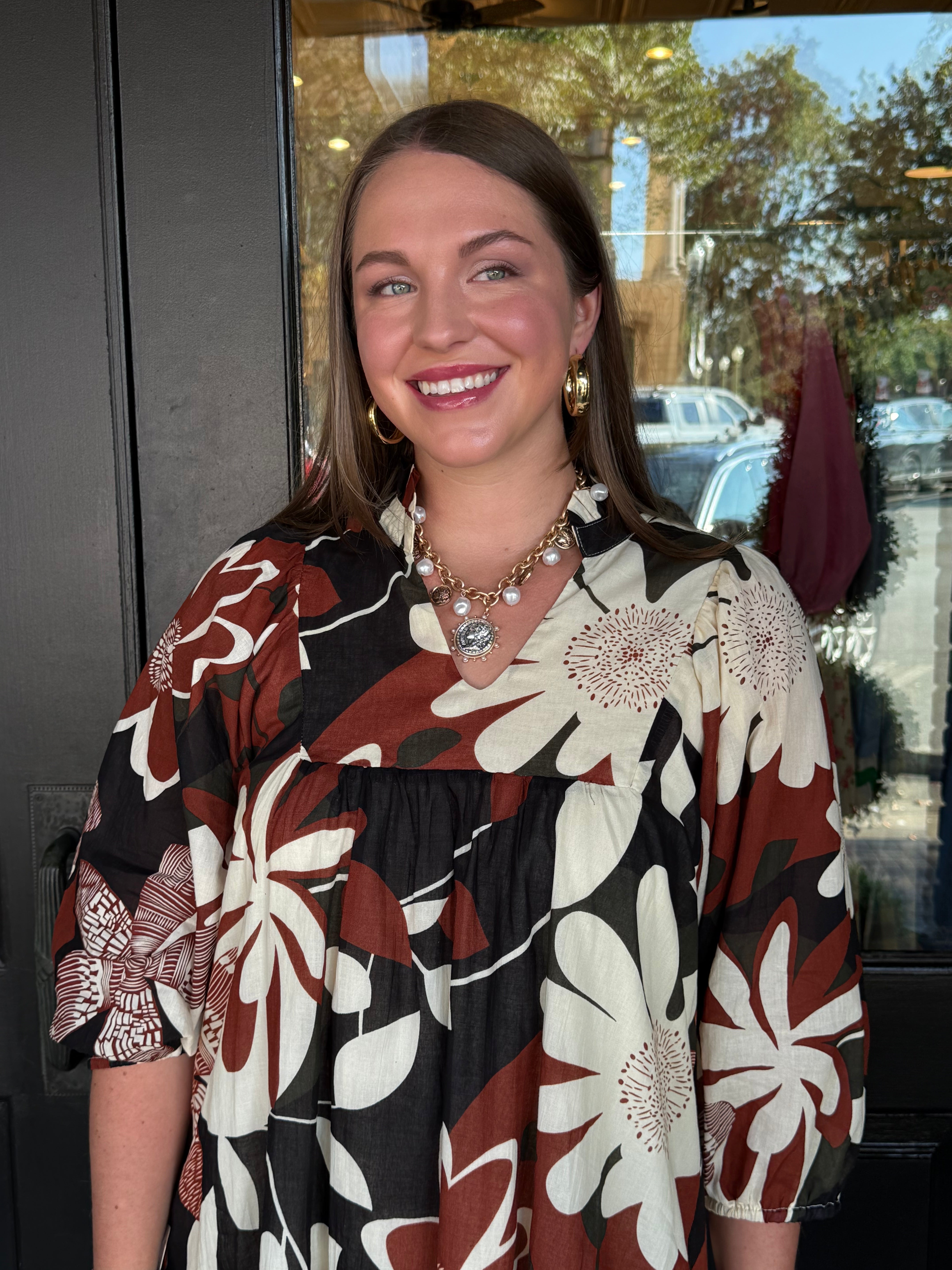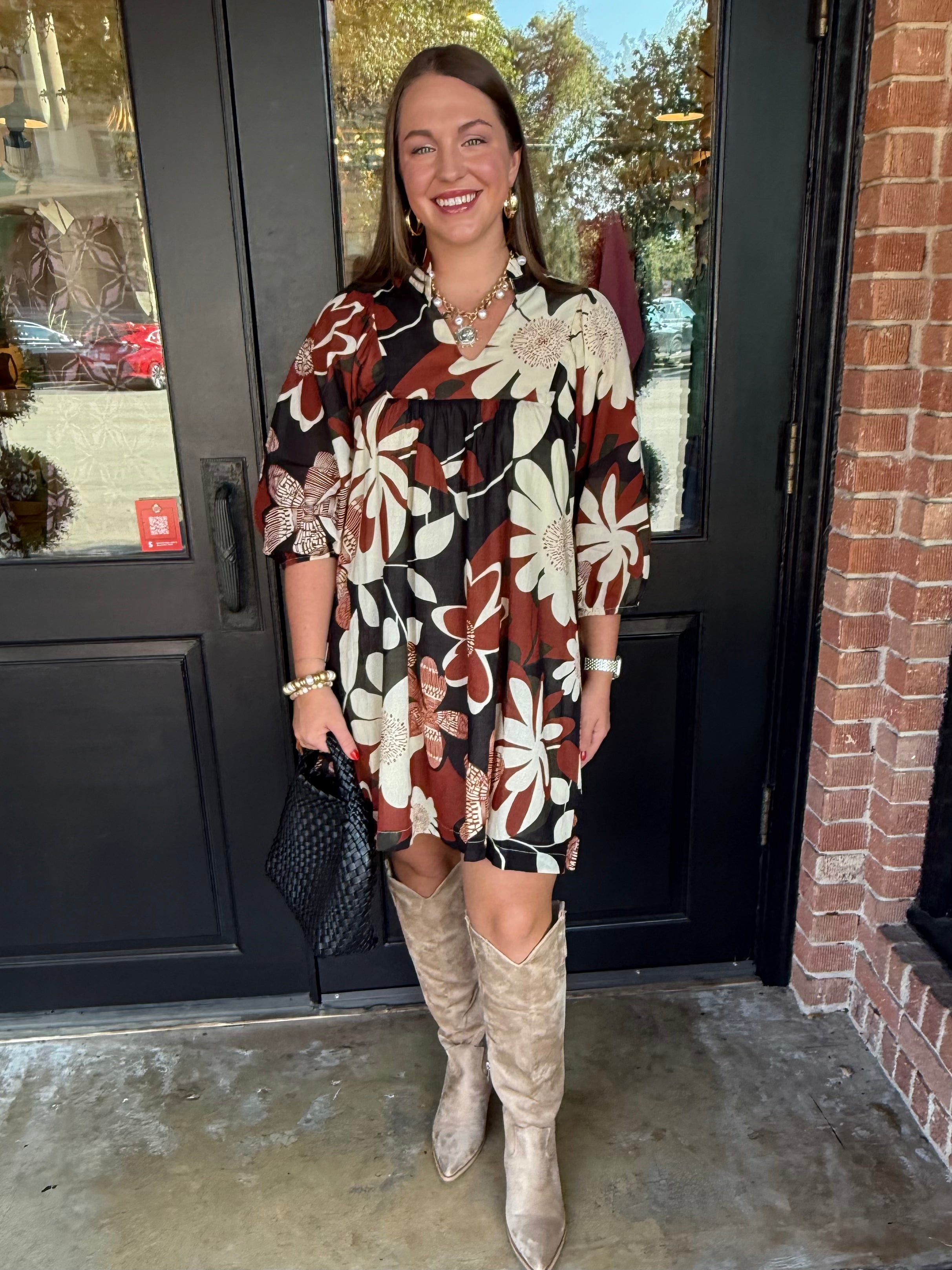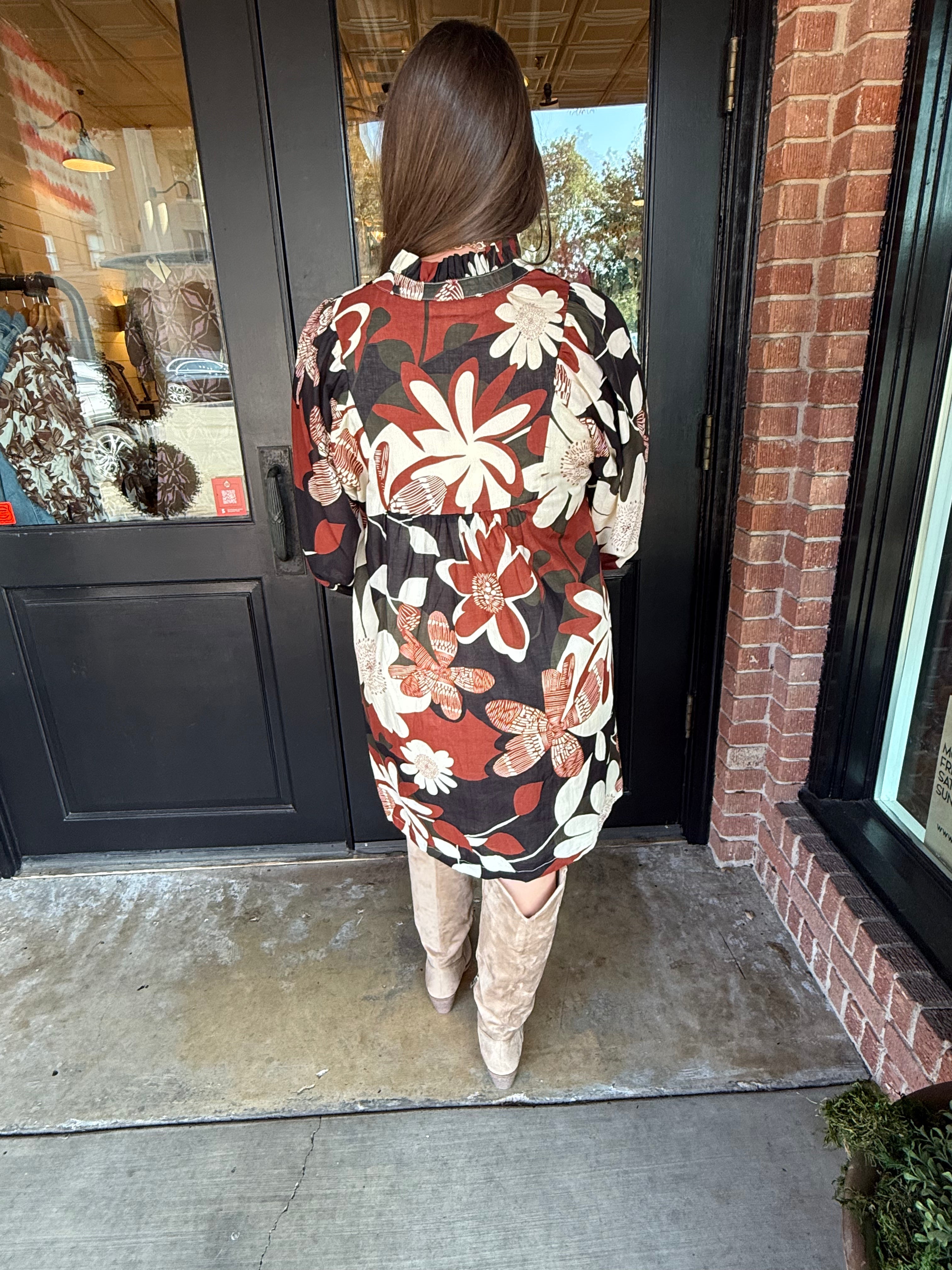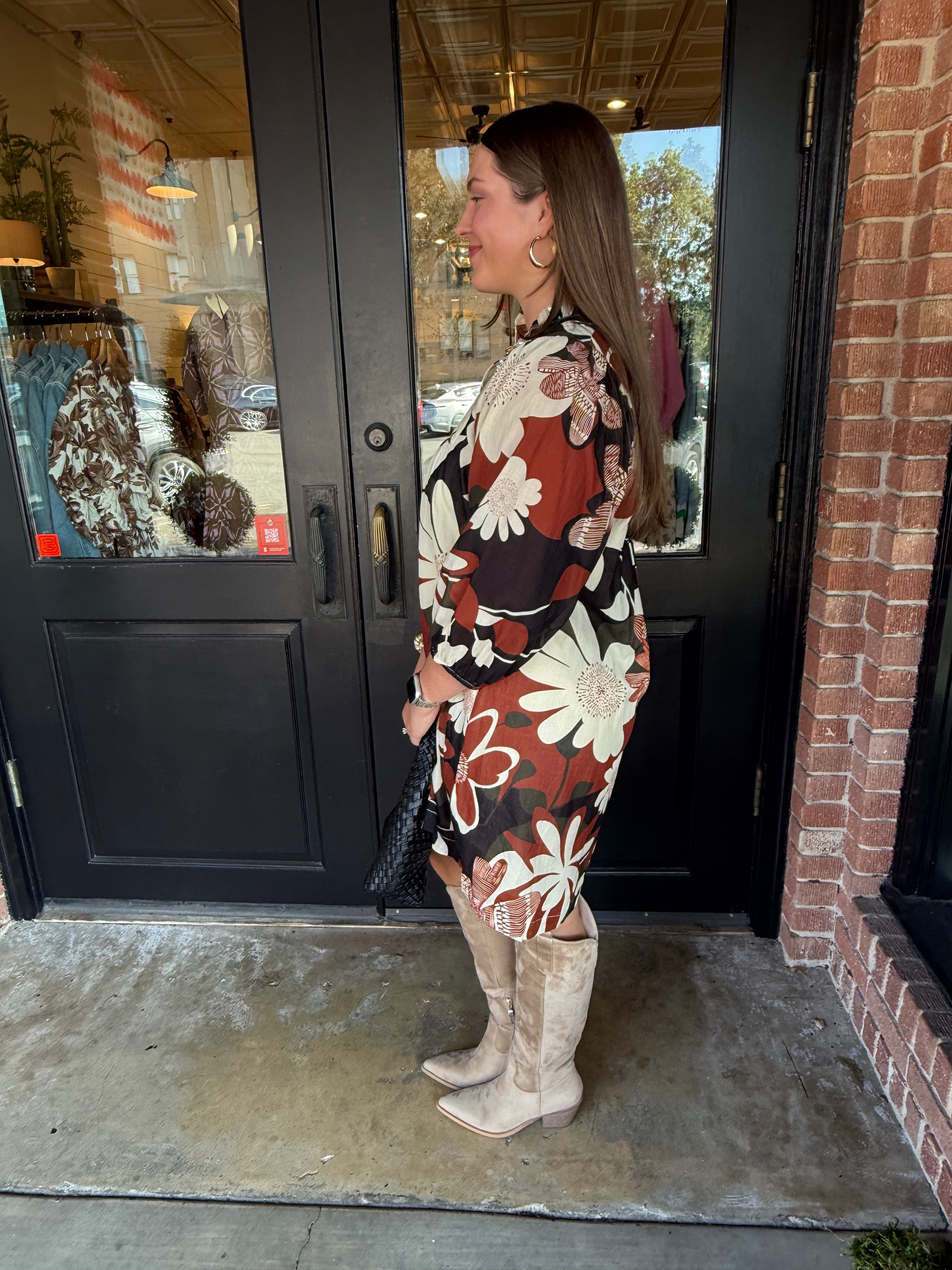 Feminine and effortlessly chic, the Henley Floral Print Dress is a versatile wardrobe favorite. Featuring a flattering A-line silhouette, a split high neckline, and 3/4 puff sleeves, this dress combines classic style with modern details. Perfect for brunches, casual outings, or layering with boots for cooler days, it’s a go-to piece for everyday elegance.