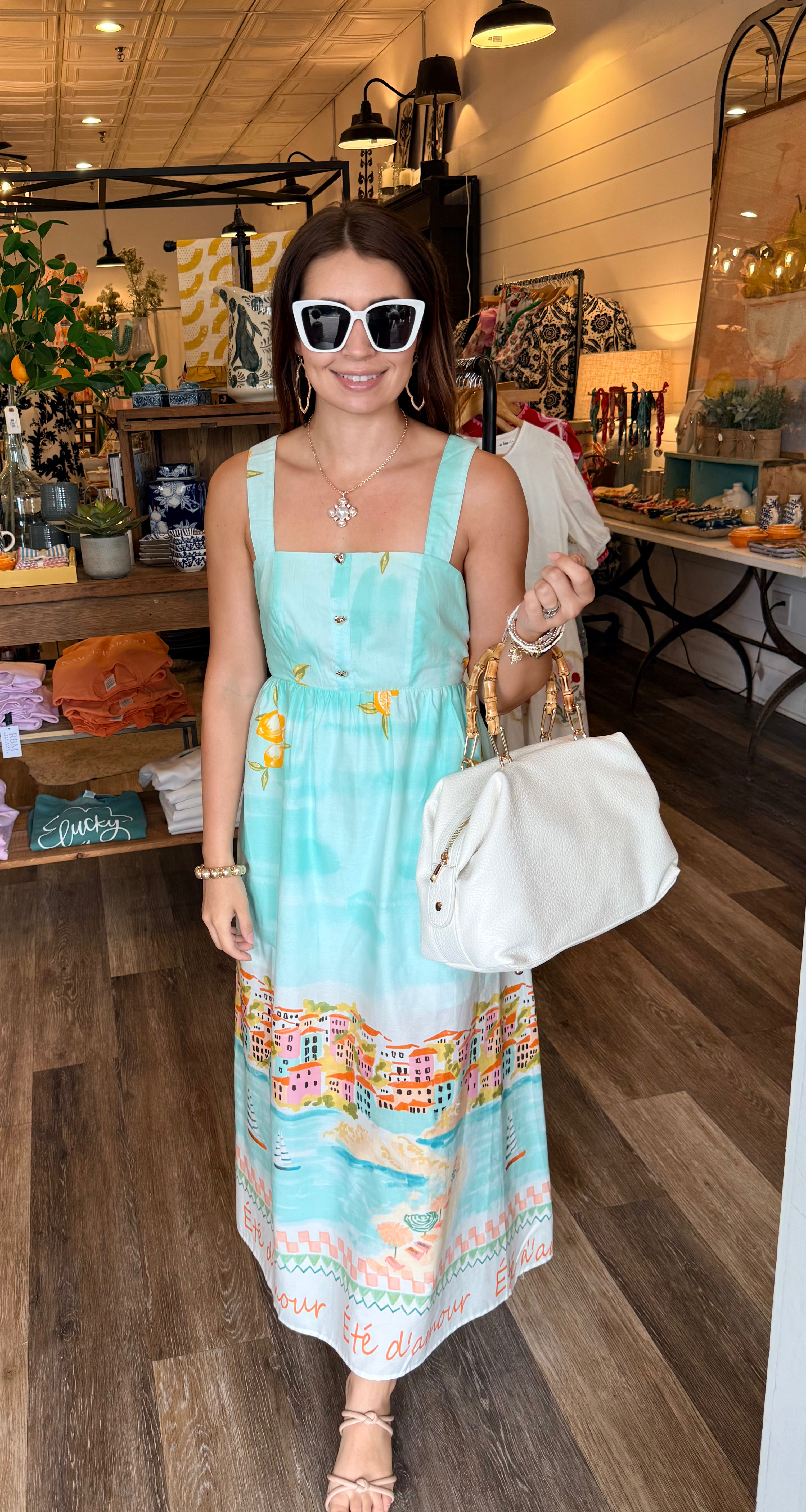Beautifully effortless and full of personality, the Isla Landscape Print Midi Dress is an instant favorite for sunny days, weekend getaways, and soirées by the water. Featuring an exclusive scenic print you won’t find anywhere else, this dress is all about thoughtful details and easy style.