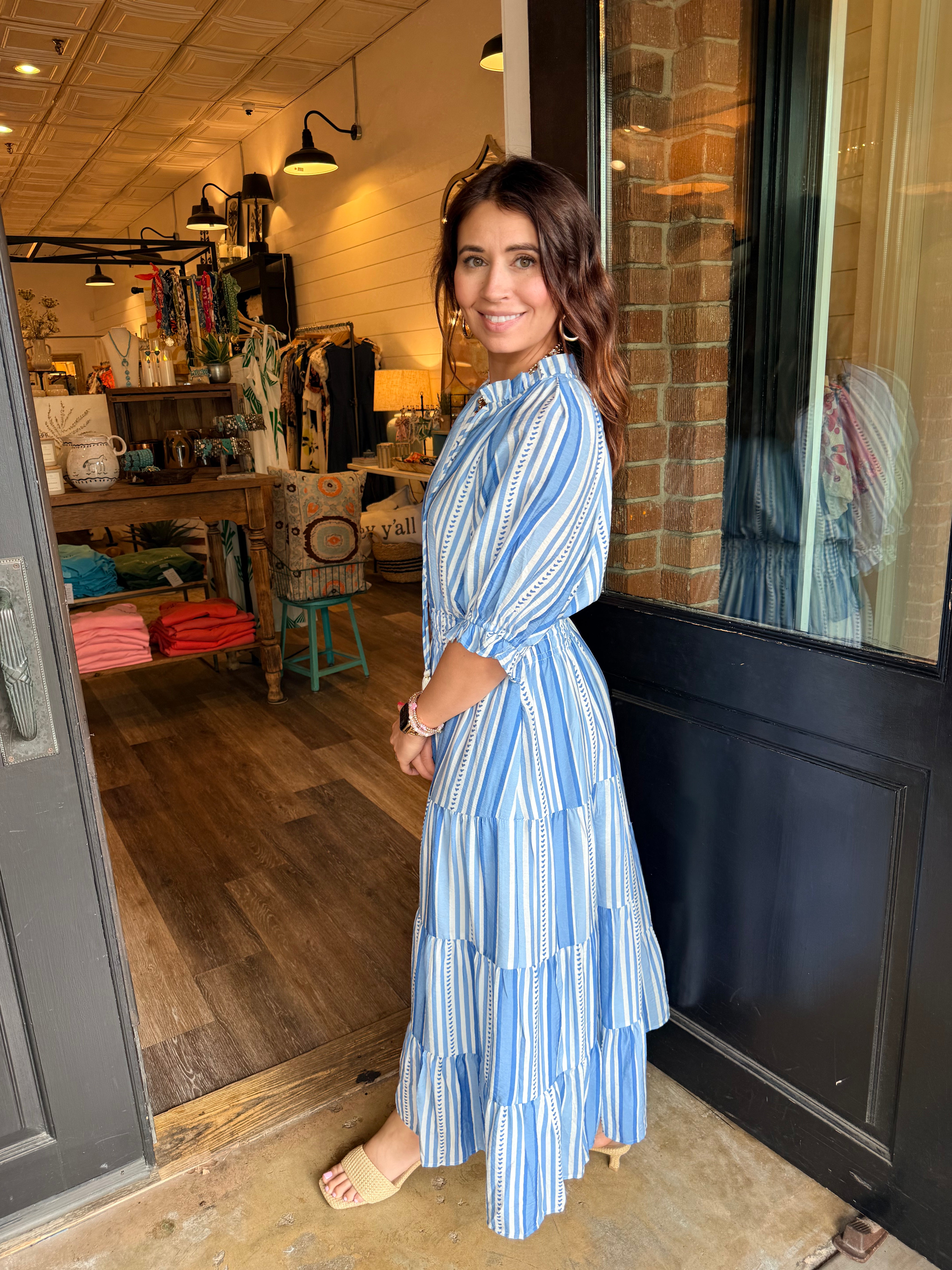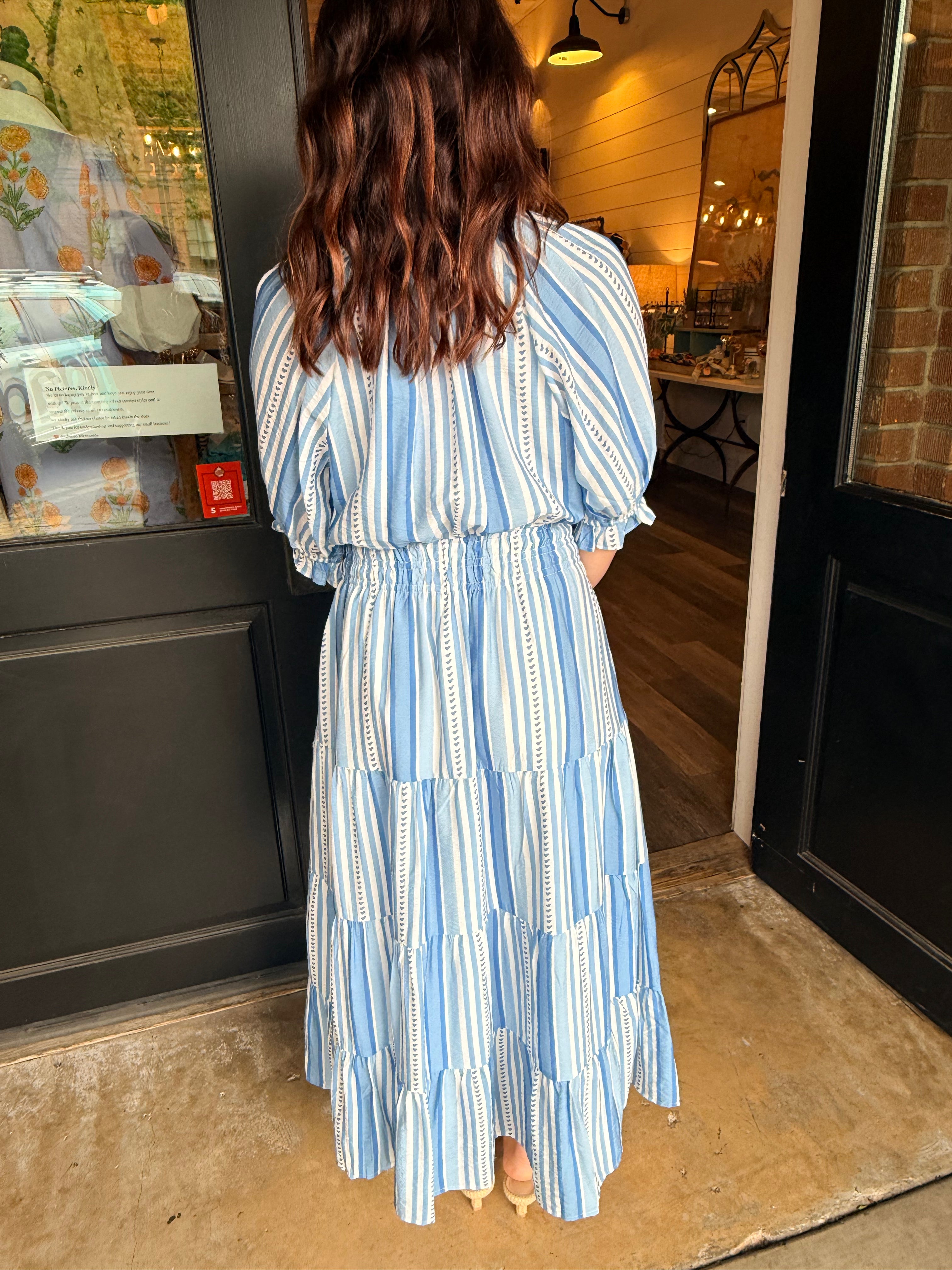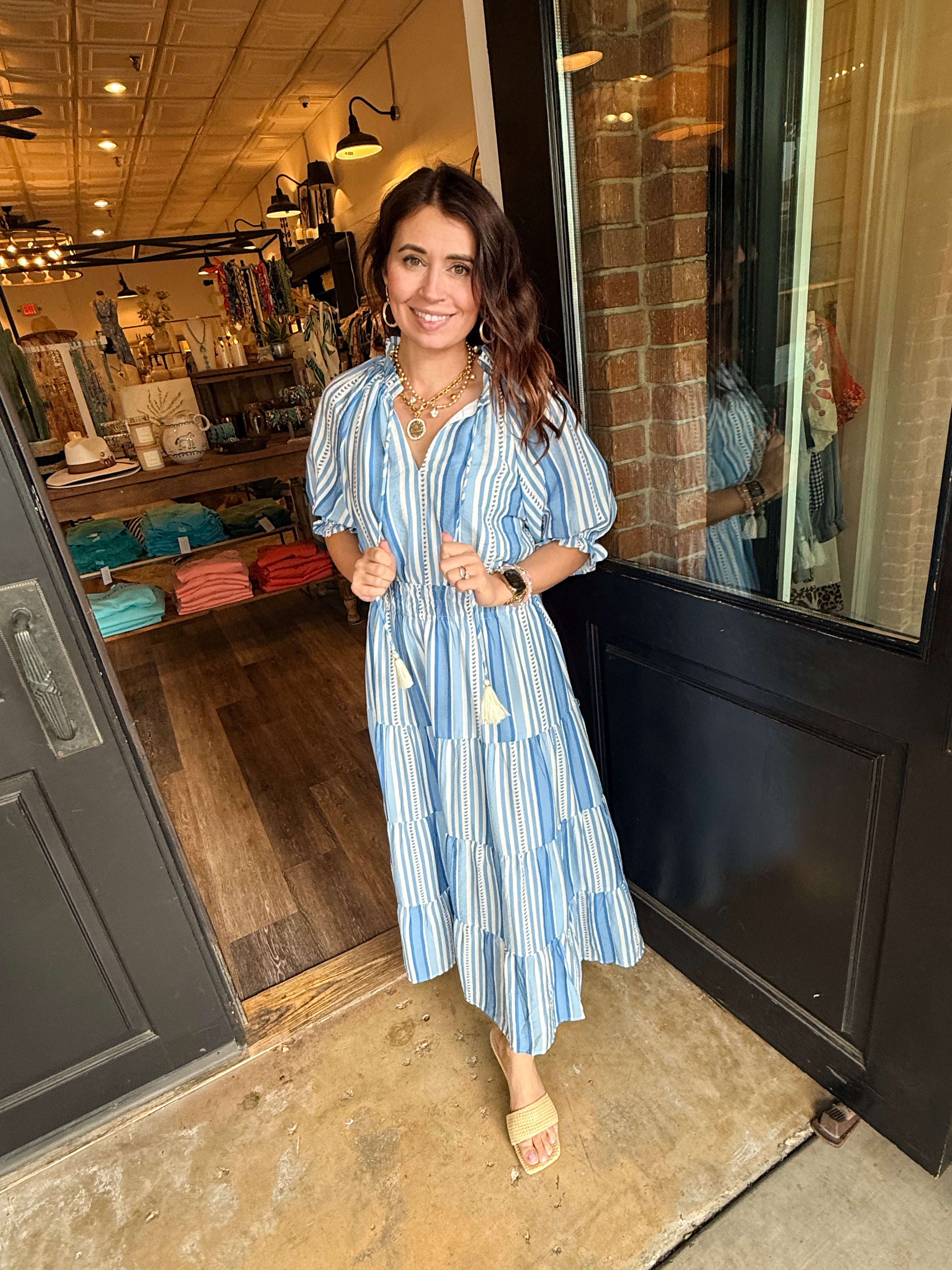 Classic stripes with a soft, feminine feel. The Jaimie dress is effortlessly polished with just the right amount of detail.