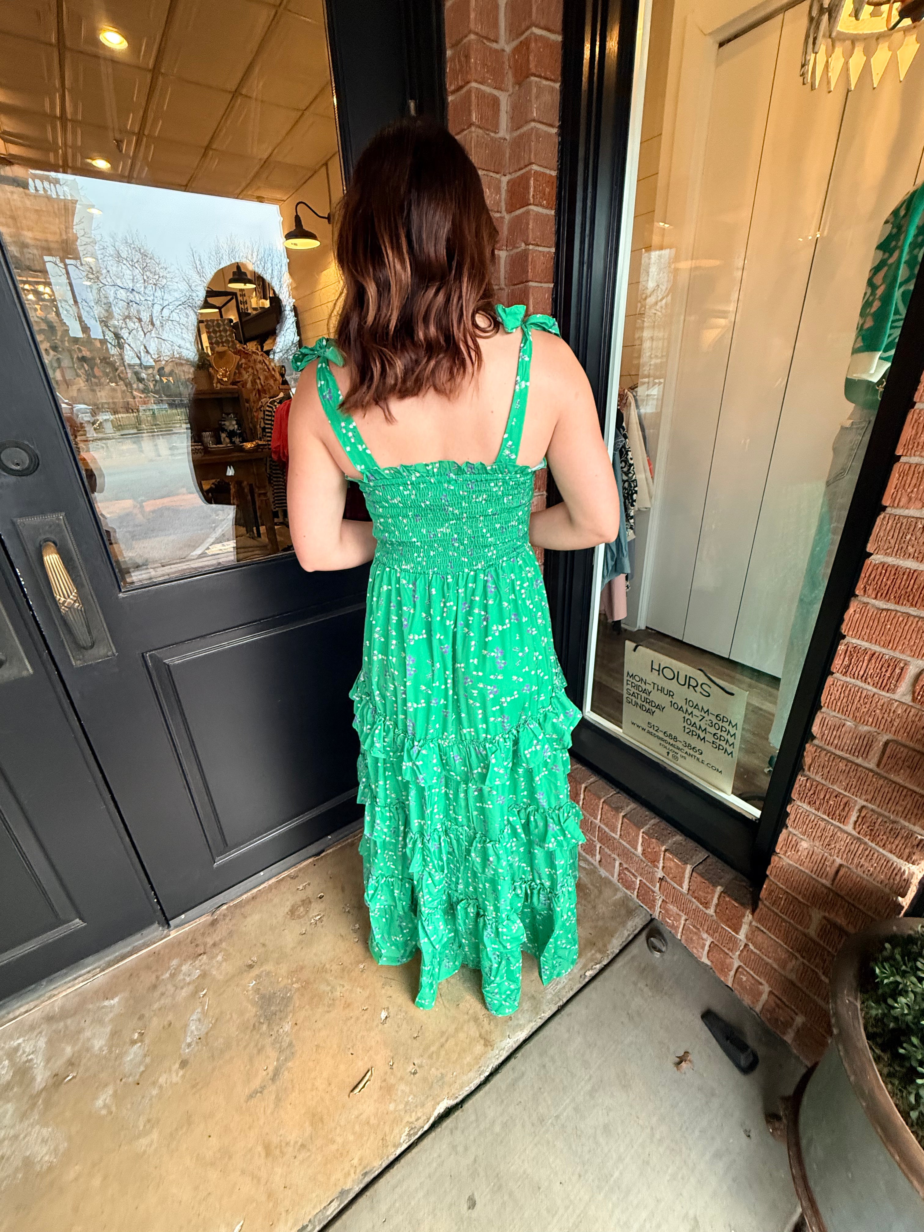 Romantic and effortlessly feminine, the Jamie Floral Printed Tiered Ruffled Maxi Dress is made to float with every step. Featuring a delicate floral print, this maxi dress is designed with self-tie shoulder straps and a smocked bodice that creates a flattering, comfortable fit. Cascading tiered ruffles add beautiful movement and volume, while the subtle high-low hemline gives it a soft, whimsical finish. Perfect for garden parties, special occasions, or sunny days when you want to feel extra pretty.