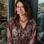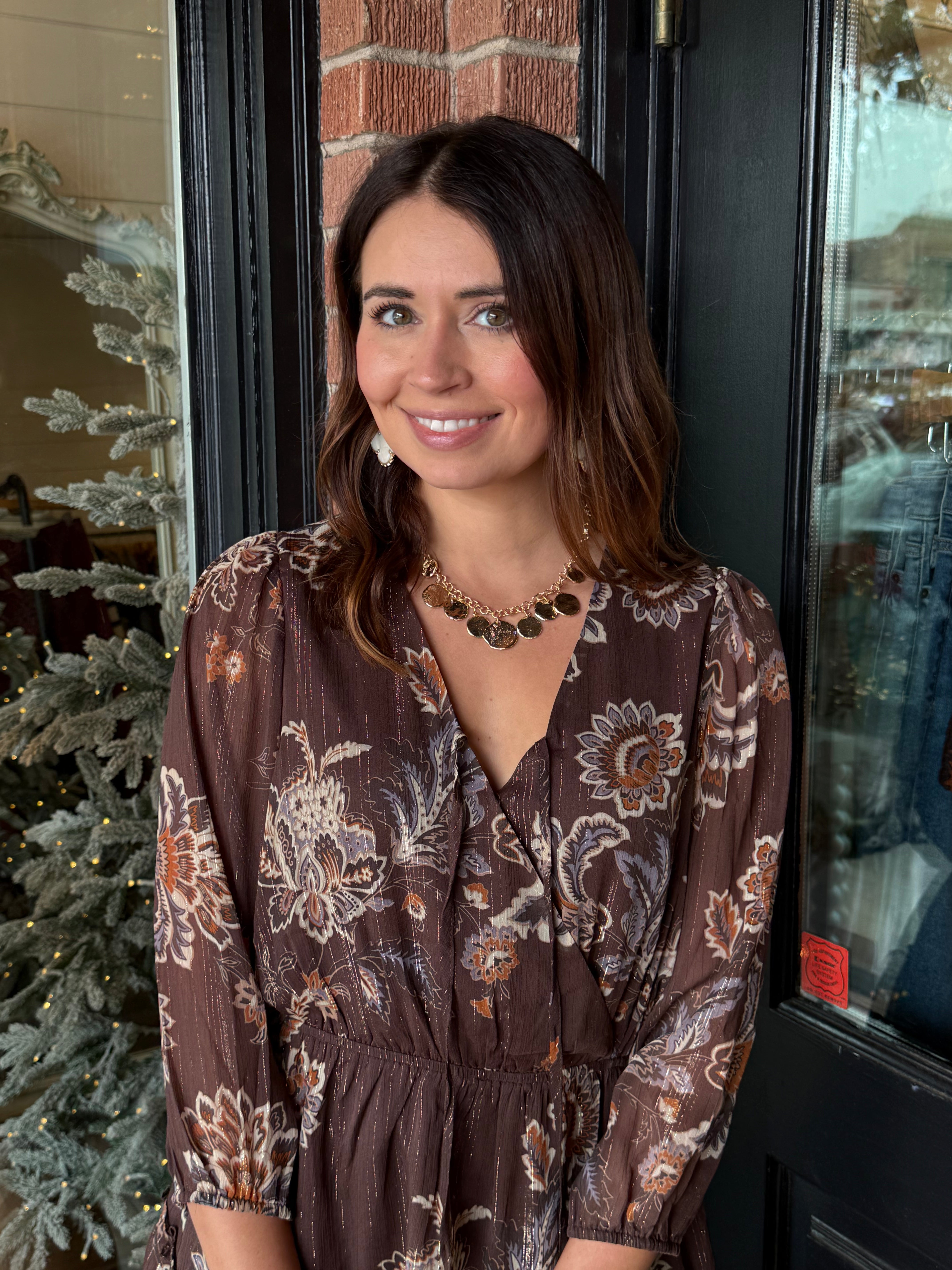 Playful and modern, the Jana Floral Dress combines a bold geometric-floral print with a flattering, feminine silhouette. Designed with soft shimmer accents and effortless movement, it transitions beautifully from day to night.