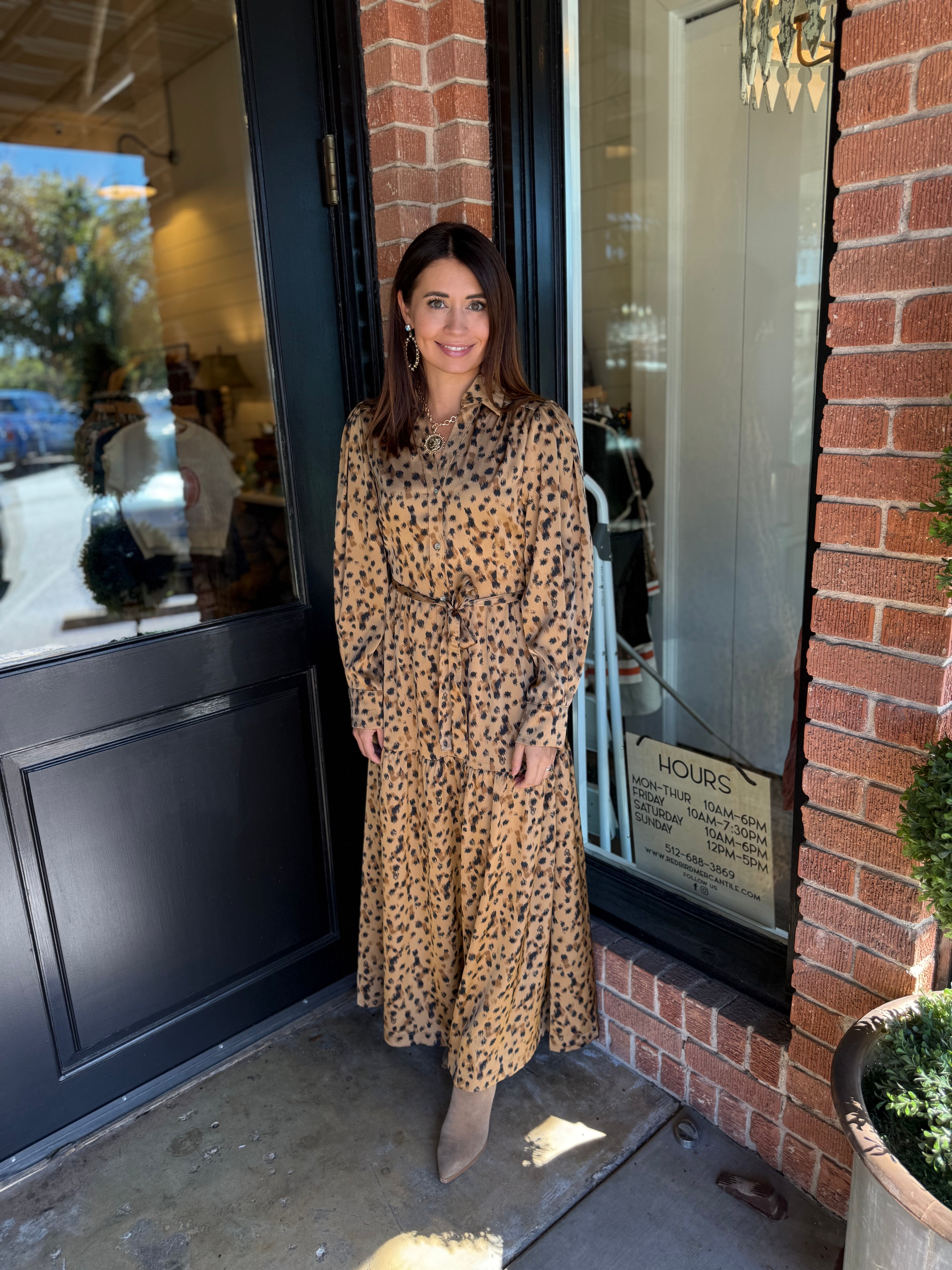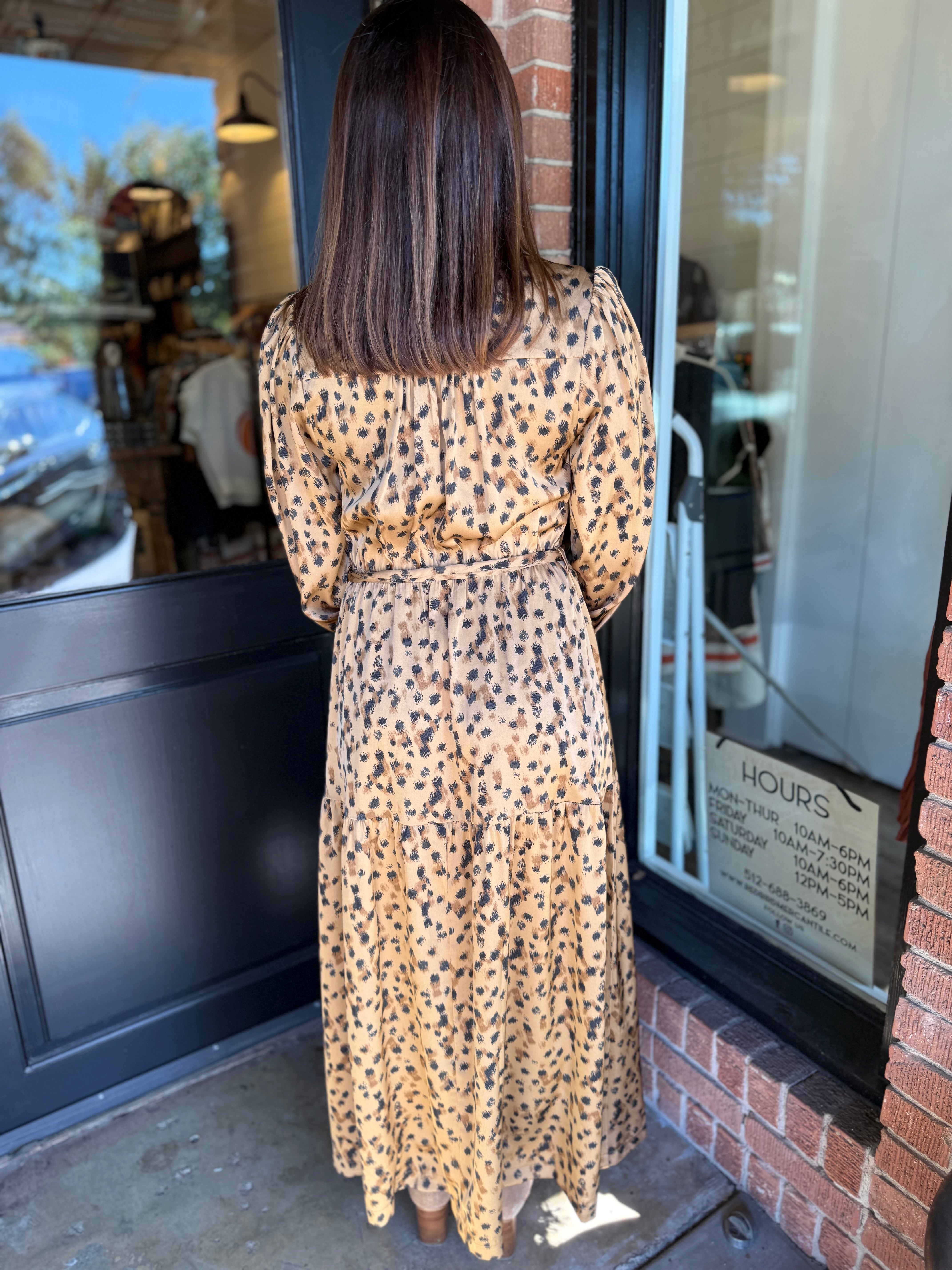 Turn heads in this sophisticated take on a classic print. The Jasmine Leopard Maxi Dress features a timeless button-down design and flattering tie waist for the perfect fit. Its soft, lightweight fabric flows beautifully for an effortlessly chic look from day to night.
