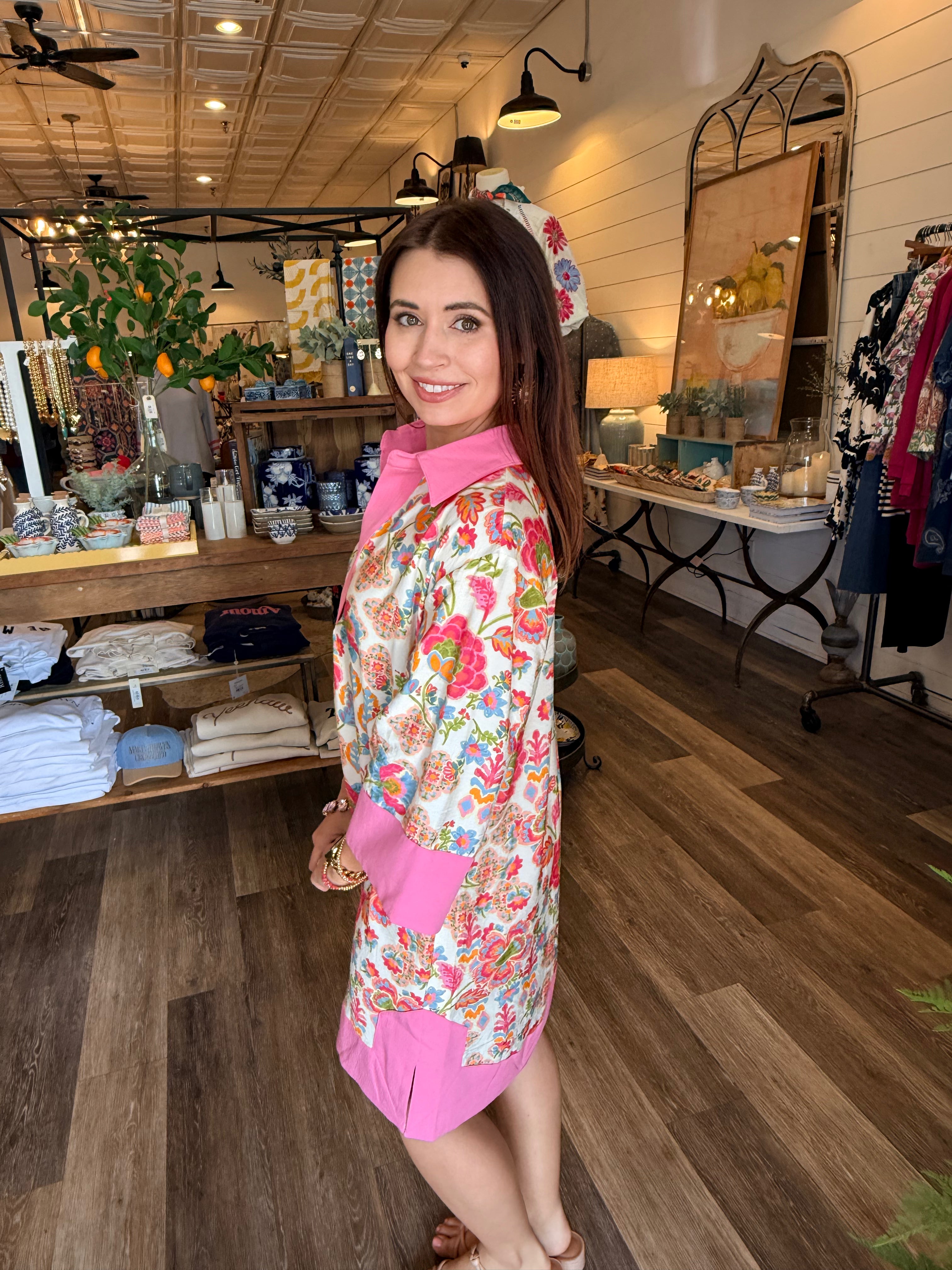 Jena Pink Floral Shirt Dress