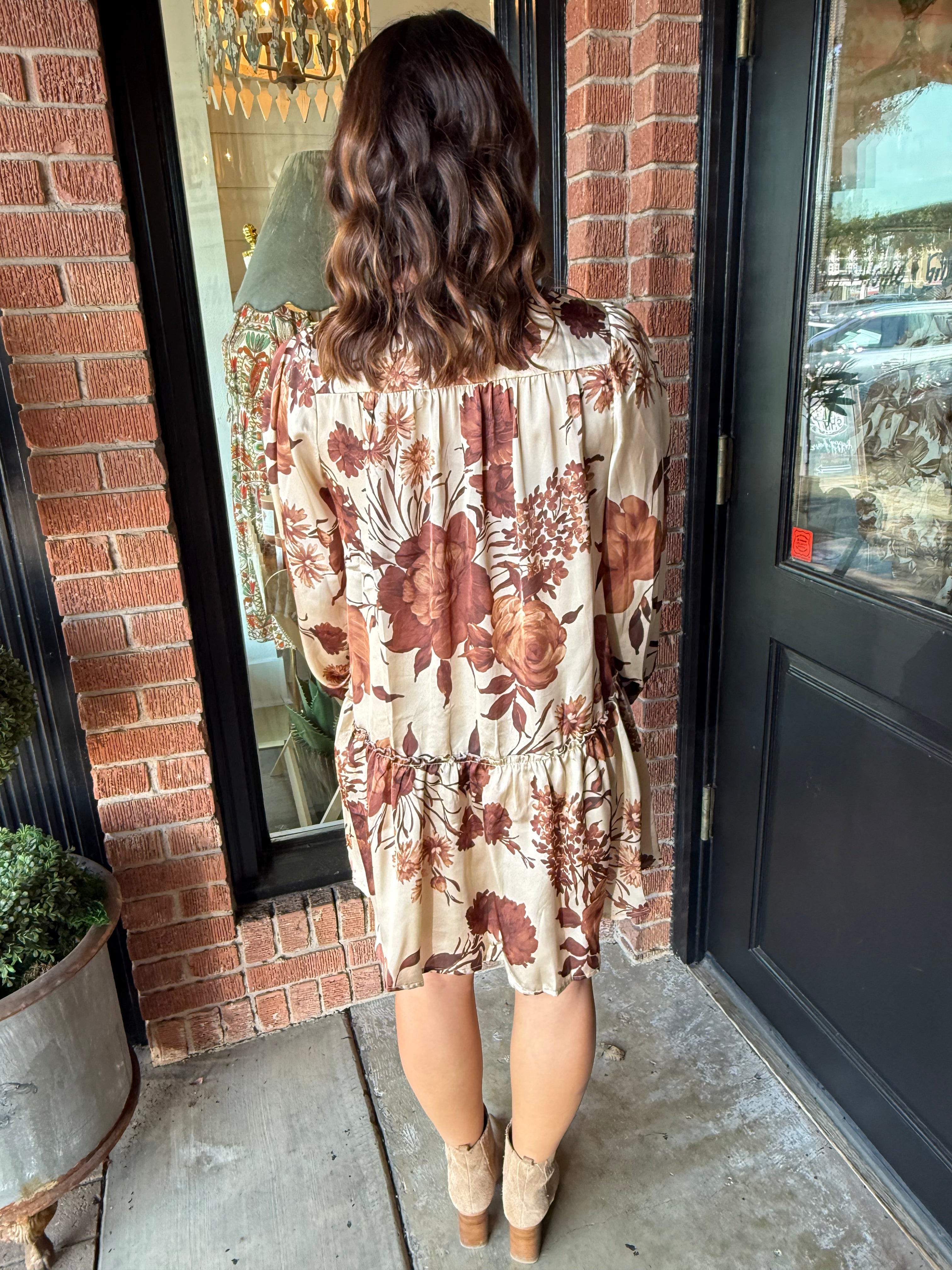 Brown floral print dress