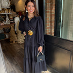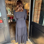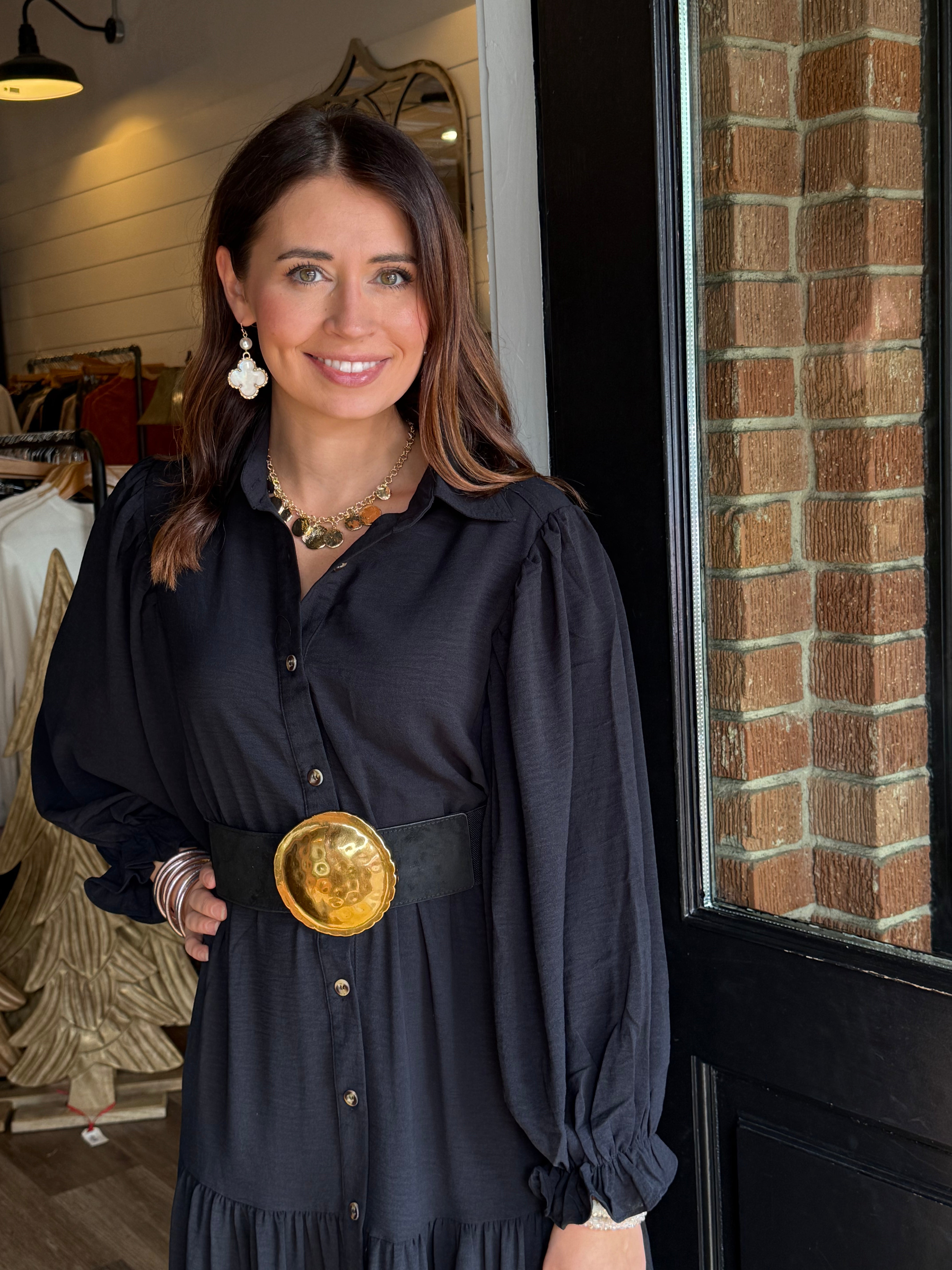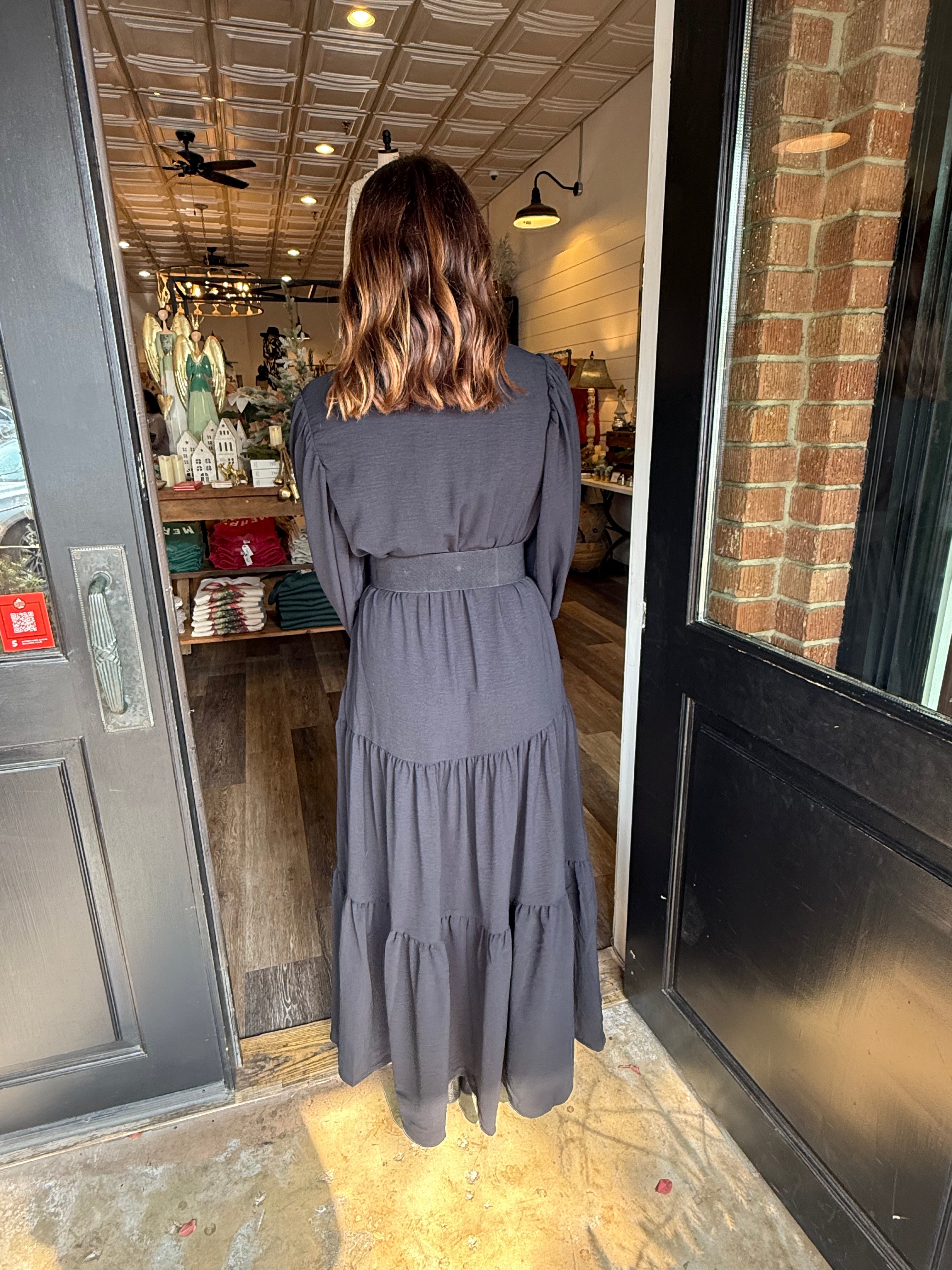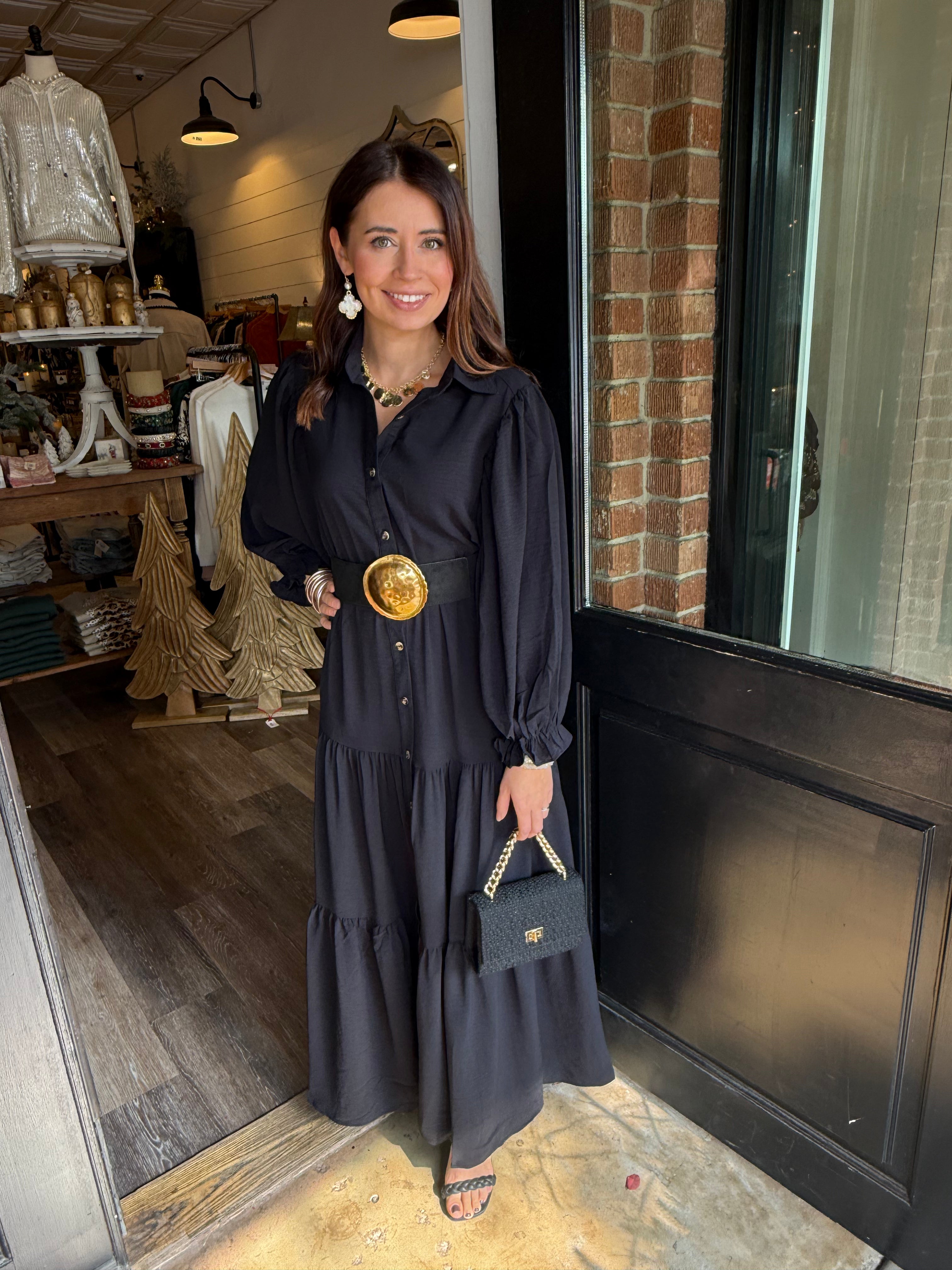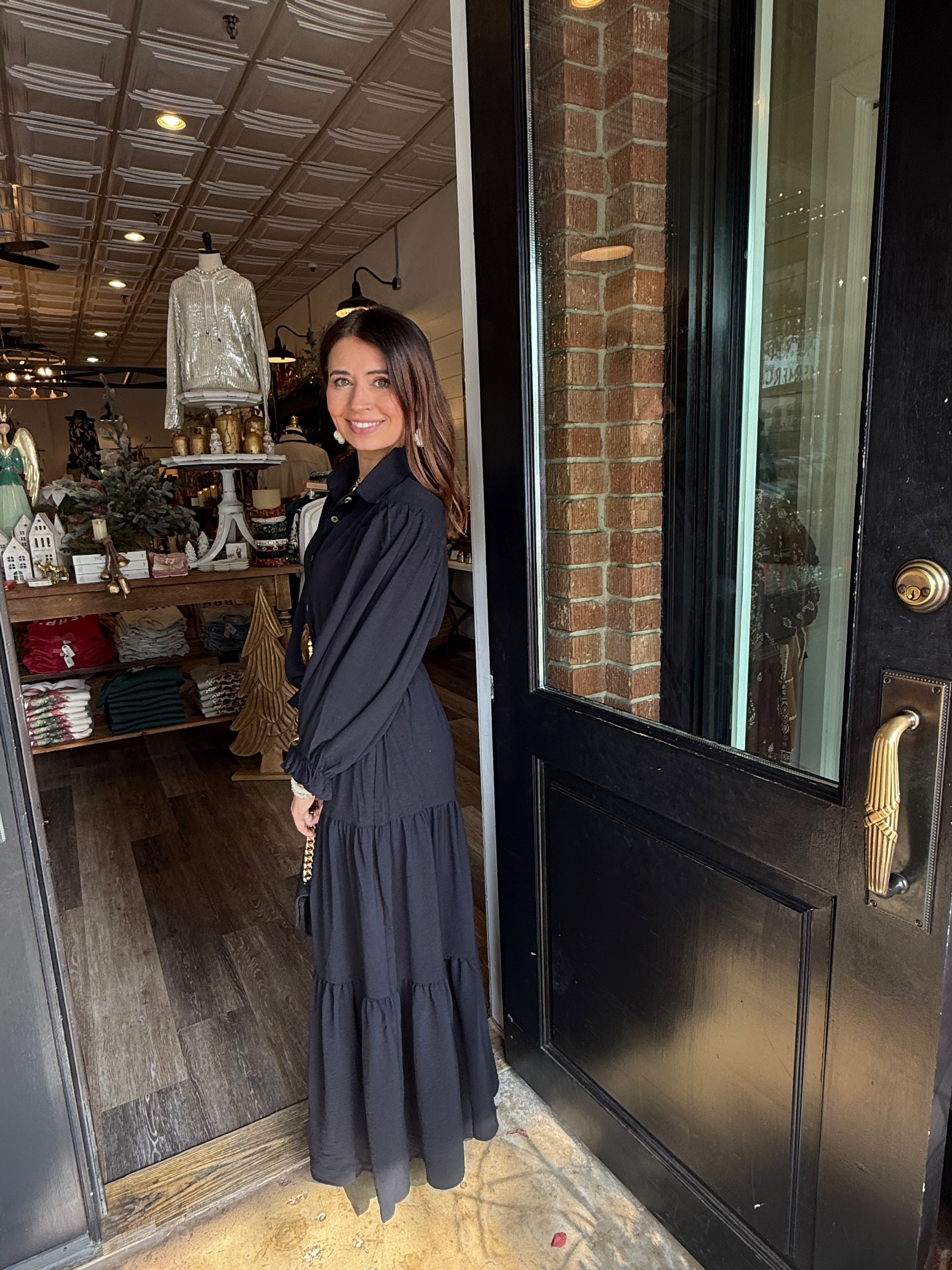 Effortless, classic, and so easy to wear. The Jennifer Maxi features a full button-down front, a structured collar, side pockets, and a tiered silhouette that moves beautifully. Made in a soft, stretchy fabric blend, this piece transitions from everyday errands to holiday gatherings with ease.