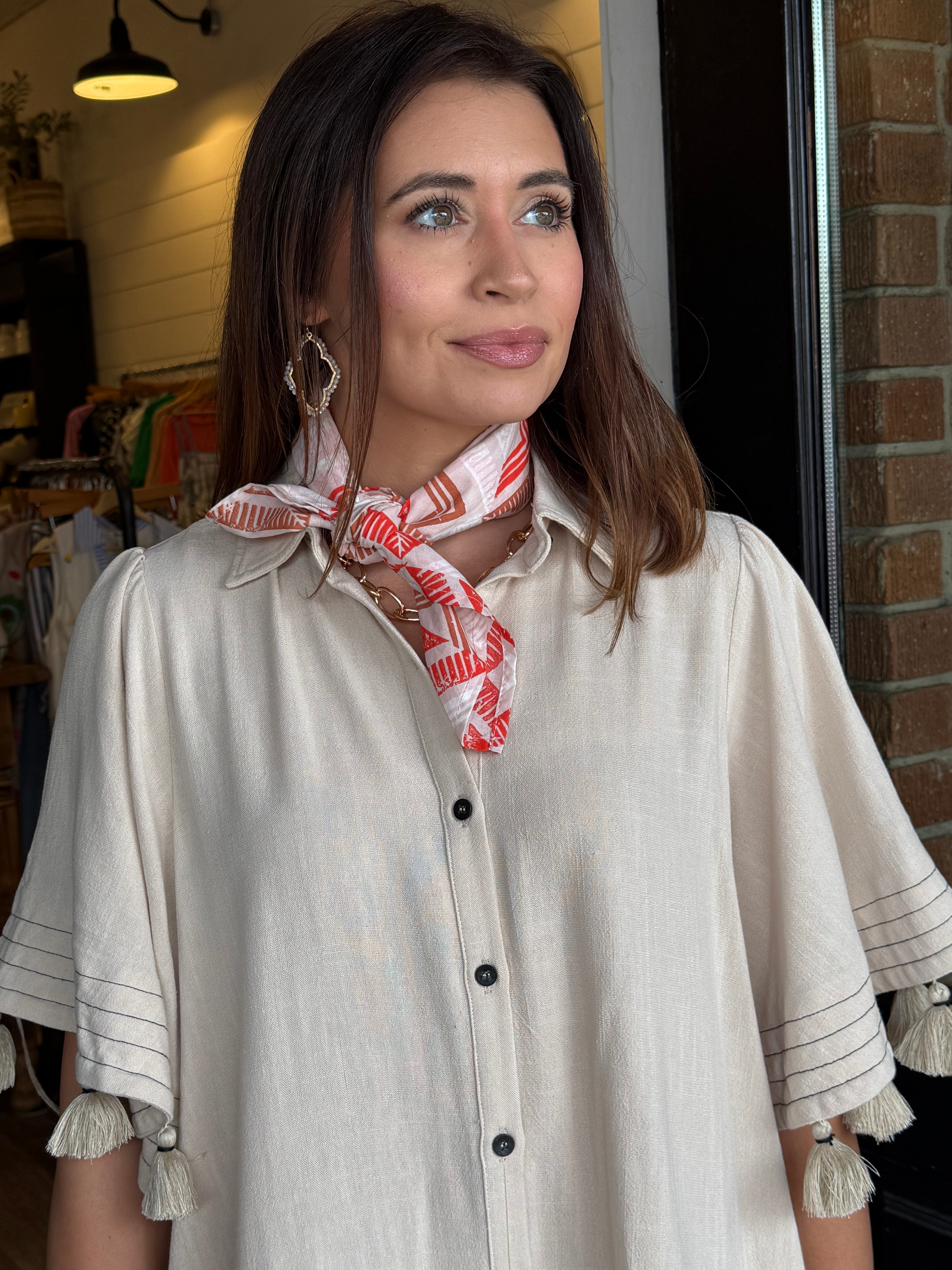 #RedBirdMercantile #GeorgetownTX #JudeDress #TasselTrim #ShirtDressStyle #RelaxedFit #LightweightLayers #EffortlessChic #TexasBoutique #WomensStyle #GTX_DGA #visitgeorgetowntx