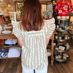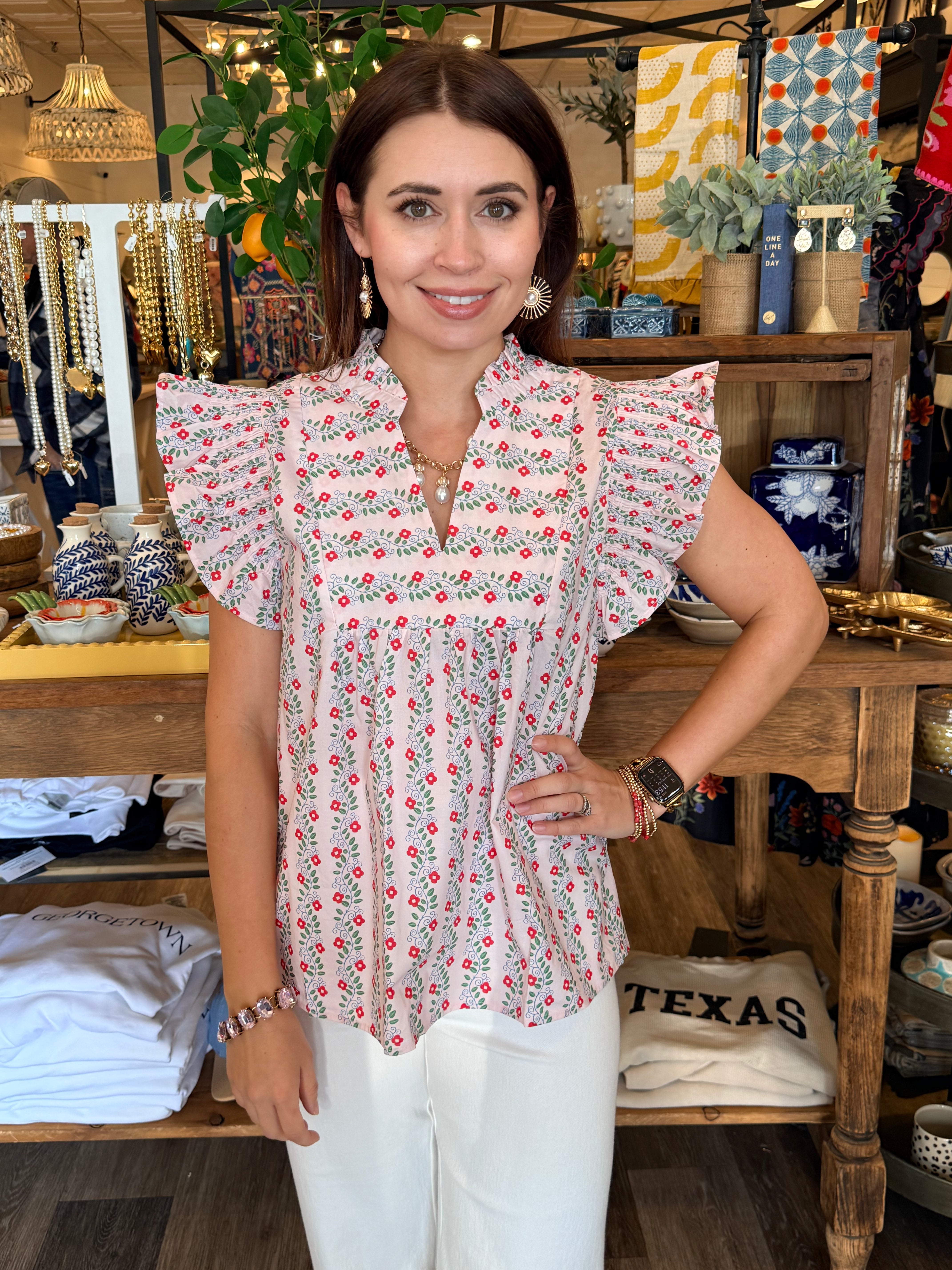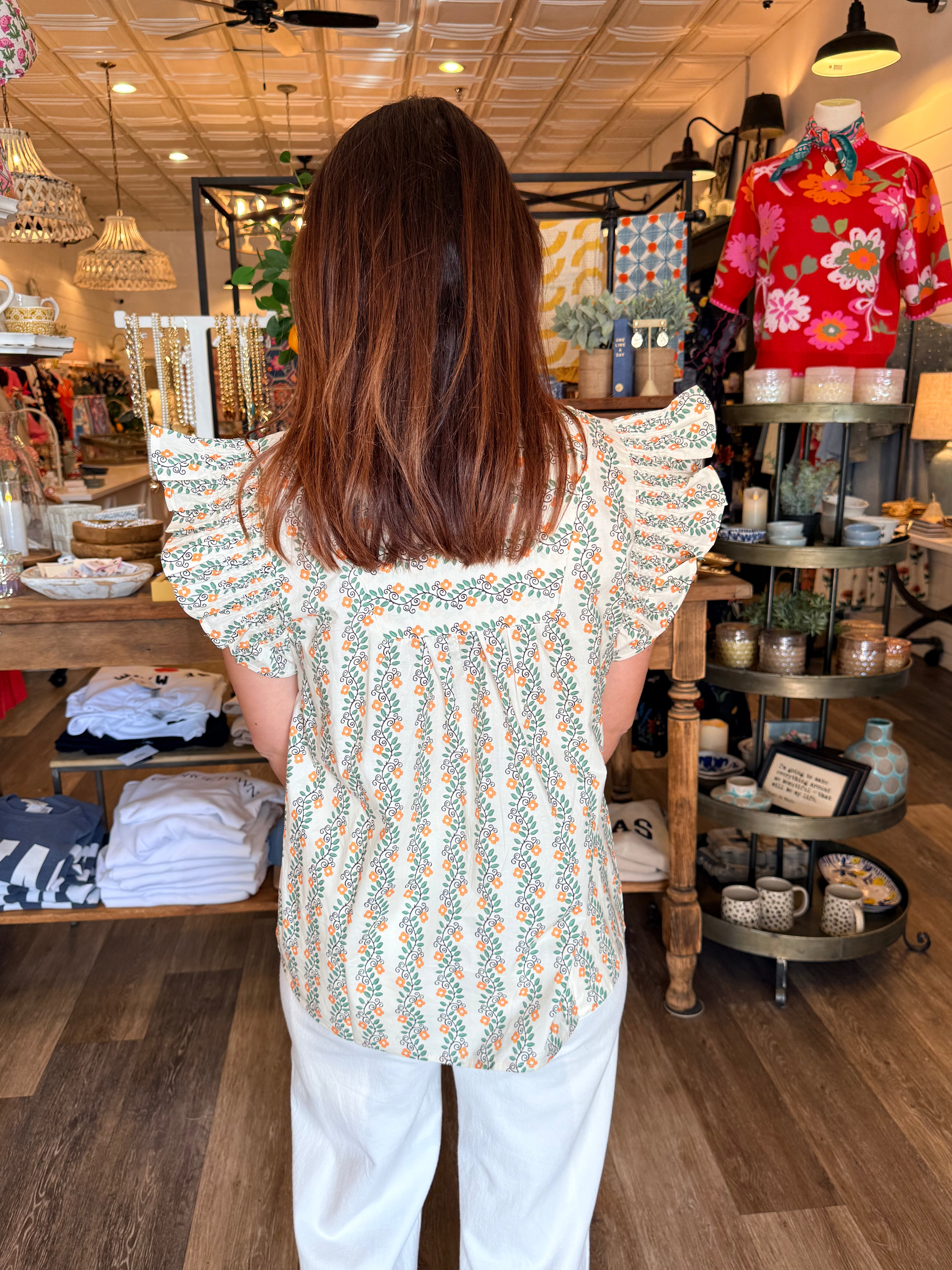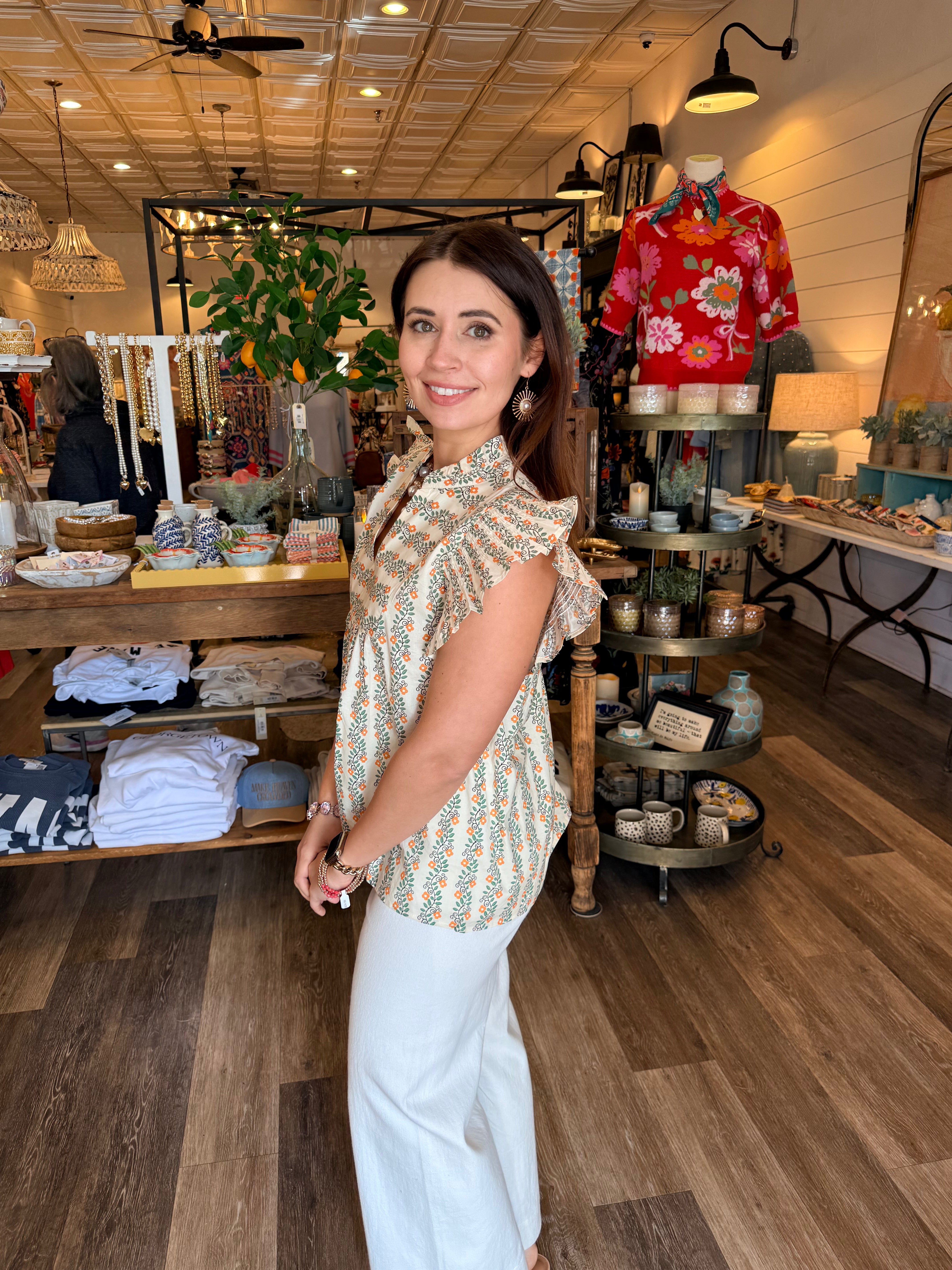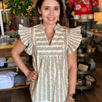 Soft, feminine, and easy to wear — the Juliet Smocked Top is one of those pieces that instantly pulls an outfit together. Featuring a flattering V-neckline, a delicate floral print, and smocked ruffle sleeves, this top is perfect for everyday wear with just the right amount of detail.