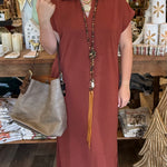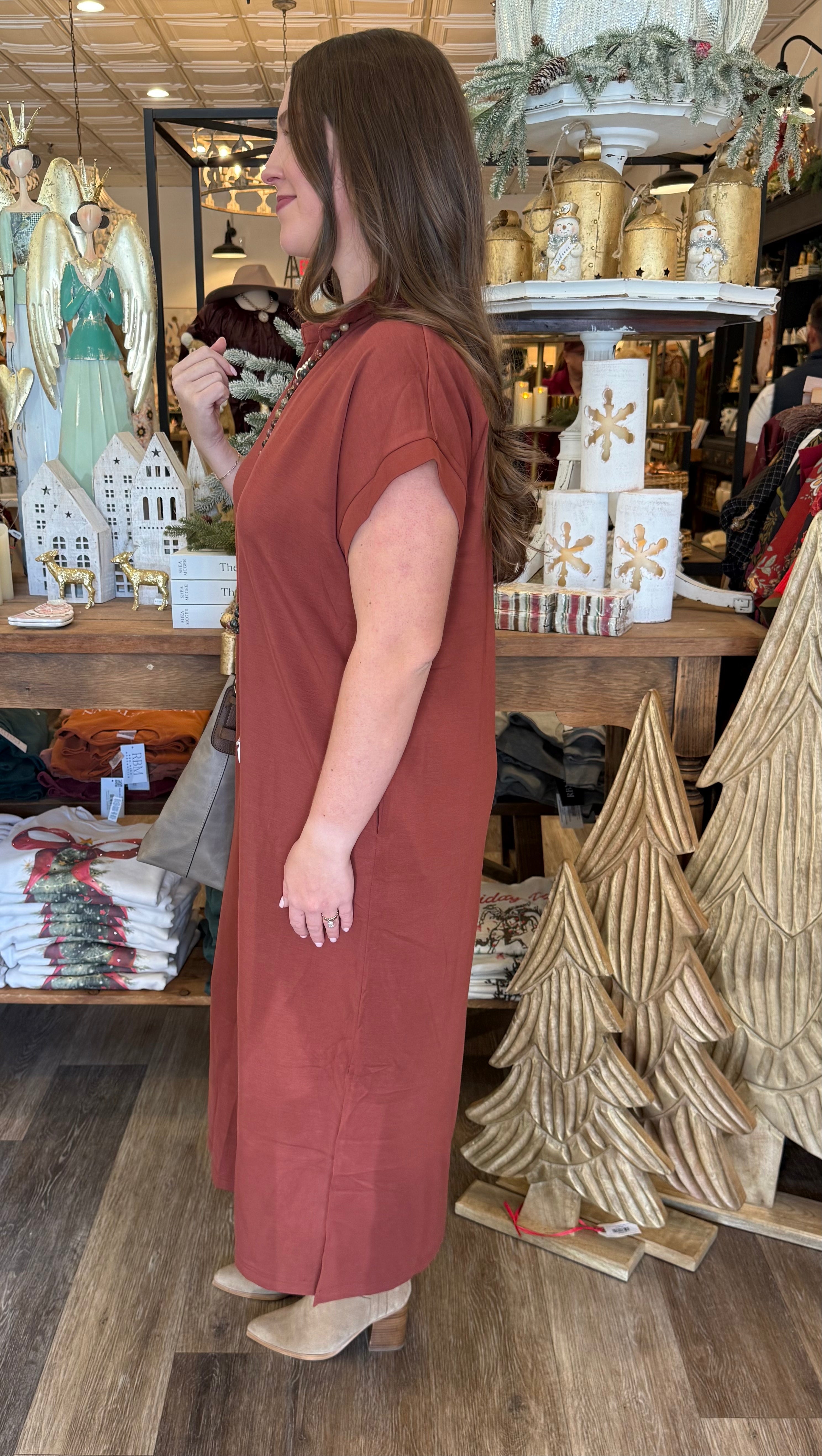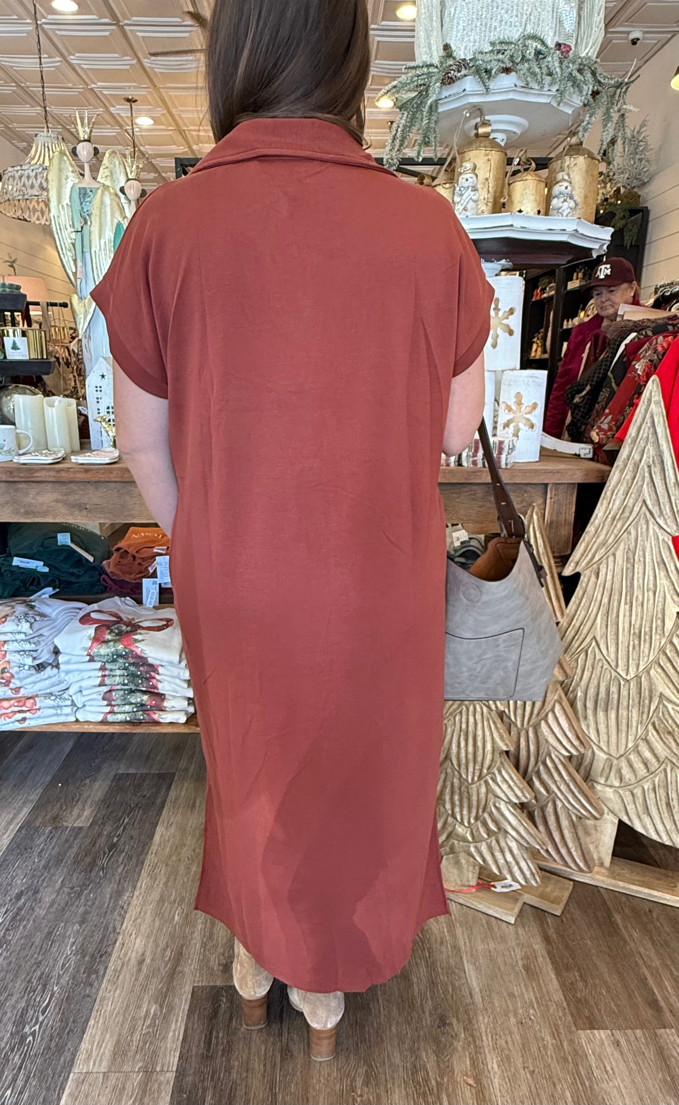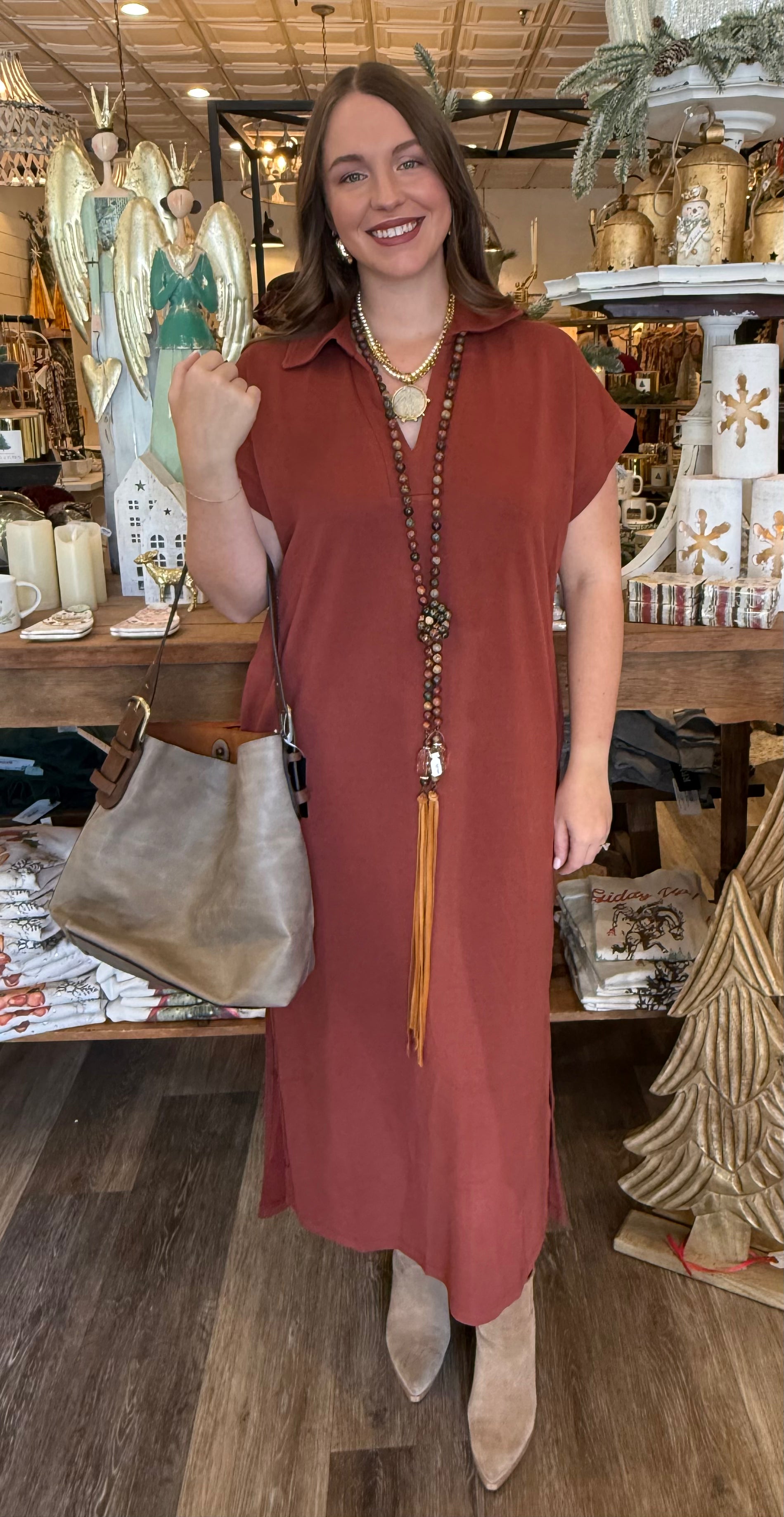 Effortless, flattering, and endlessly wearable — the Kallie Solid Knit Midi Dress is a boutique staple you’ll reach for again and again. 🤍 Featuring a split collar neckline, short sleeves, and a side slit for easy movement, this pullover dress combines casual comfort with polished style. The soft knit fabric and side pockets make it perfect for everyday wear — from errands to dinner out.