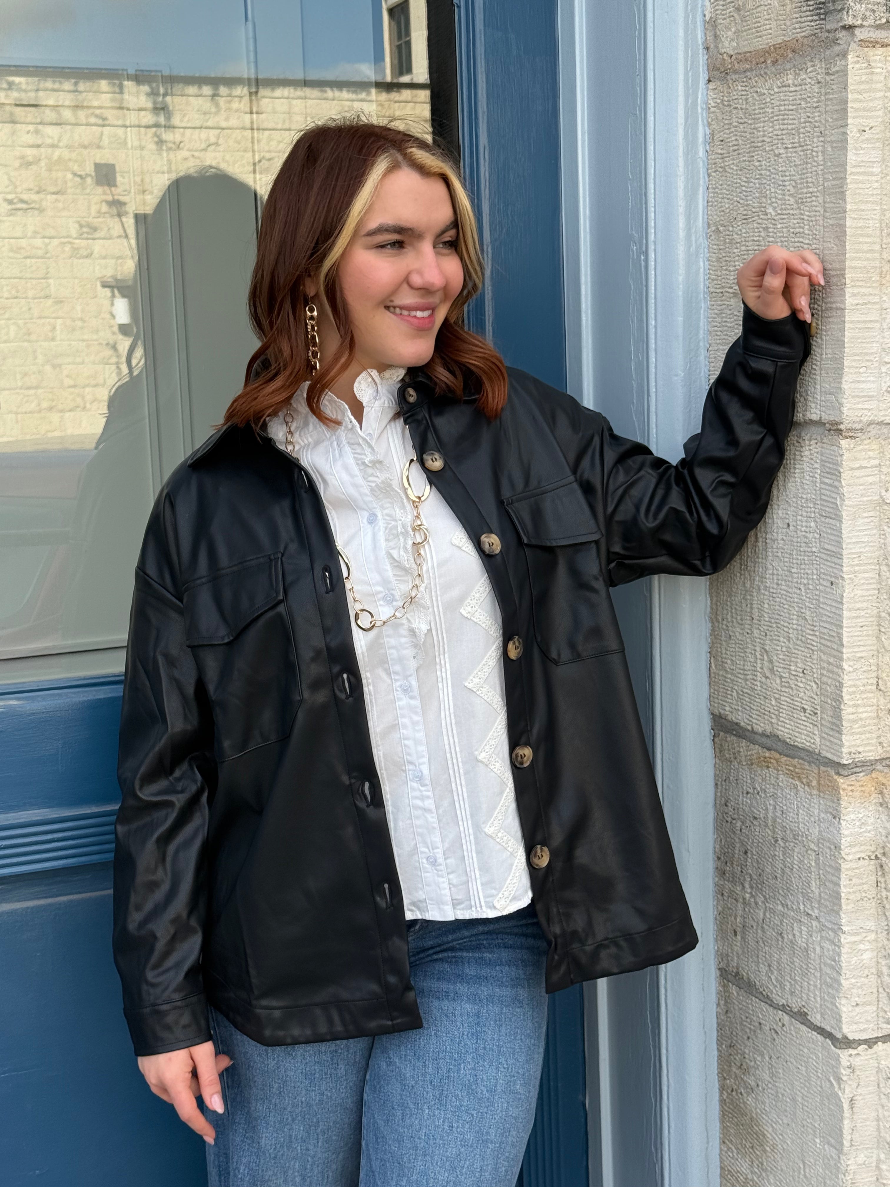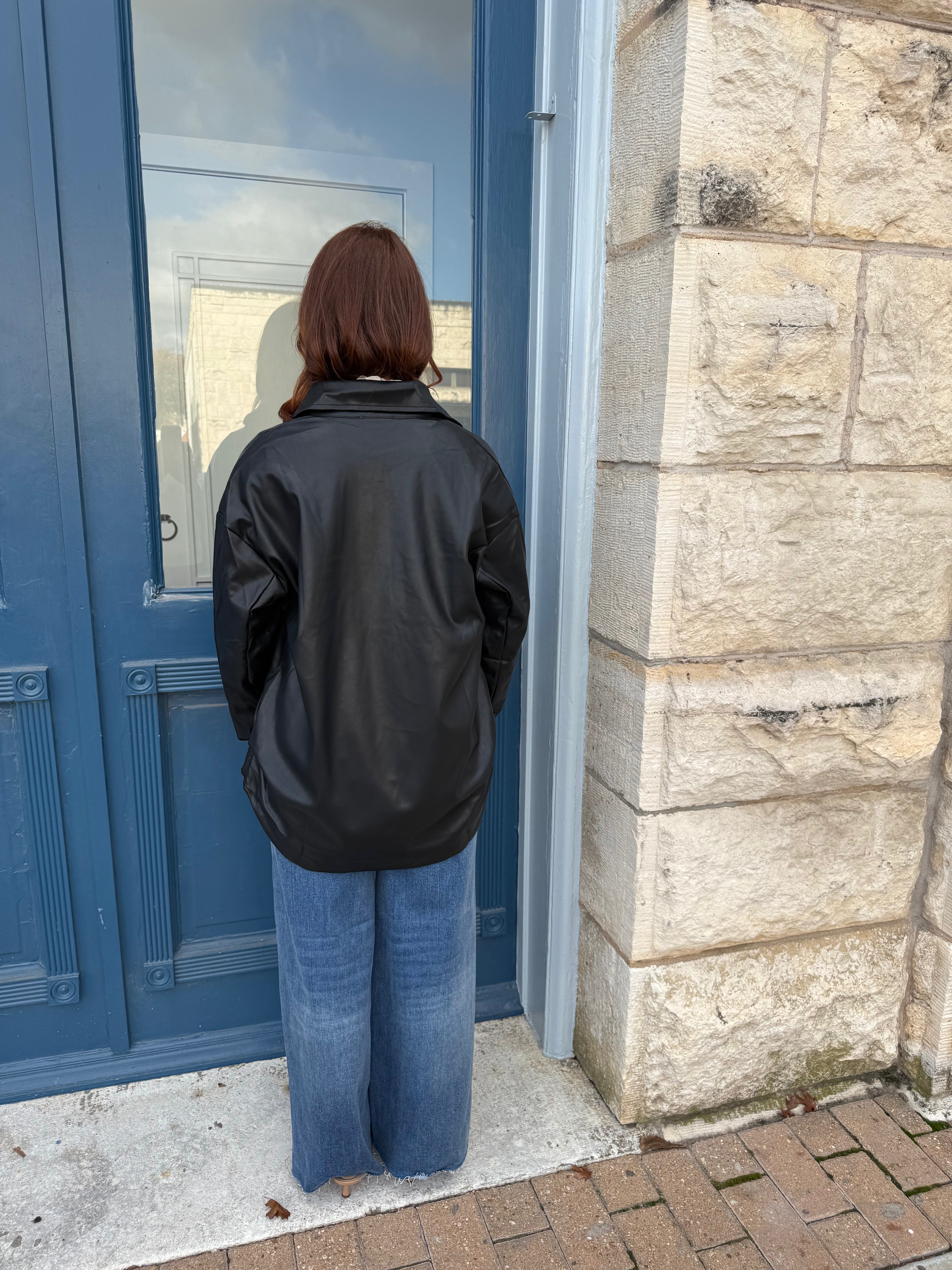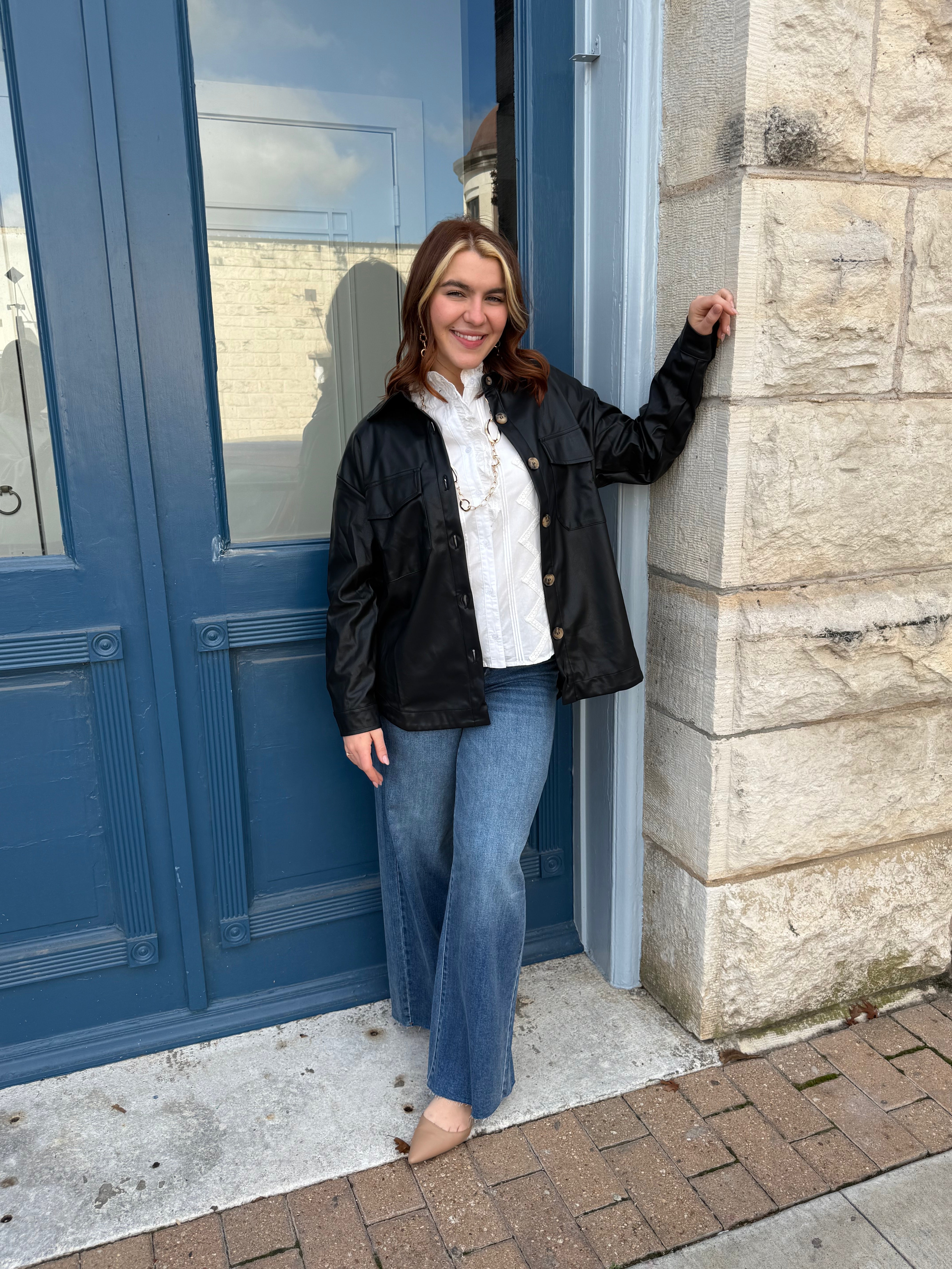 Sleek, modern, and endlessly wearable — the Kamila Leather Button-Up Jacket is the perfect statement layer for elevating your everyday style. Designed with a clean, tailored silhouette, this jacket features a classic button-up front, structured collar, and smooth faux leather finish that feels polished yet easy to wear. The soft lining adds comfort, while the streamlined shape pairs effortlessly with denim, dresses, or trousers.
